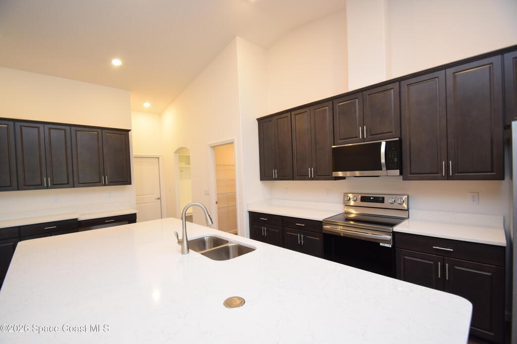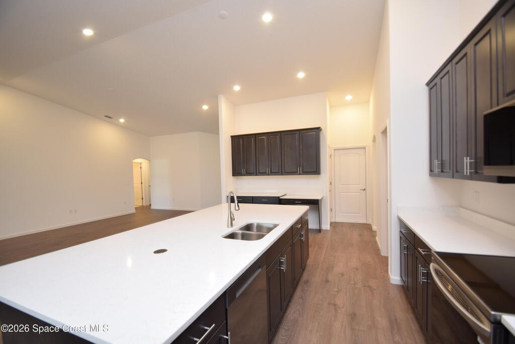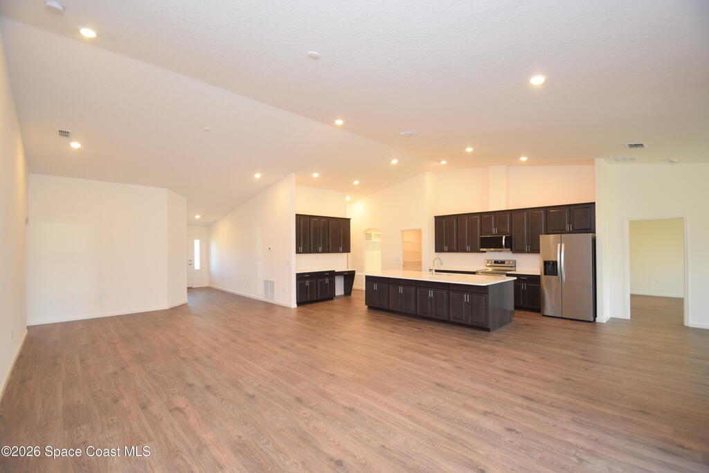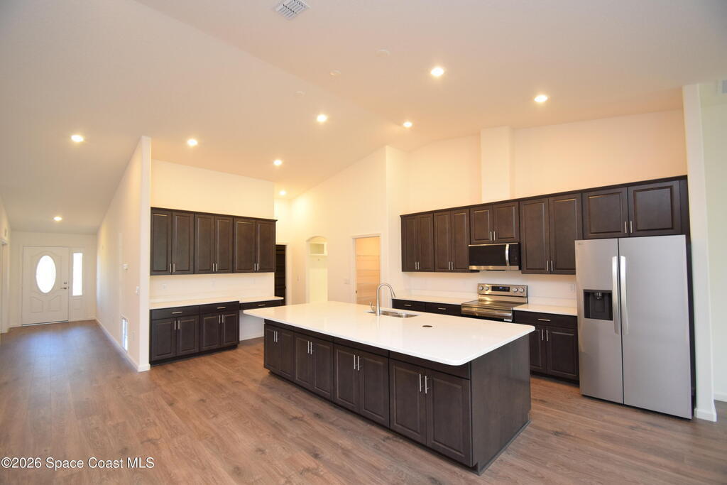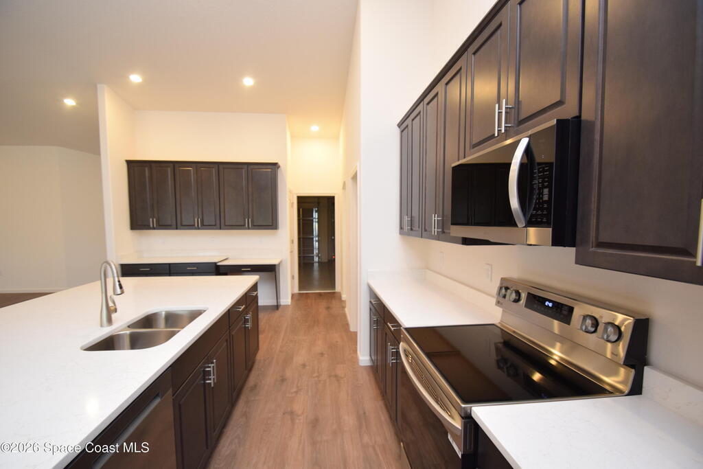 This beautifully designed 4-bedroom, 3-bath home offers 2,680 square feet of living space (3,797 total) and sits on an oversized 0.31-acre lot with city water and an NR aerobic septic system. A $15,000 flex incentive is available toward closing costs or a rate buydown with an approved lender. Inside, you'll find two spacious primary/owner suites, ideal for multigenerational living or guests. The home features Mohawk RevWood plank flooring throughout, with tile in bathrooms and the laundry room, and quartz countertops in every space. The kitchen is equipped with Level 2 soft-close cabinetry and a full stainless steel LG appliance package, including a 25 cu. ft. side-by-side refrigerator, 5-burner range with convection and air fry, microwave, dishwasher, and a vented exhaust fan. The open great room includes six LED ceiling lights on dimmers, ceiling fan pre-wires, and a 9-foot sliding glass door leading to the 18' x 12' trussed screened porch with a finished floor--perfect for indoor