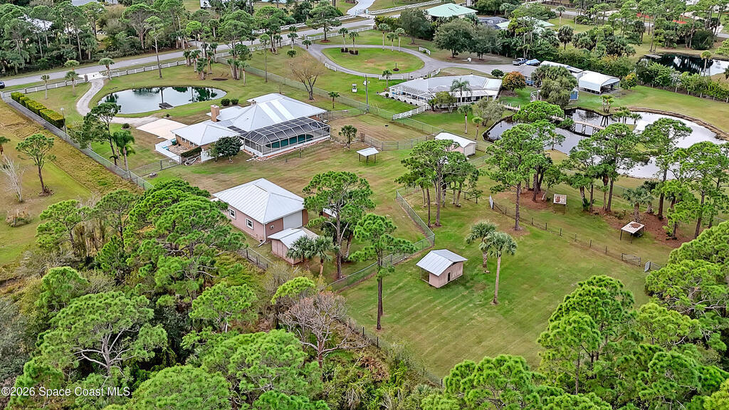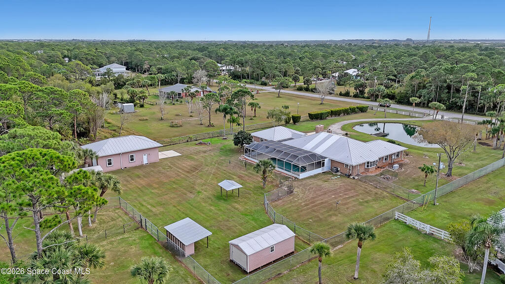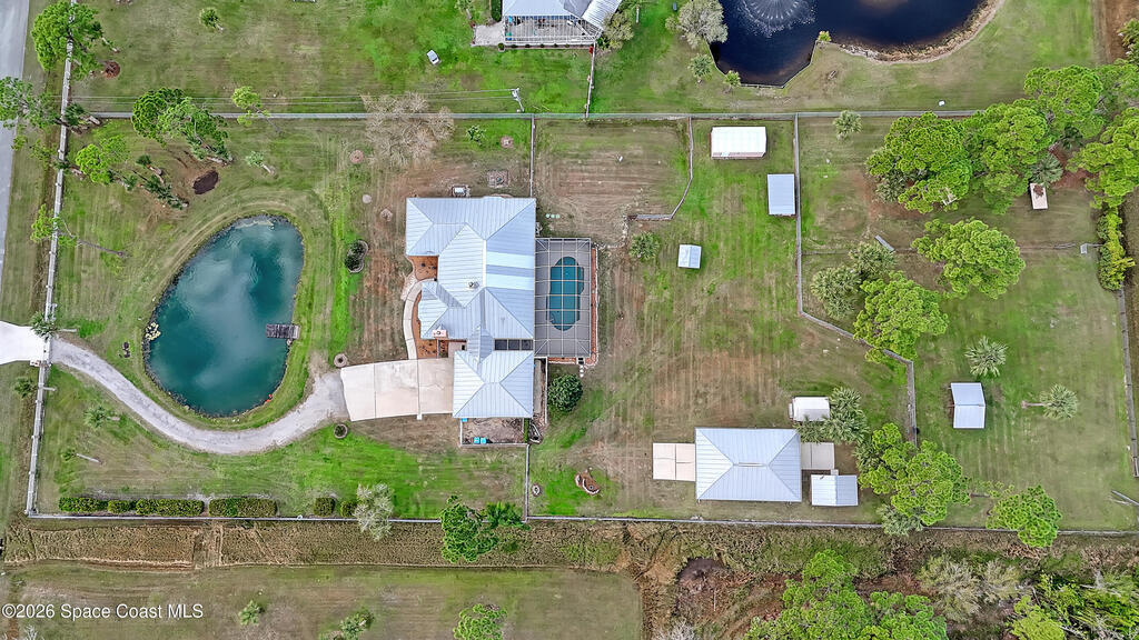 Beautiful BRICK pool home on amazing 2.5 acre property. 1100 sq ft detached workshop/garage w/10x16 overhead garage doors, plus separate workout room/office under AC. Plus 800 sq ft attached garage. Huge tropical screened pool/patio area w/covered porch, great for entertaining. Gas whole house generator. Accordion hurricane shutters. Tankless gas water heater. Nice eat-in kitchen w/quality appliances, raised panel solid wood cabinets & granite countertops. Tile floors throughout. 2 gas fireplaces. Primary bedroom features huge walk-in closet, double vanities, jacuzzi tub, separate shower & access to pool. Property is completely cleared, fenced, & pretty high & dry. Private gated entrance as well. Metal roof. 2 additional sheds. Lots of house, pool, land & garages for the money. Great opportunity if you're looking for a very special property. Won't last.