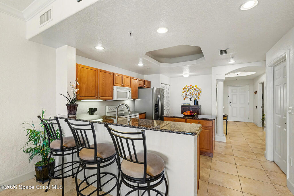 Imagine living where every day feels like a vacation: welcome to Mystic Vistas! This top-floor, 3-bedroom, 2-bath Fully Furnished condo with 10 ft ceiling offers 1,686 sq ft of luxurious living in a private, gated, resort-style community with nighttime security. Enjoy breathtaking sunset views from your expansive balcony where you can watch cruise ships pass by and catch rocket launches from the nearby space center. Get your private beach access and go down for a beach walk or catch sunrise at the Canaveral Beach shore every morning. Community amenities include four pools (lap, kiddie, and hot tub), tennis, pickleball, and racquetball courts, exclusive beach access, a clubhouse with fitness center, and a relaxing sundeck. Conveniently located just one hour from Orlando's Disney Parks, Universal, and SeaWorld--living here is living your best life!