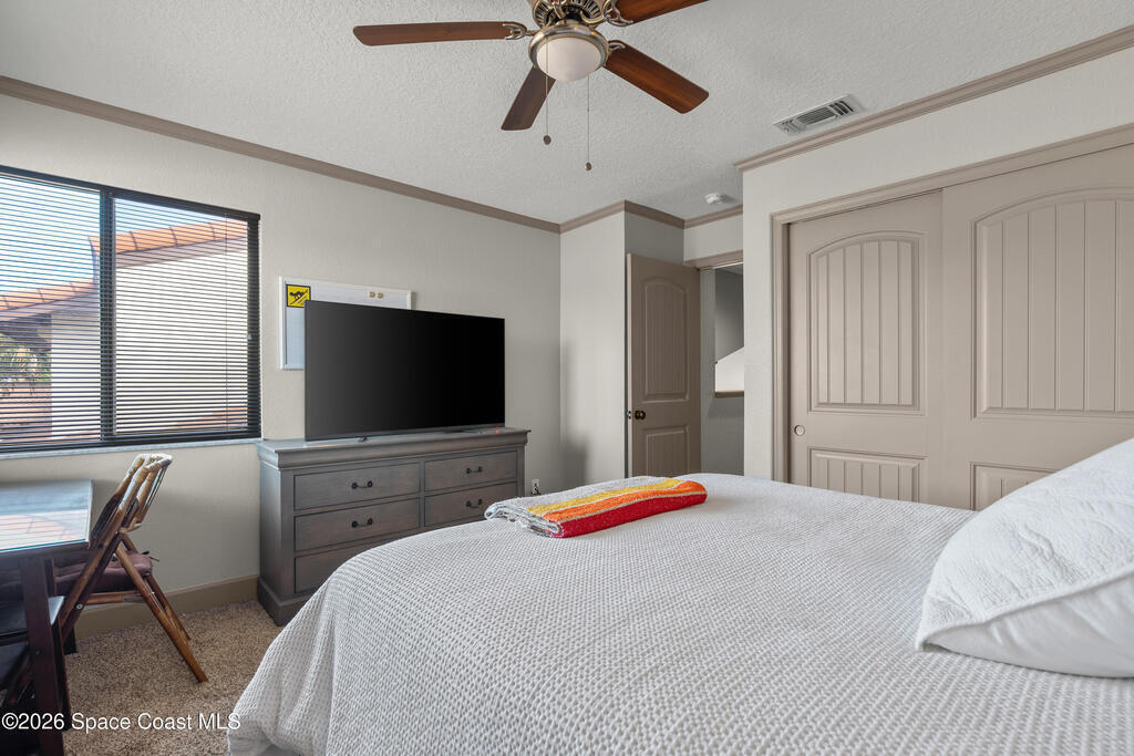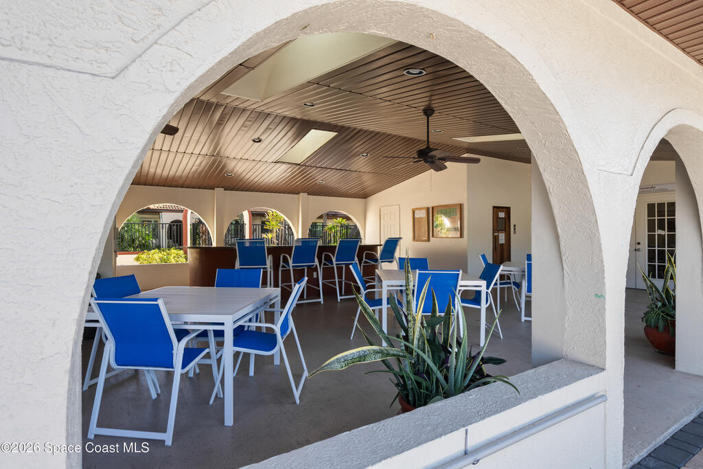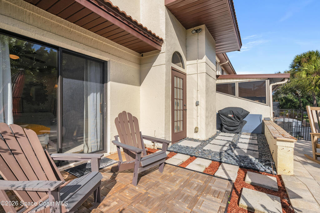 Welcome to this beautifully maintained 3 bedroom, 2.5 bathroom townhome located in the highly sought-after Parkside Place community in Indian Harbour Beach, Florida. This light and bright residence offers a first-floor primary suite, 2-car garage, and thoughtful updates throughout, making it an ideal primary residence or low-maintenance beachside retreat. The main living area features vaulted ceilings, a striking stone fireplace, and an open-concept layout perfect for everyday living and entertaining. The first-floor primary bedroom includes his and hers closets, a dual vanity, and a walk-in shower. Upstairs, you'll find two additional bedrooms and a full bathroom, offering flexibility for guests, family, or a home office. Recent updates include a brand-new HVAC system and a 2020 tile roof, providing peace of mind and long-term value. Step outside to a pavered back patio, ideal for relaxing or enjoying Florida's coastal lifestyle.