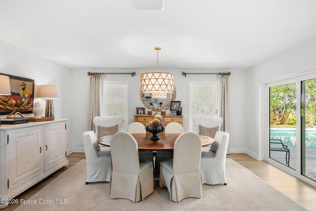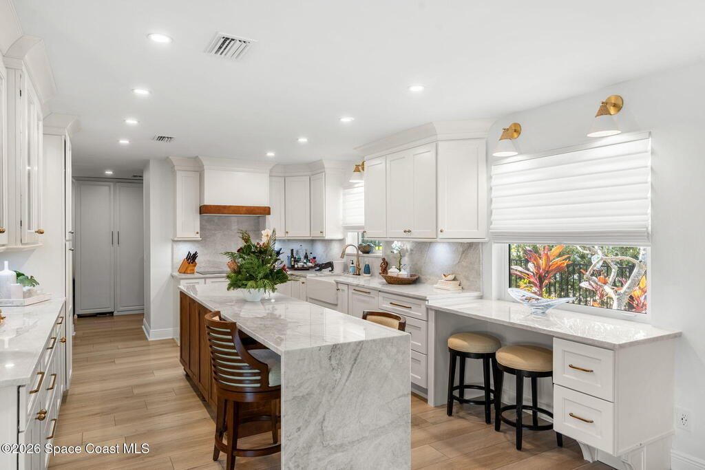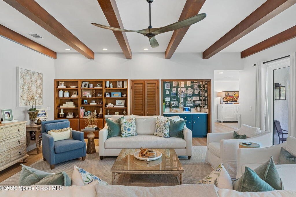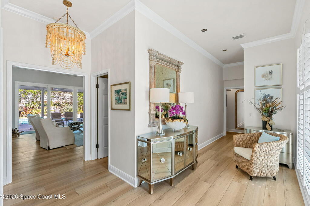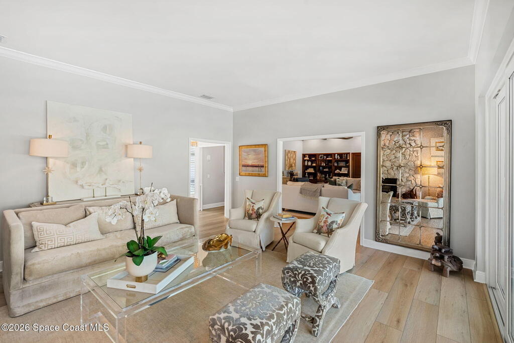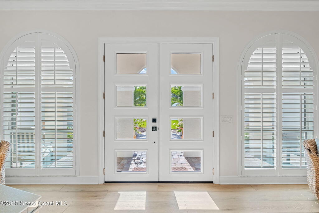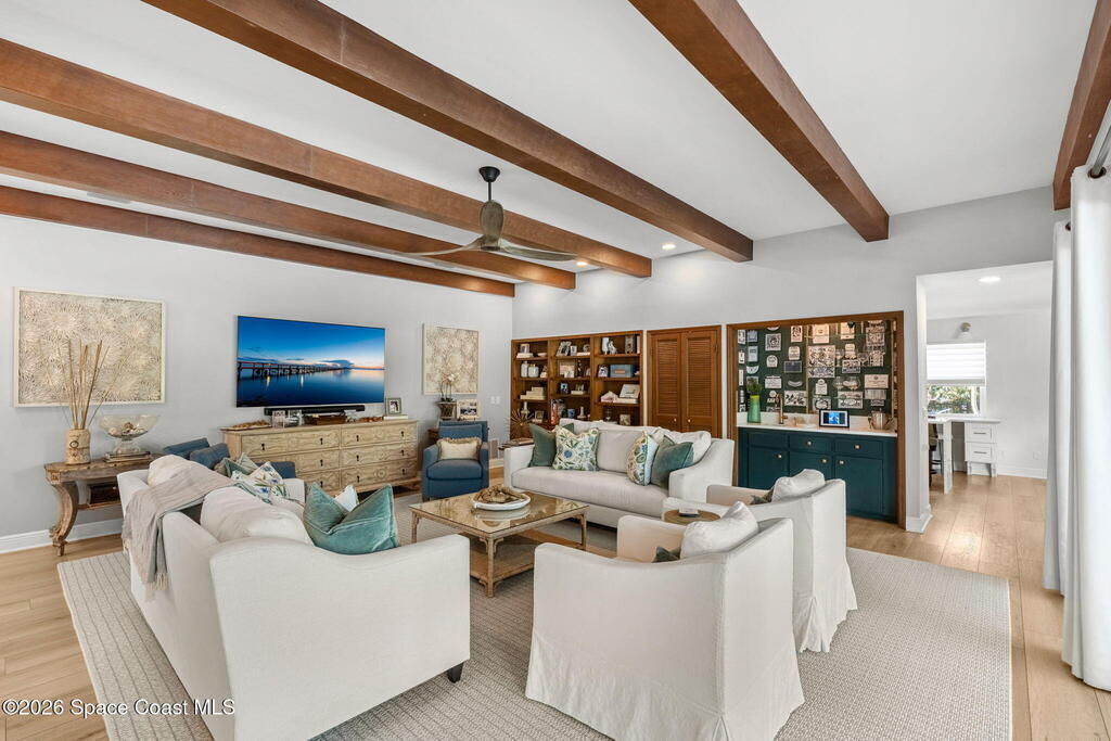 Located in the highly desirable estate section of Franklyn Avenue in Indialantic, this concrete block home has been thoughtfully improved with a focus on quality, durability, and everyday livability. Major upgrades include new impact-rated windows and doors, new Trane HVAC systems, and updated ductwork throughout.Set on a .42-acre lot, the property is framed by refreshed landscaping and subtle water features that create a sense of privacy without feeling closed off. Bimini shutters on select windows add a refined architectural detail, complementing the home's exterior. Inside, the home offers large, well-proportioned living spaces with new flooring, updated trim, and carefully selected lighting throughout. A fireplace anchors the main living area, adding warmth and character.