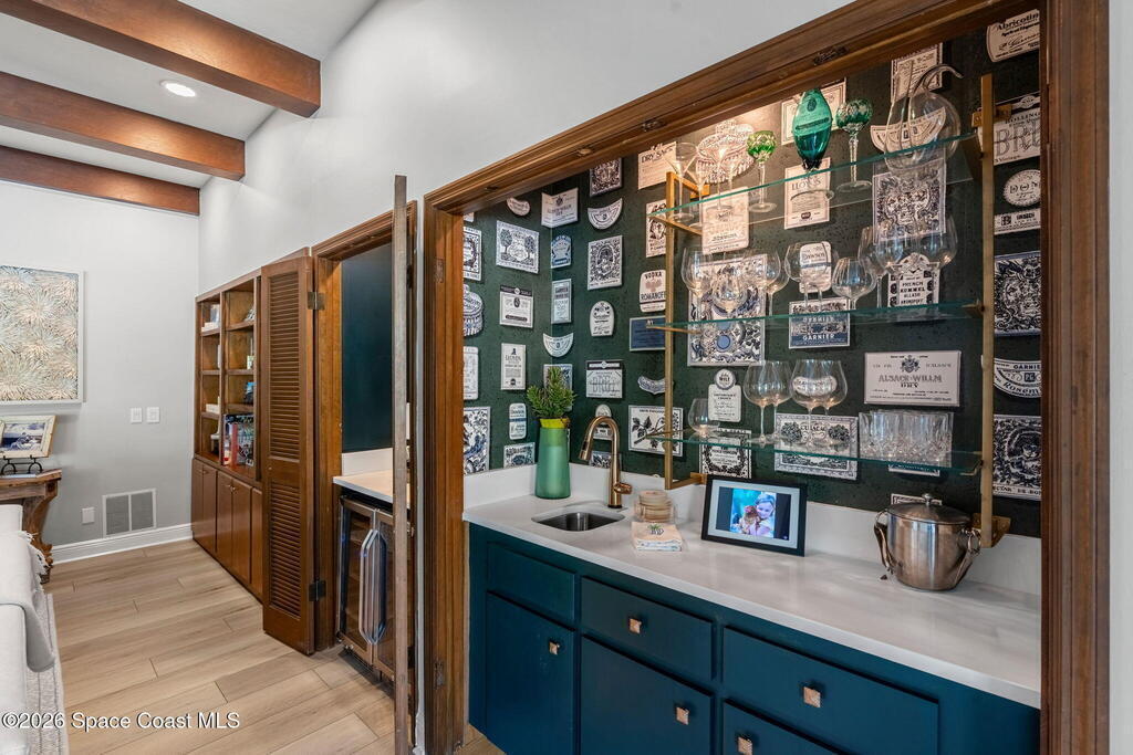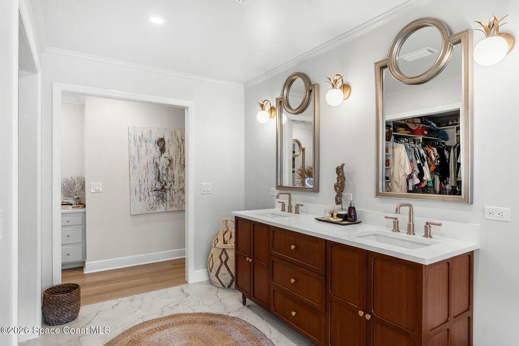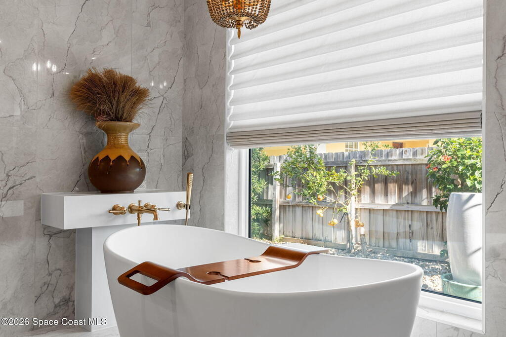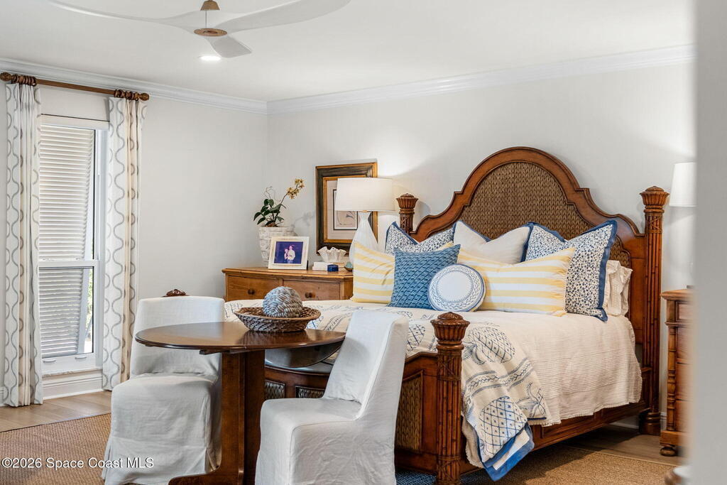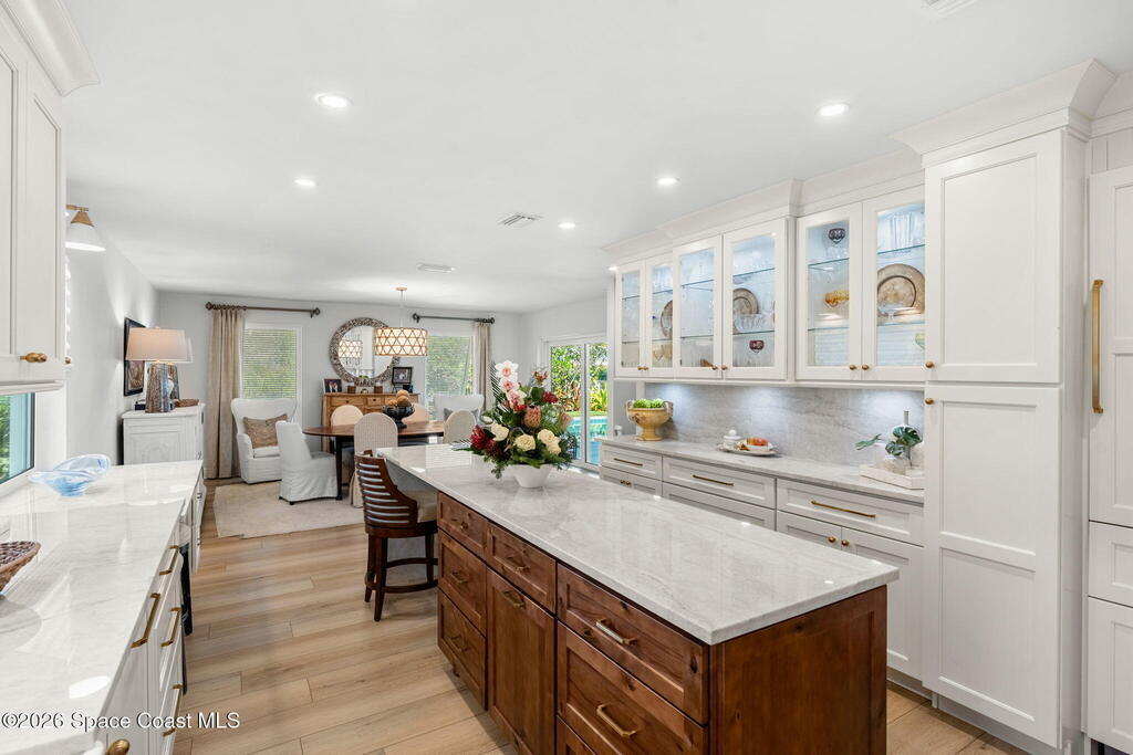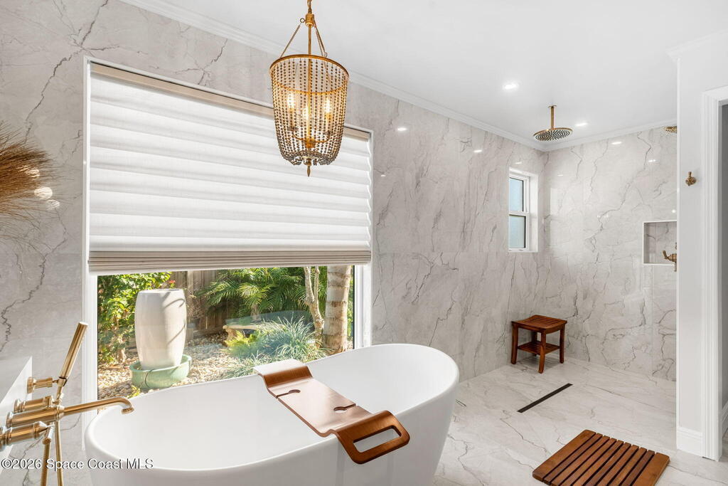 Located in the highly desirable estate section of Franklyn Avenue in Indialantic, this concrete block home has been thoughtfully improved with a focus on quality, durability, and everyday livability. Major upgrades include new impact-rated windows and doors, new Trane HVAC systems, and updated ductwork throughout.Set on a .42-acre lot, the property is framed by refreshed landscaping and subtle water features that create a sense of privacy without feeling closed off. Bimini shutters on select windows add a refined architectural detail, complementing the home's exterior. Inside, the home offers large, well-proportioned living spaces with new flooring, updated trim, and carefully selected lighting throughout. A fireplace anchors the main living area, adding warmth and character.