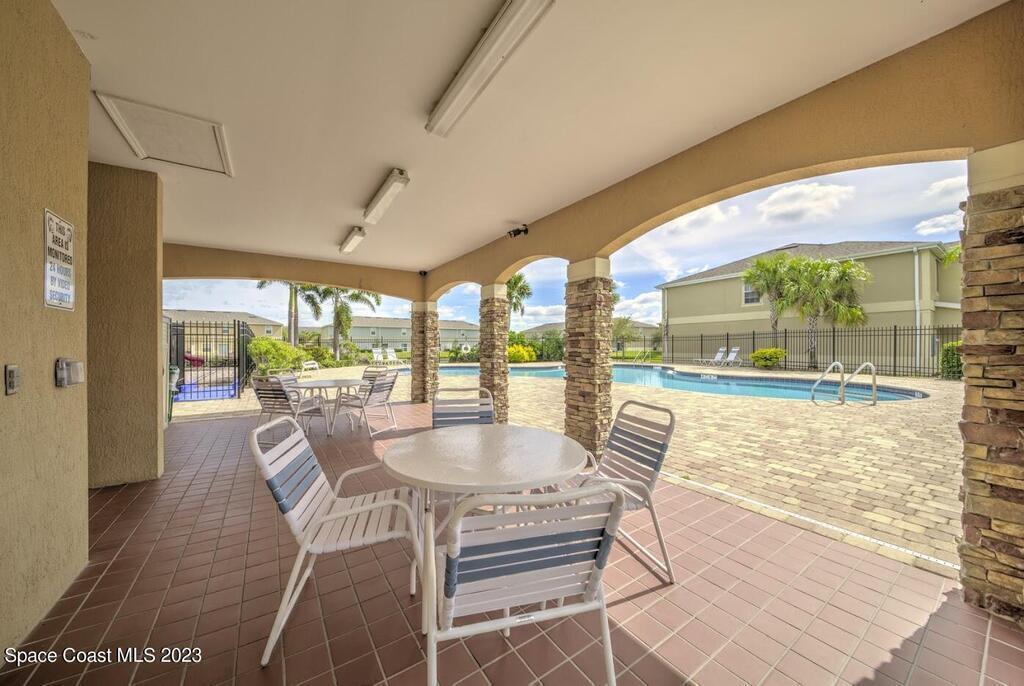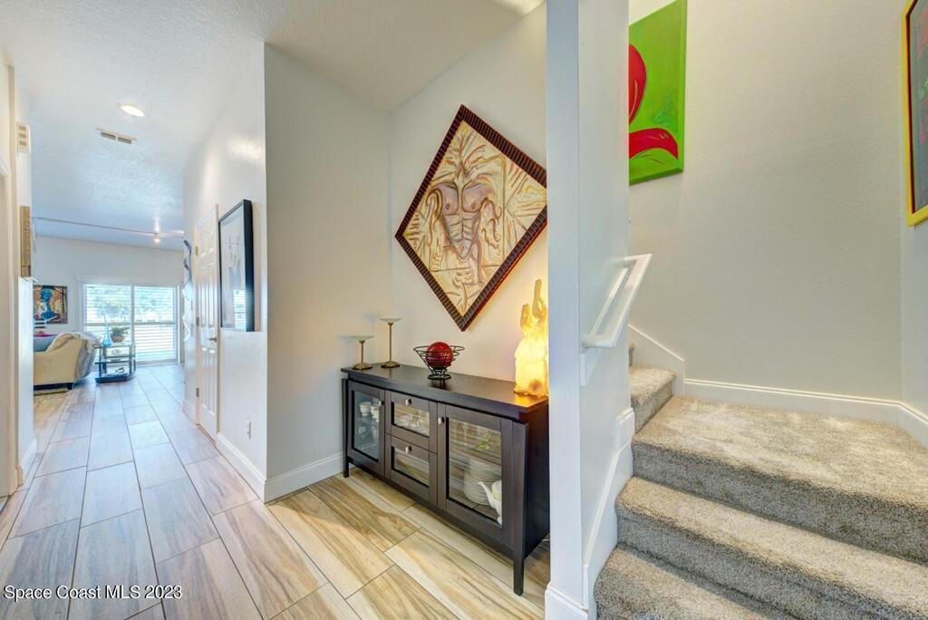 Perfect for a growing family or seasonal living, this beautifully updated townhome is located in a desirable gated community close to shopping, dining, and everyday conveniences. Fully remodeled in 2021, the home features new wood-look tile throughout the main living areas and fresh interior paint upstairs and down. The kitchen is a standout with new 42-inch soft-close cabinetry, quartz countertops, a glass backsplash, and a custom pantry offering exceptional storage. Plantation shutters and updated lighting with ceiling fans enhance the home throughout. For added peace of mind, a Vivint security system with exterior cameras is ideal for snowbird living. The primary suite has been enlarged and thoughtfully improved, featuring custom closet built-ins and an expanded spa-like bath with new cabinetry, dual sinks with granite countertops, upgraded tile flooring, and a stunning walk-in shower with glass barn doors. Both guest bedrooms include custom closets, and the guest bath remodeled.