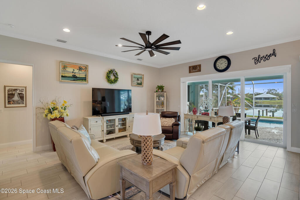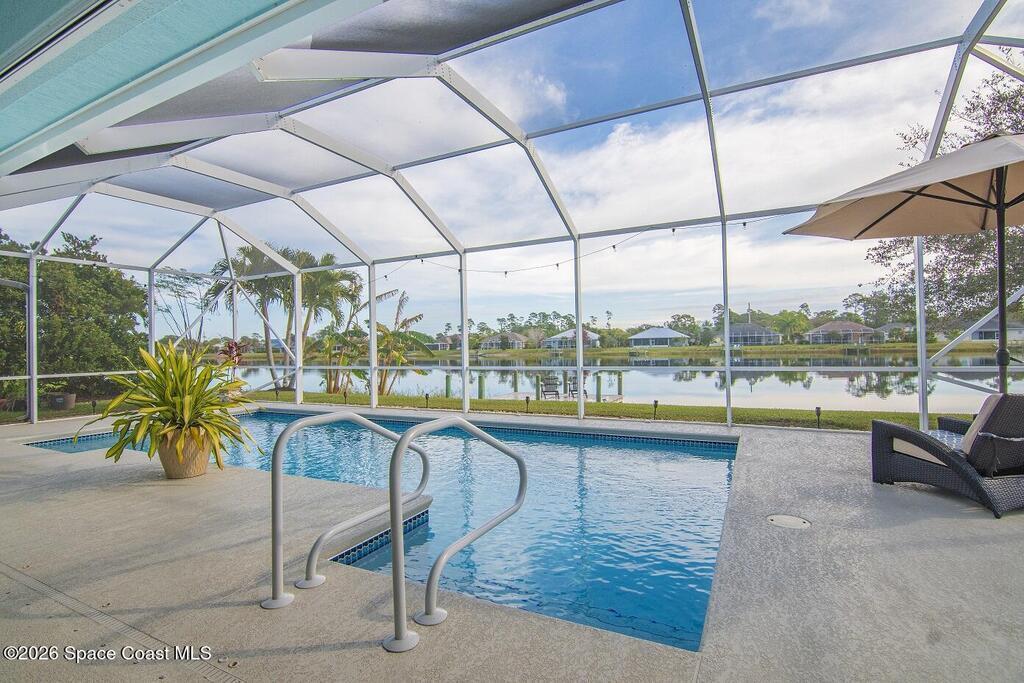 Sebastian living at its finest. This custom-built Ando home features 4 bedrooms, 3 baths, private pool, overlooking a lake. Home has upgrades galore. Gourmet kitchen, tile floors throughout, oversized lanai, hurricane impact windows and a private dock. 2024 AC, 2023 water heater, oversized AC garage (670 sf), whole house generator, Plantation Shutters, stucco soffits and more. Home shows pride in ownership and is the perfect place to make a home. Close to beaches, shopping, and schools.