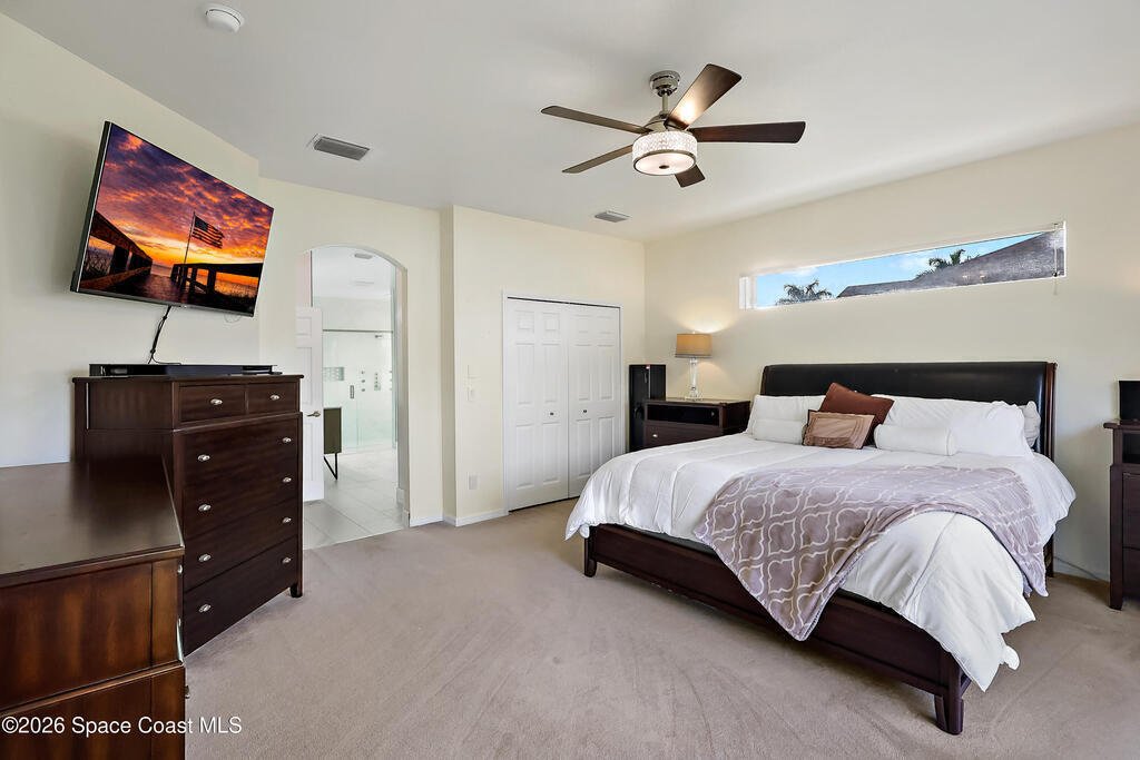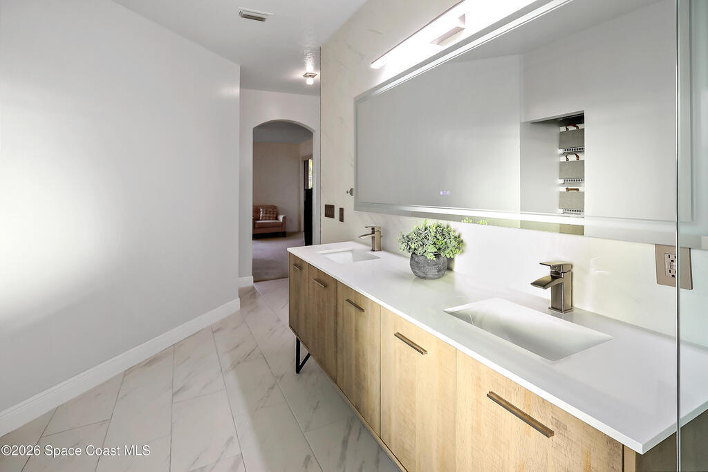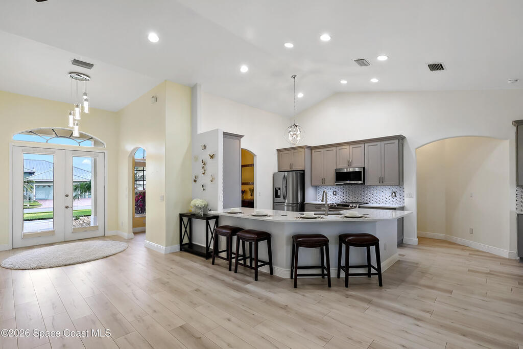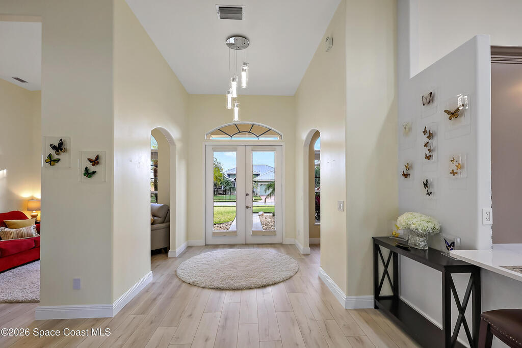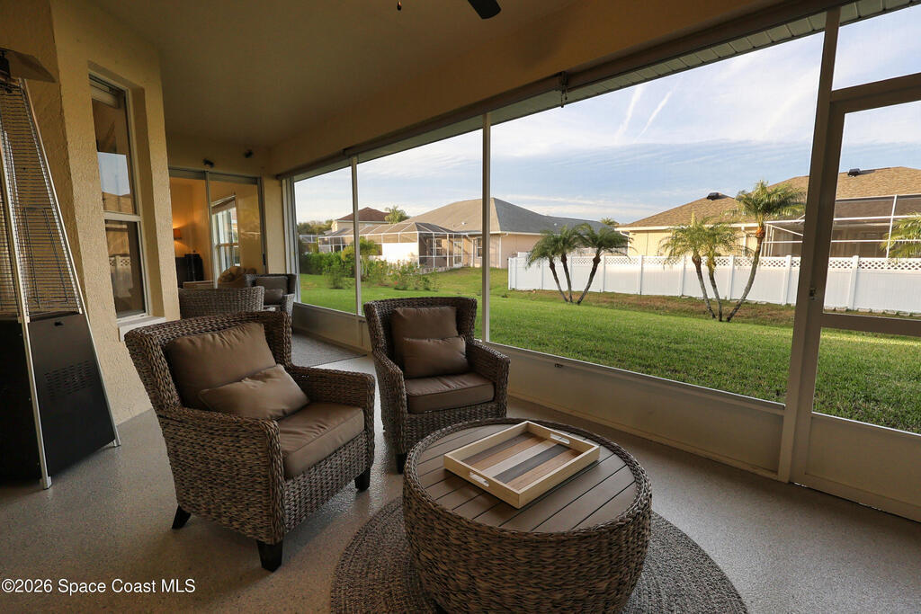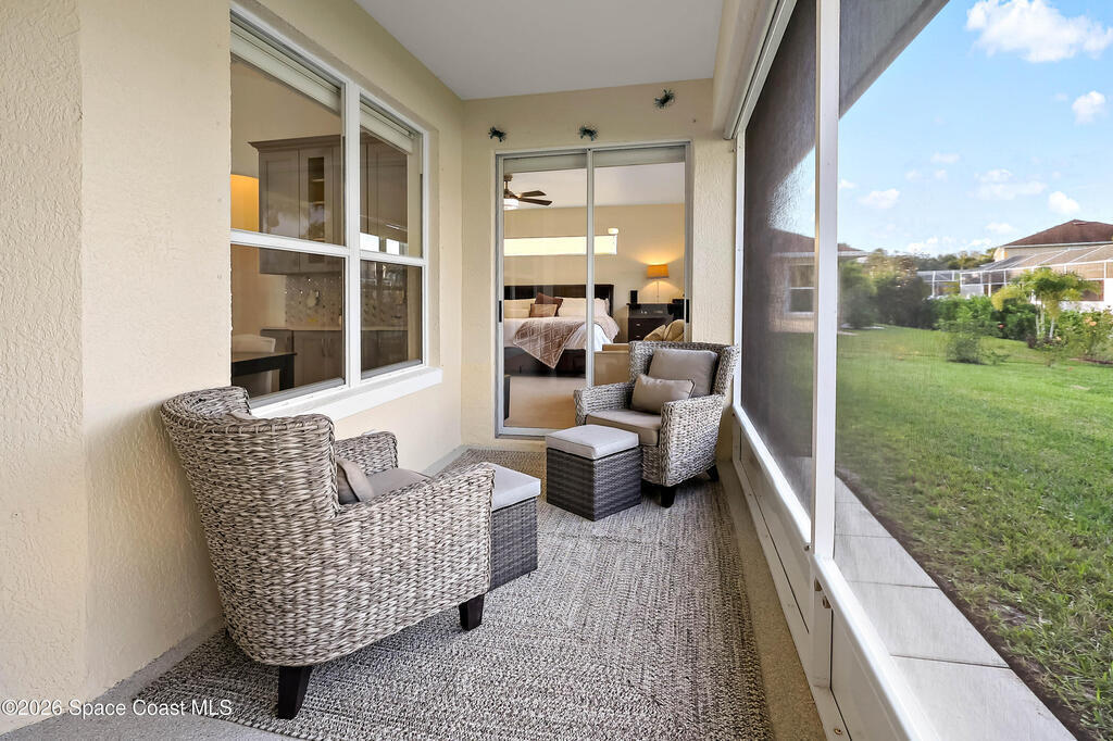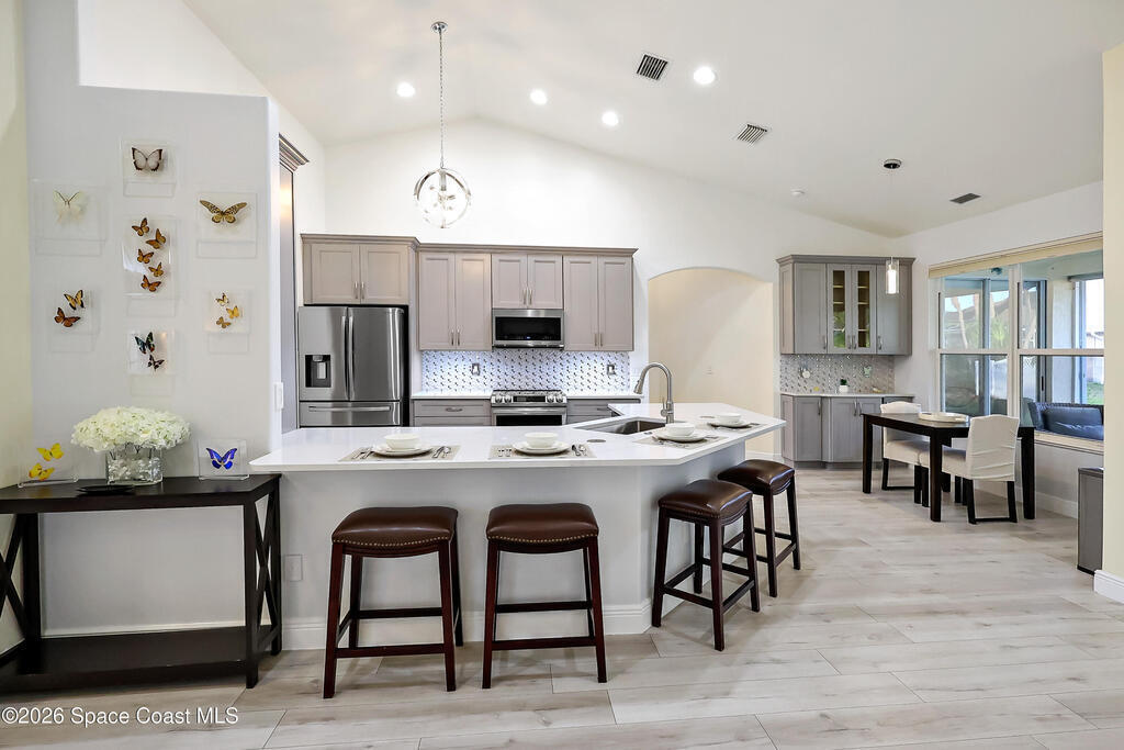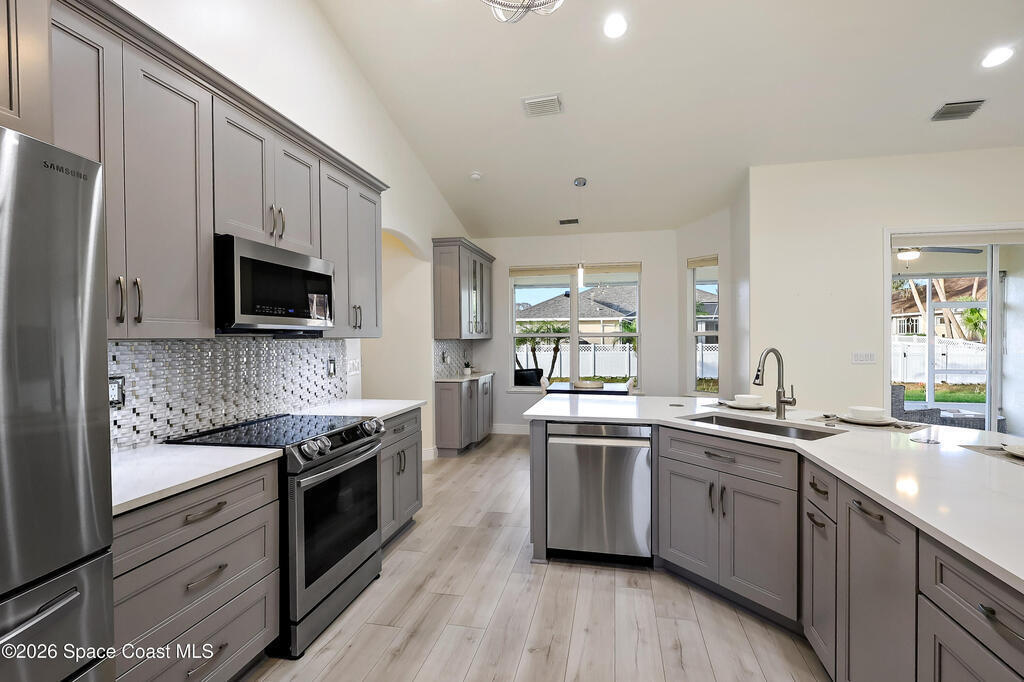 Beautiful retreat is ready to welcome you home. Situated on quiet cul-de-sac in desirable, gated Oak Chase, Vero Beach. Modern & inviting home features updated kitchen w/quartz counters, soft-close cabinets & S/S appliances. Split 4-bd, 3-ba. layout offers high ceilings & lots of natural light. Spacious primary suite w/WIC & updated bath w/dual sinks & spa-like dual showers. Practical upgrades: screened lanai for year-round gatherings, 2-CG w/epoxy floors, garage door screen, water purification system, accordion shutters, and wired f/security system & portable generator. Centrally located!