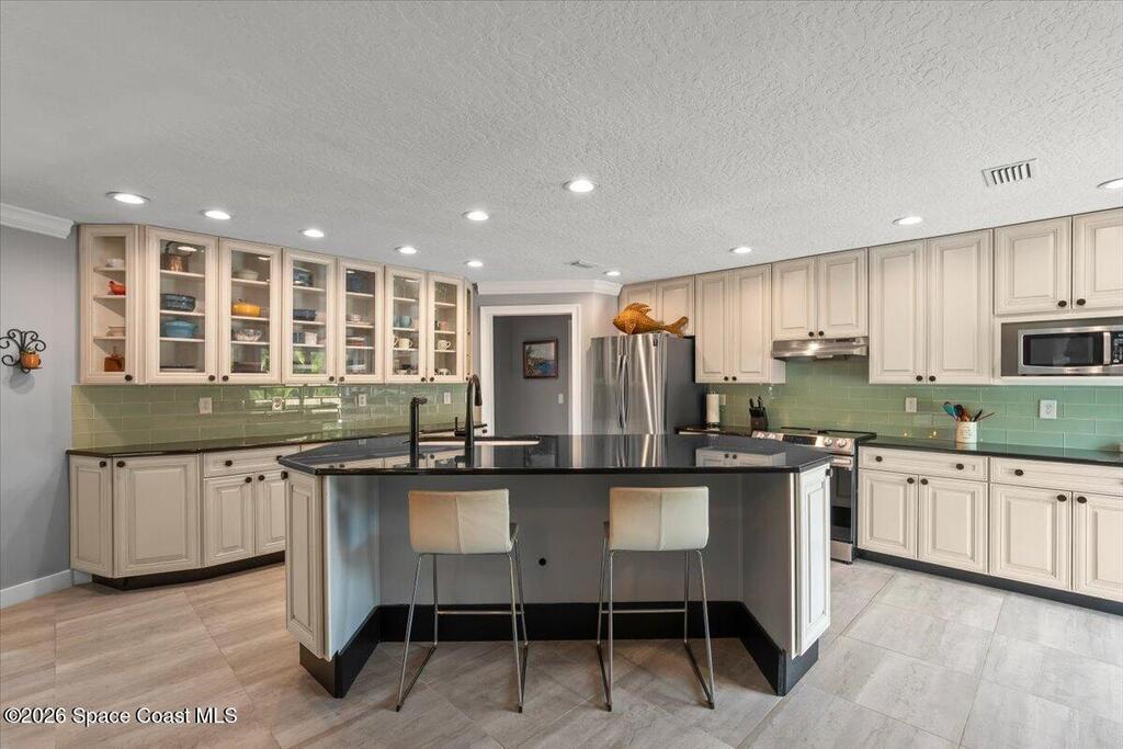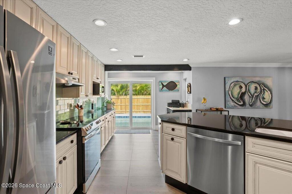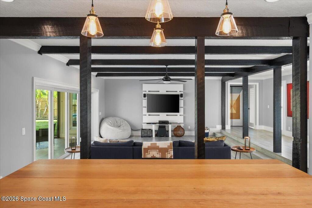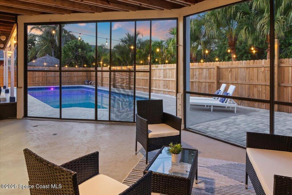 Welcome to your beachside oasis--thoughtfully and extensively updated to offer modern comfort with true peace of mind. This home showcases a newer roof, upgraded PEX plumbing, impact-rated features, fully upgraded air conditioning, and a long list of additional high-quality improvements throughout. The split, open-concept floor plan is both functional and inviting, featuring spacious bedrooms, remodeled bathrooms, custom closet built-ins, and a versatile bonus flex room ideal for a home office or gym.Designed for effortless indoor-outdoor living, the home opens to a private backyard retreat with a large, beautifully updated pool and resurfaced deck --perfect for entertaining or relaxing after a day at the beach. Additional highlights include a circular drive with ample parking, boat/RV pad, extra spacious garage, new fencing, and an outdoor shower. With modern finishes and meticulous care evident at every turn, this coastal retreat located between the causeways is one of a kind!