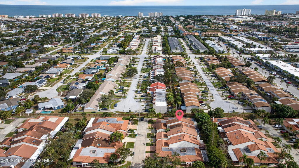 This spacious townhome offers the feel of a single family home without all of the maintenance! Arched entry to a charming courtyard leads to the front door which opens to a defined foyer. Large eat-in kitchen with loads of white raised panel cabinets and solid surface countertops. Kitchen is open to the large living / dining great room combo with ceilings soaring to the second floor! Large First floor primary suite with a sitting area attached offers many possibilities. Primary bath with Large double sink vanity, cultured marble tops, and glass door to a walk in shower. His and hers closets too! First floor laundry w/updated tile flooring, and lots of cabinets. Upstairs you'll find a huge loft, 2 more bedrooms (one with its own private balcony), and another full bath. Parkside is adjacent to Gleason Park and a short bike ride to the beach!