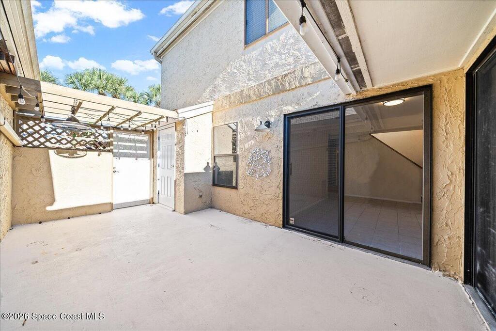 Welcome to Oakwood Villas! Enter through your private, gated front courtyard--the perfect spot for morning coffee--and into an inviting open-concept living space. This newly painted 3BR/2BA villa-style townhome features a highly desirable first-floor primary suite, recently remodeled for a spa-like feel. The heart of the home is the designer kitchen, boasting updated floor-to-ceiling cabinetry, custom drawer storage, a built-in wine rack, and a Reverse Osmosis system. Upstairs, you'll find two additional bedrooms and an updated second bath. Total peace of mind comes with a top-of-the-line Lennox AC (Dec 2023). Enjoy resort-style community amenities including a pool, clubhouse, and playground. Ideally located just minutes from FIT, L3Harris, and Northrop Grumman, with premier shopping and dining right around the corner. Turn-key and ready for you!