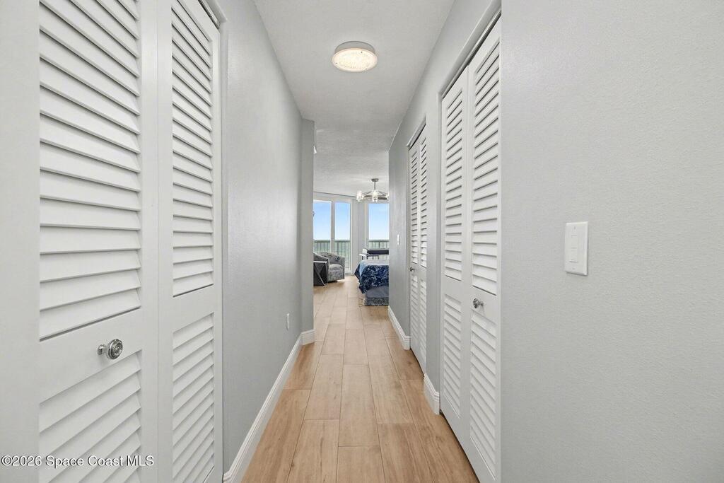 Luxury oceanfront living awaits in this stunning 4th-floor 3-bedroom plus office residence at Gardenia, offering some of the most spectacular ocean views around. With approximately 45 feet of direct ocean frontage, both the living area and primary suite open through new impact sliders to an expansive balcony where sunrises over the Atlantic and rocket launches from the Cape become part of daily life. Completely remodeled in 2023, this spacious condo features new flooring, a beautifully updated kitchen with granite countertops, stainless appliances, an upright freezer, and wine fridge. Both bathrooms were elegantly renovated, with the primary suite offering his-and-hers walk-in closets, dual vanities, and a separate soaking tub and shower. Recent building improvements include a new roof (2023), brand-new paver parking lot, completed SIRS, and no pending assessments. Secure garage, secure lobby with atrium, private beach access, heated oceanfront pool, and only three units per floor!