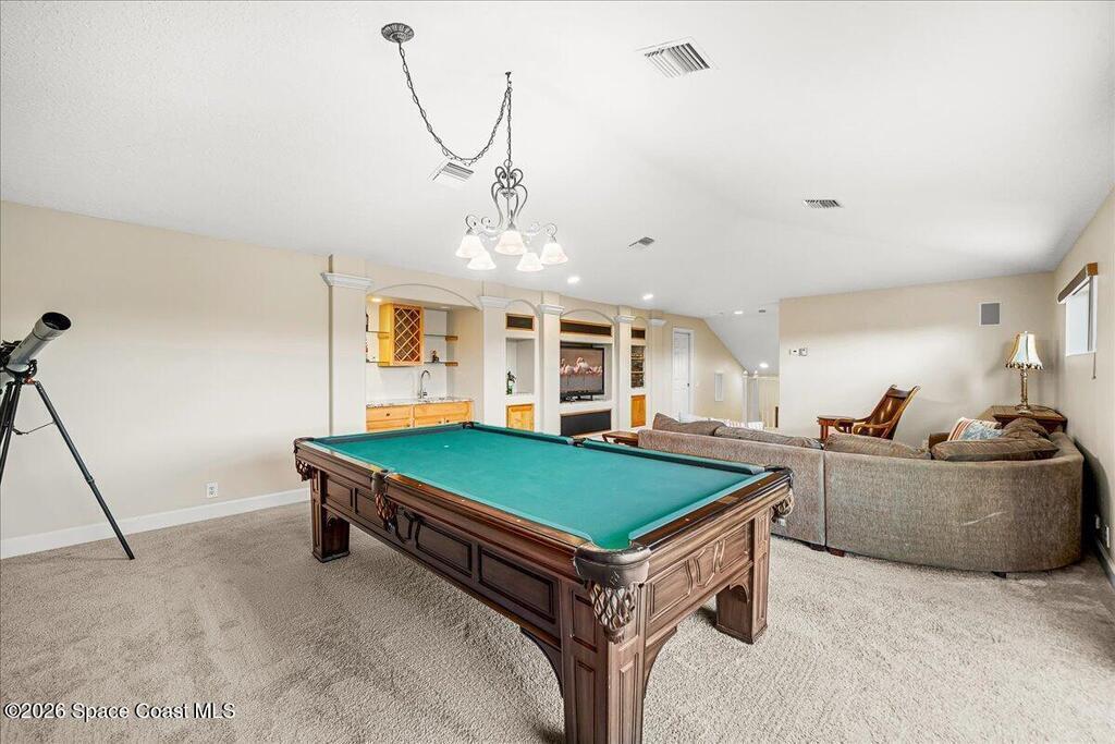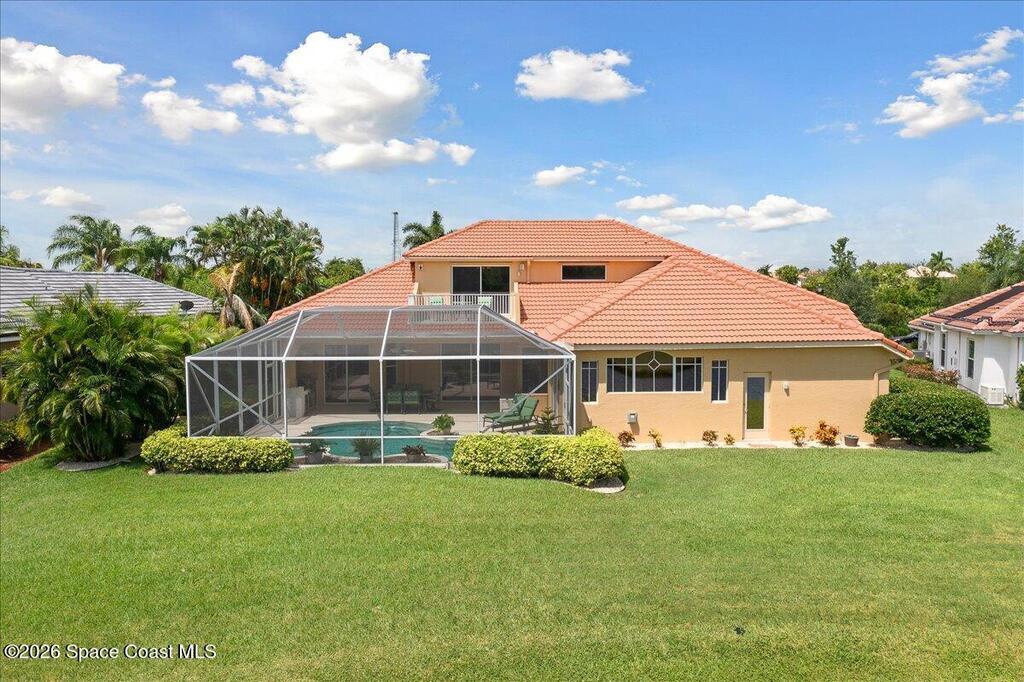 Tucked away on a private cul-de-sac in the gated subdivision of Baytree, this Arthur Rutenberg beauty is where elegance meets everyday fun! With 4 bedrooms, 4 baths, and a 3-car garage, there's space for everyone, and everything (tons of storage)! The heart of the home opens to a heated pool and lanai with sliders for seamless indoor-outdoor living. The designer kitchen is a chef's dream with granite countertops, a double oven, a spacious island, and a gas cooktop. Cozy nights come easy with a gas fireplace and custom surround sound, perfect for movie marathons or entertaining. Upstairs, a spacious rec room is ready for games, hobbies, or hangouts. Step outside and soak in views of the 13th green at Baytree National, surrounded by lush landscaping and amazing views of rocket launches. This home is equal parts luxury and lifestyle, come see why you'll never want to leave!