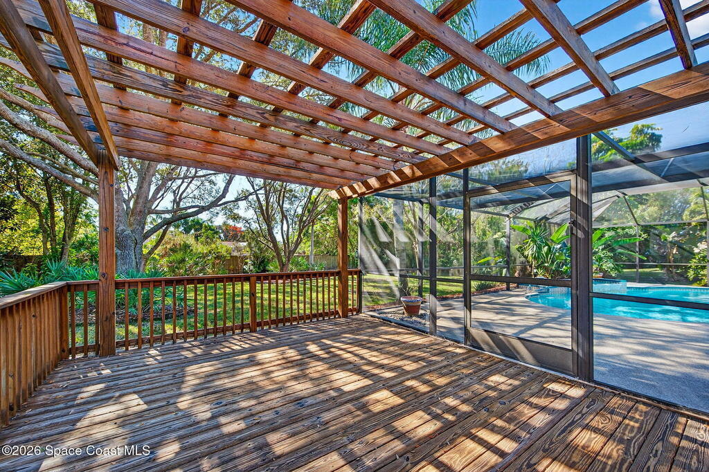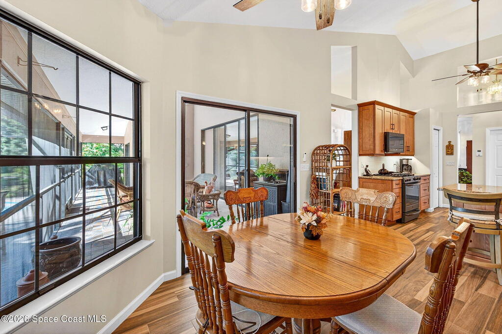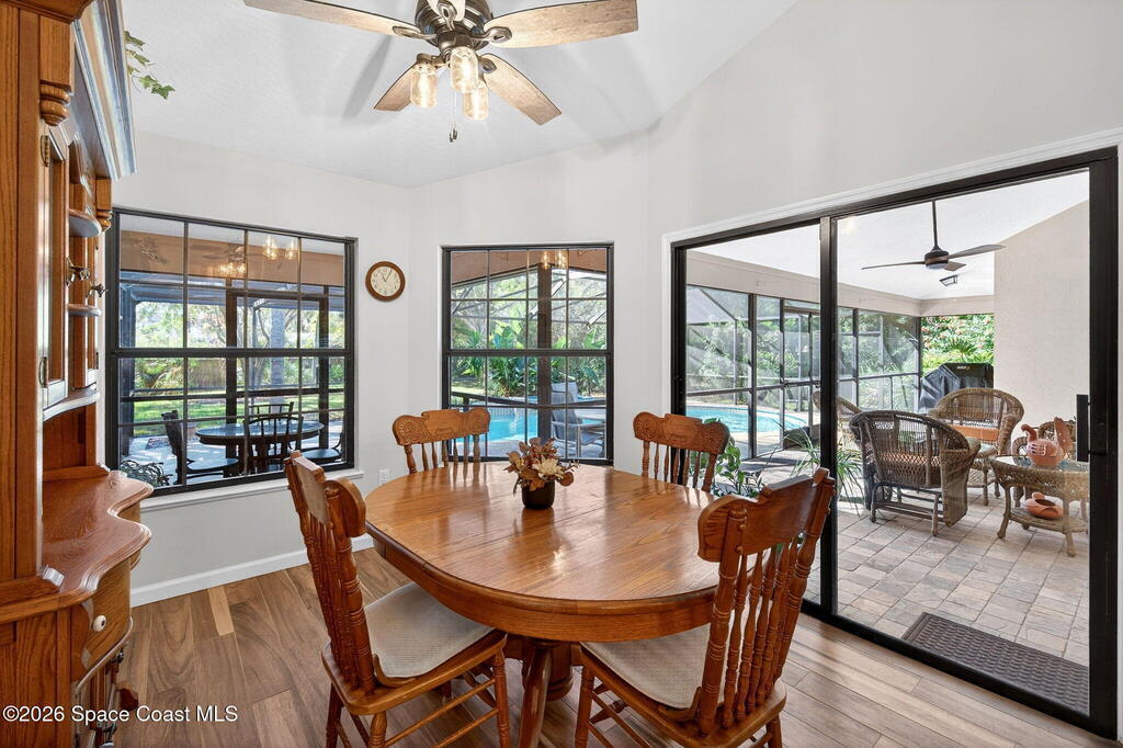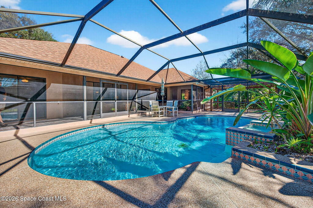 Ideally located on .51 acres of lush mature landscaping. Majestic oak trees shade and perfectly frame this home with a brick front. Raised panel entry door w/decorative oval glass insert opens to a defined foyer. The view ahead is across the large great room with soaring vaulted ceilings, 9 foot pocket sliding glass door and the porch and pool beyond. Beautifully updated kitchen w/soft close cabinets and drawers and updated plank tile flooring. A spacious eat-in area with a view of your backyard that can best be described as you own private park. Primary bedroom easily accommodates a king size bed and offers multiple windows and a glass door to the porch/pool area. Primary bath w/24 inch tile flooring, his and hers vanities and a separate whirlpool tub and walk-in shower w/glass door. Her vanity has 12 drawers! The other end of the house offers 3 more spacious bedrooms and 1-1/2 baths. Read more for additional updates.