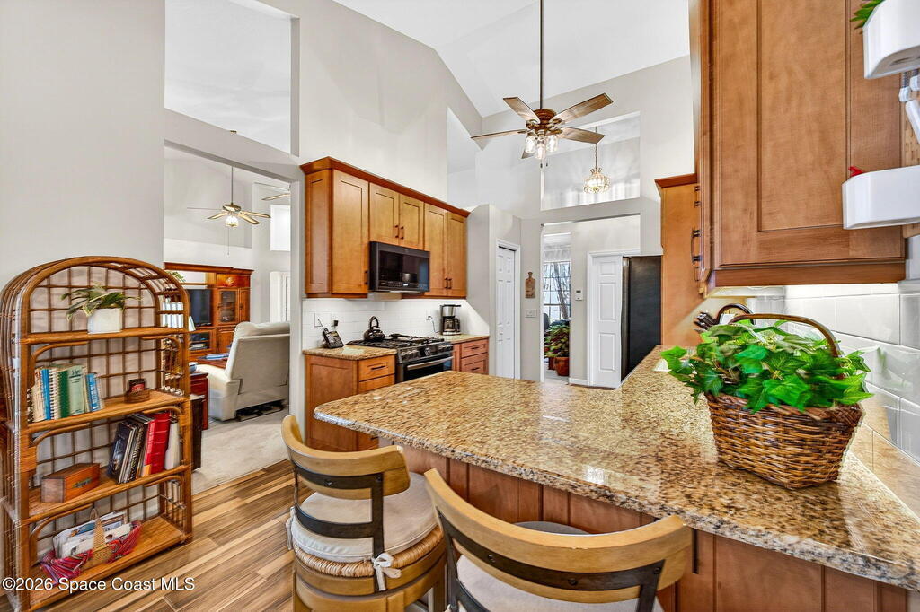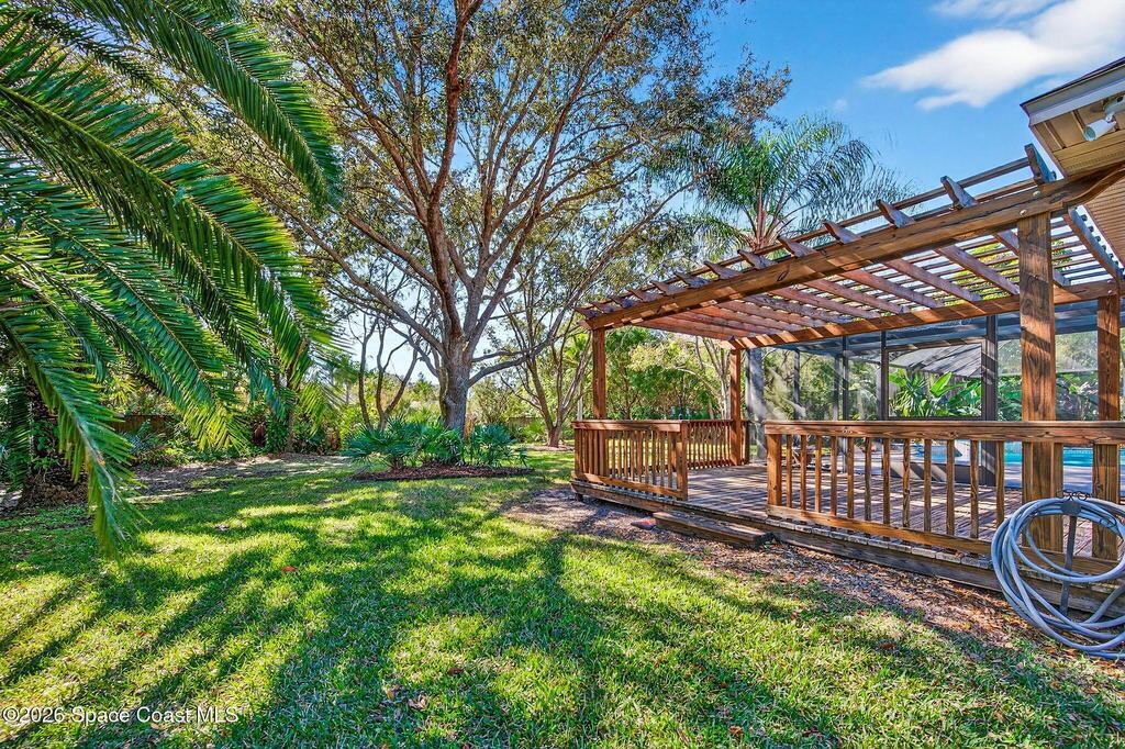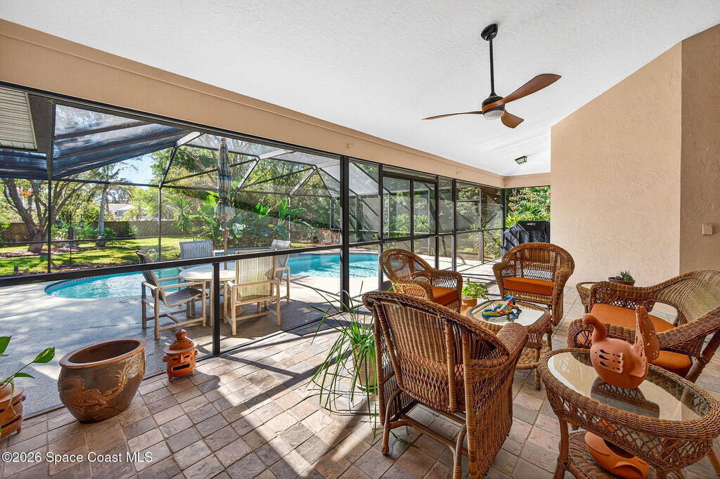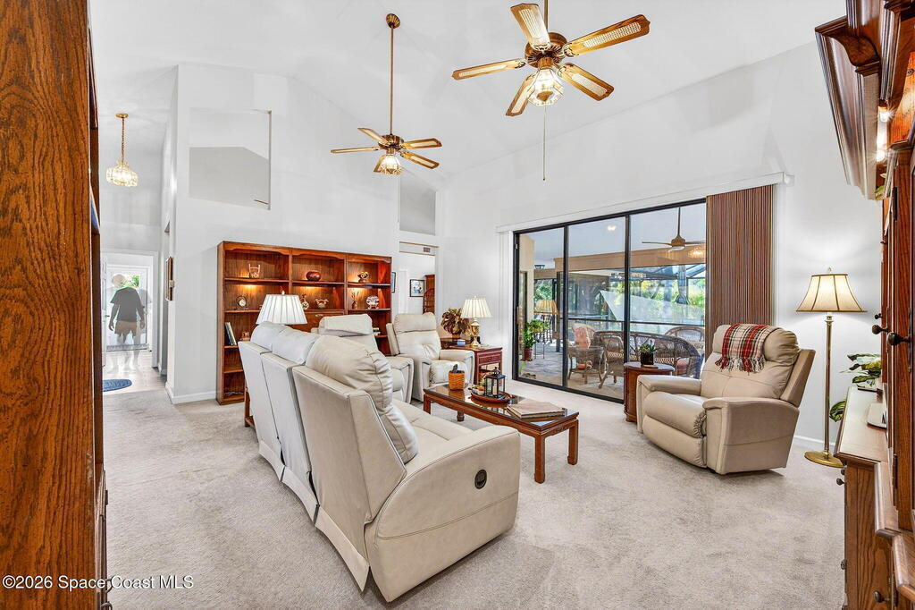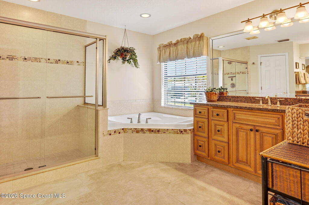 Ideally located on .51 acres of lush mature landscaping. Majestic oak trees shade and perfectly frame this home with a brick front. Raised panel entry door w/decorative oval glass insert opens to a defined foyer. The view ahead is across the large great room with soaring vaulted ceilings, 9 foot pocket sliding glass door and the porch and pool beyond. Beautifully updated kitchen w/soft close cabinets and drawers and updated plank tile flooring. A spacious eat-in area with a view of your backyard that can best be described as you own private park. Primary bedroom easily accommodates a king size bed and offers multiple windows and a glass door to the porch/pool area. Primary bath w/24 inch tile flooring, his and hers vanities and a separate whirlpool tub and walk-in shower w/glass door. Her vanity has 12 drawers! The other end of the house offers 3 more spacious bedrooms and 1-1/2 baths. Read more for additional updates.