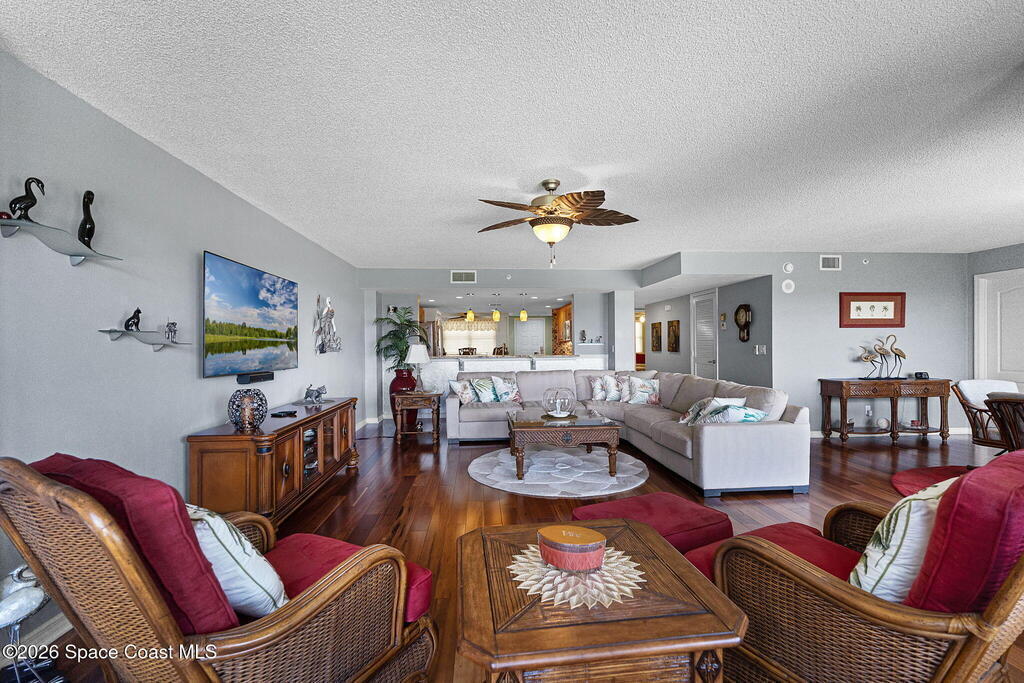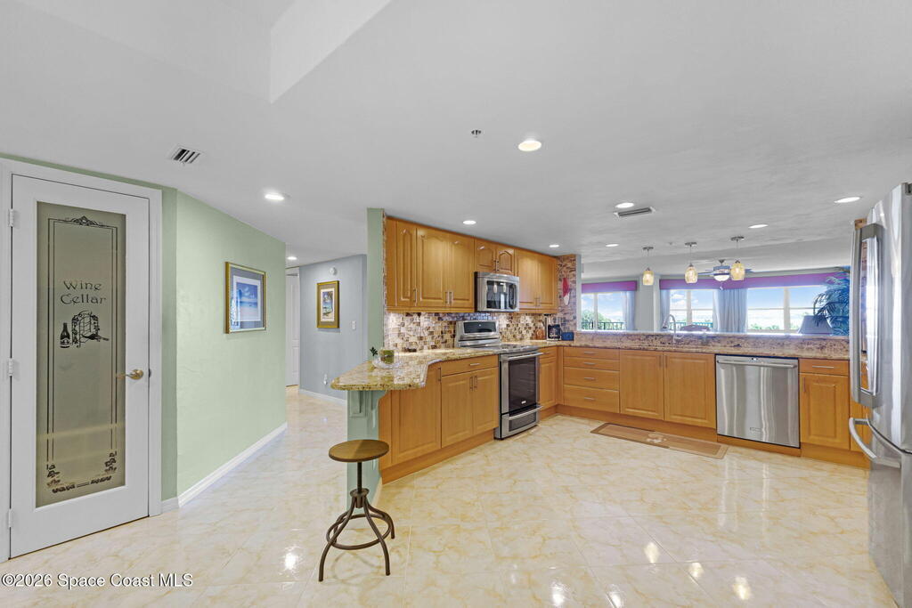 Welcome to coastal living in Daytona Beach Shores at Unit 502D in Oceans Cloverleaf North. This spacious 3-bedroom, 2-bath furnished condominium offers over 2,100 square feet of light-filled living space with unobstructed Intracoastal Waterway views from the living area, dining space, and primary suite. Located just steps from the beach, this residence is ideal as a full-time home, second residence, or investment opportunity. Enjoy sunset views from the private balcony and an open-concept layout perfect for entertaining. The kitchen features stone countertops, stainless steel appliances, a walk-in pantry, and ample cabinetry. The primary suite offers balcony access and a spa-style bath with dual vanities, soaking tub, and walk-in shower. Additional highlights include in-unit laundry and a dedicated parking space on the same floor. Community amenities include secure entry, indoor and outdoor pools, fitness center, sauna, clubhouse, and private golf course conveniently located.