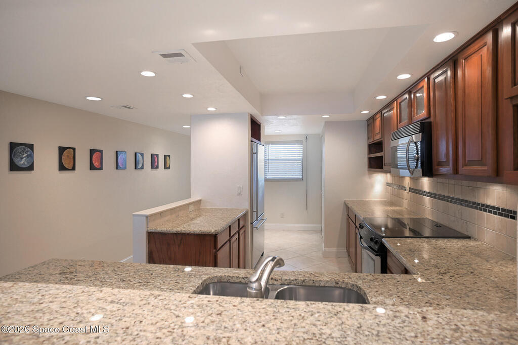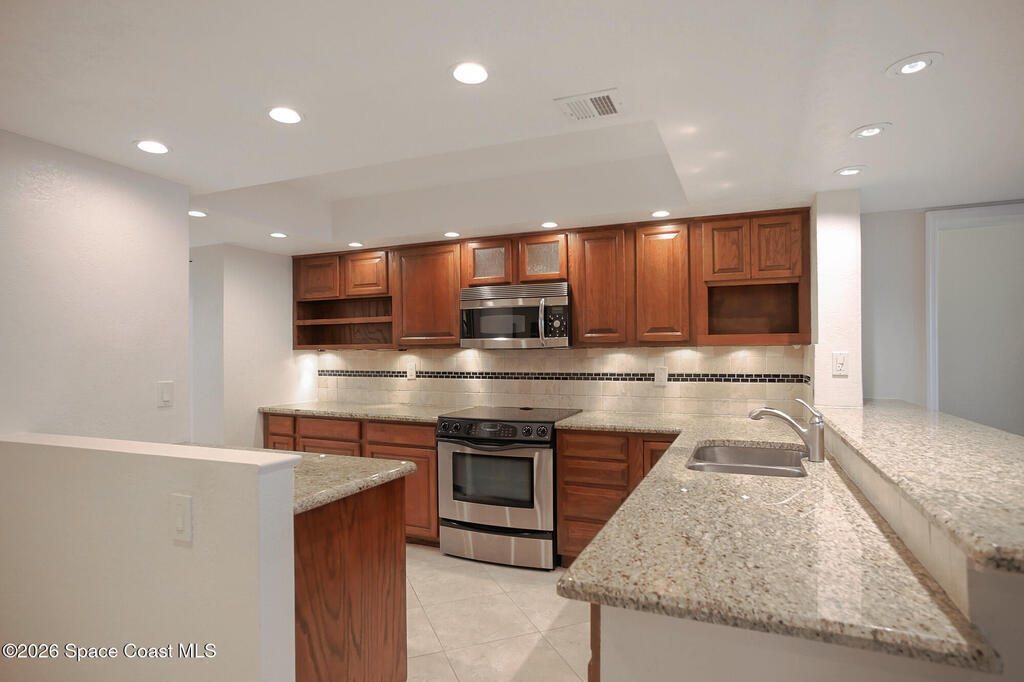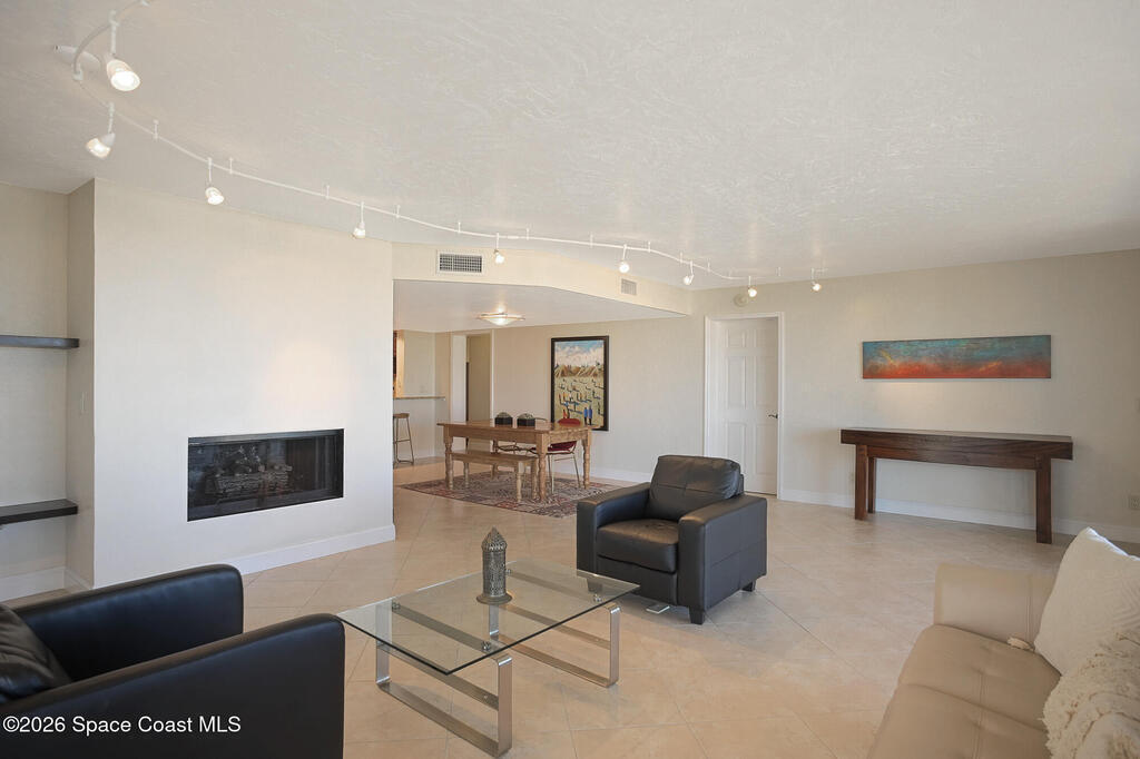 This turnkey oceanfront 3/2 unit is beautifully renovated offering ocean views. This spacious unit features tile flooring throughout and a thoughtfully reimagined floor plan highlighted by an exceptionally enlarged master bathroom, creating a private spa-like retreat with a large walk in closet that has been redesigned. The renovated kitchen showcases contemporary finishes and flows seamlessly into the expansive living and dining areas, perfect for entertaining while enjoying views of the Atlantic or sitting by the fireplace. The guest bath has been fully updated, offering stylish fixtures and finishes. Natural light fills the home, enhancing the open, airy feel and showcasing the coastal scenery. This unit also comes with a shared deeded enclosed garage and new balcony shutters were just installed in 2025. Located within a guard-gated community, residents enjoy peace of mind along with an extensive array of amenities, delivering a true resort-style lifestyle.
