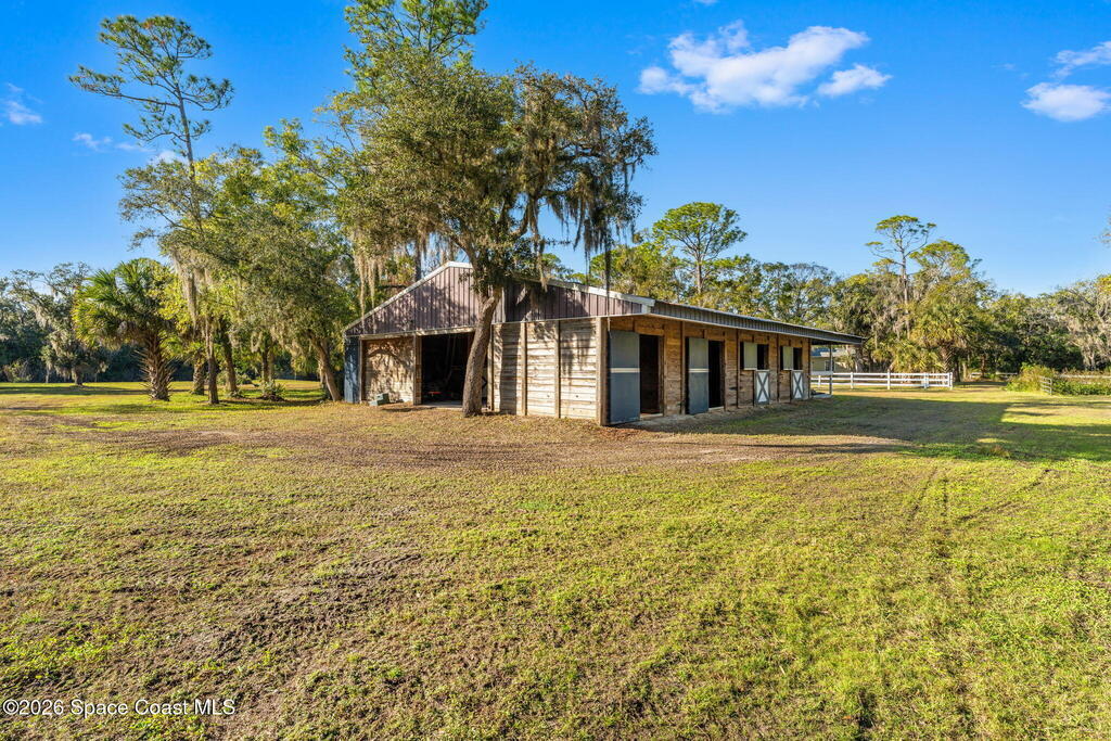Set back on 6.14 acres of pure country peace, this 3,500+ SF home offers 5BR/4BA, tall ceilings, open concept living & tons of natural light. A flag lot setting brings next level privacy w/ a private pond & 4 stall barn ready for horses, hobbies, or weekend dreams. Turnkey w/ key updates 2021 to 2023 incl a new primary bath w/ quartz countertops, a new downstairs guest bath & a new half bath, plus paddle fans, recessed lights, updated outlets & switches. The kitchen refresh includes new cabinet doors, impact windows in the large dining room & kitchen, new granite/marble countertops, sink & fixtures, plus a new dishwasher, refrigerator & microwave. More upgrades include new tile in the downstairs hall, stair closets & laundry room, new carpet throughout, porch stair replacement front & back, & a new washing machine.
