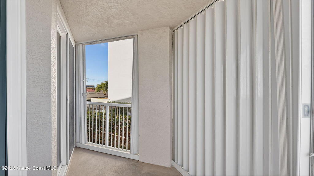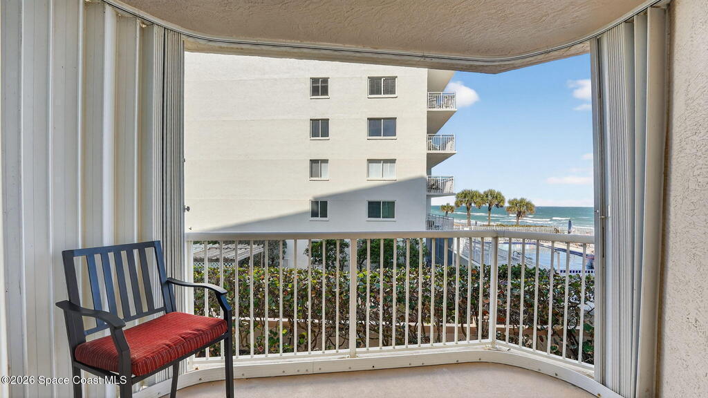 Exterior Features: Balcony and Storm Shutters