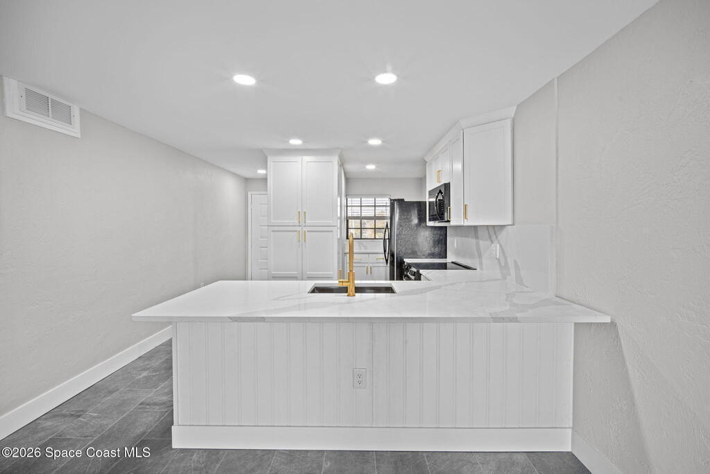 Beautifully renovated, move-in ready riverfront condo in the heart of Rockledge. The updated kitchen features new countertops and new appliances, complemented by fully remodeled bathrooms and new tile flooring throughout with a sound-reducing membrane installed underneath. Interior improvements include new interior doors, new closet doors, and custom built-in shelving in the closets. River-facing built-in storm shutters provide added protection and peace of mind. Additional upgrades include a newer A/C system and water heater. Enjoy direct riverfront living with scenic views and the convenience of being within walking distance to Cocoa Village's dining, shopping, and entertainment.