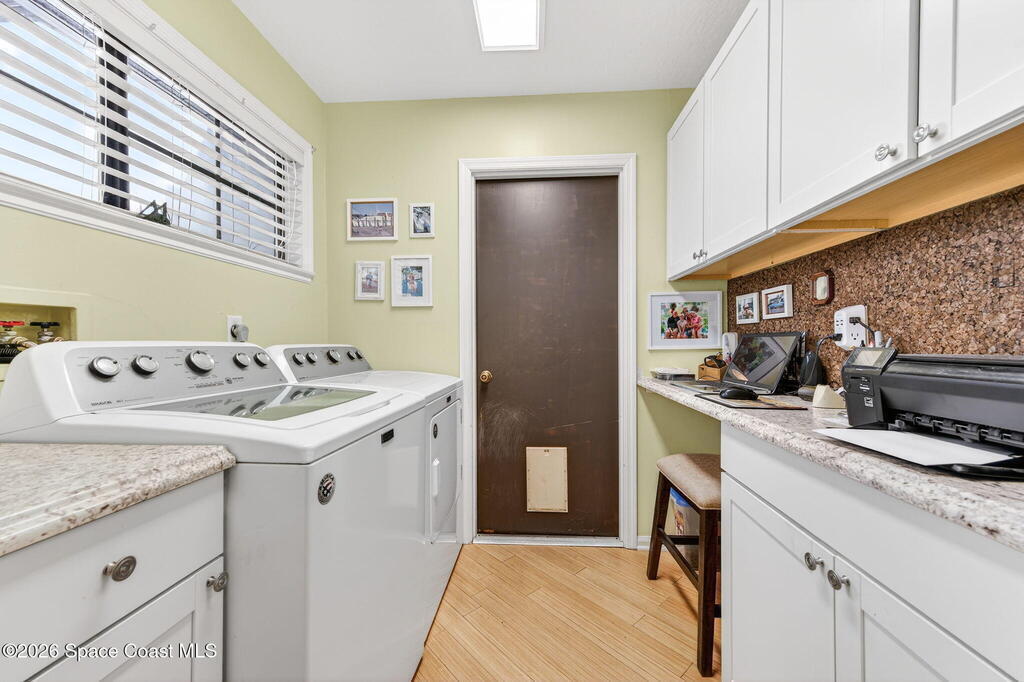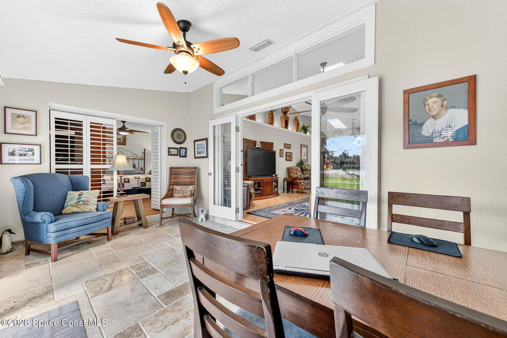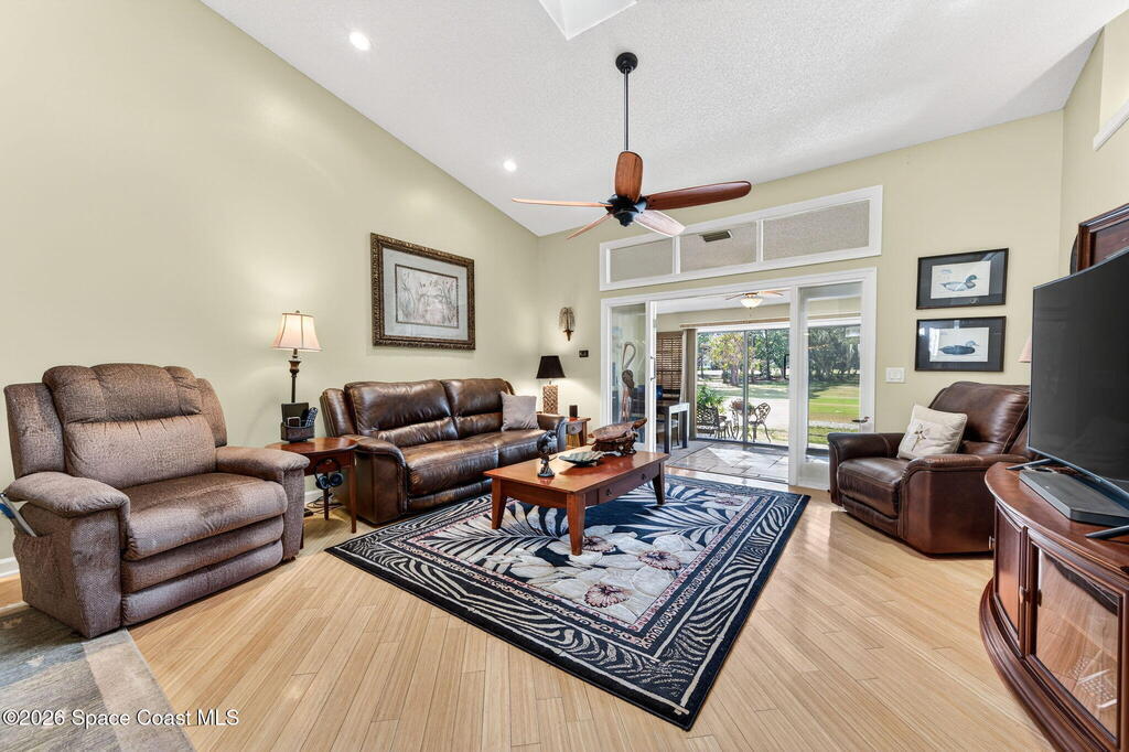 Great views in this outstanding 2 bdrm 2 bath one floor town home located in the manicured subdivision of La Cita. This exceptionally nice town home has many updates & can be sold furnished or unfurnished.Enter thru a brick paved court yard/patio to a leaded glass front door & step inside the tiled foyer to see an open great rm w/ bamboo floors, vaulted ceilings, skylight & recessed lighting. Beyond is an enclosed Fl room under A/C w/sliders to a patio & lovely serene golf course views.The updated eat-in kitchen has newer cabinets (2020) w/soft close doors, granite counters, tile back splash & stainless appliances. Off the kitchen is the inside utility rm w/more cabinets & a built-in computer work station. Both baths have updated cabinets w/ granite counters & the master has a large tiled step-in shower. Roof Shingles 2017, hot water heater about a year old & Square D electrical panel. Store your extra toys in the oversize 513 Sq ft Garage. Extra Nice Property w/quiet neighbors