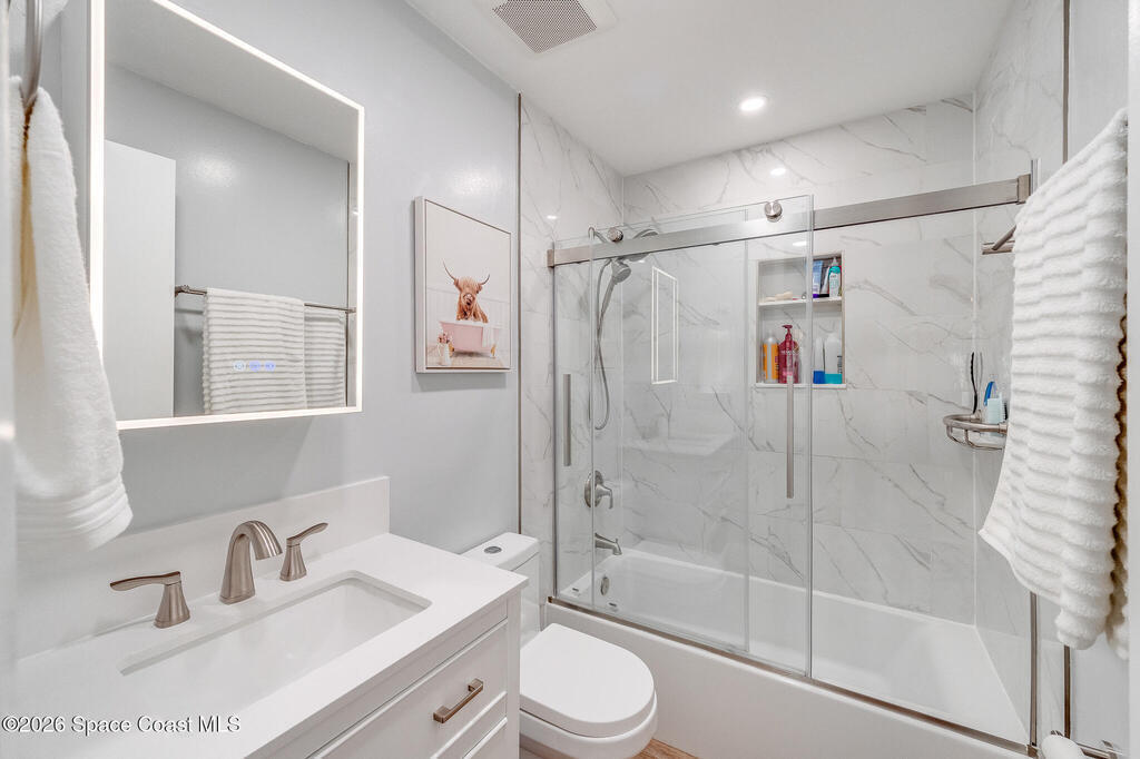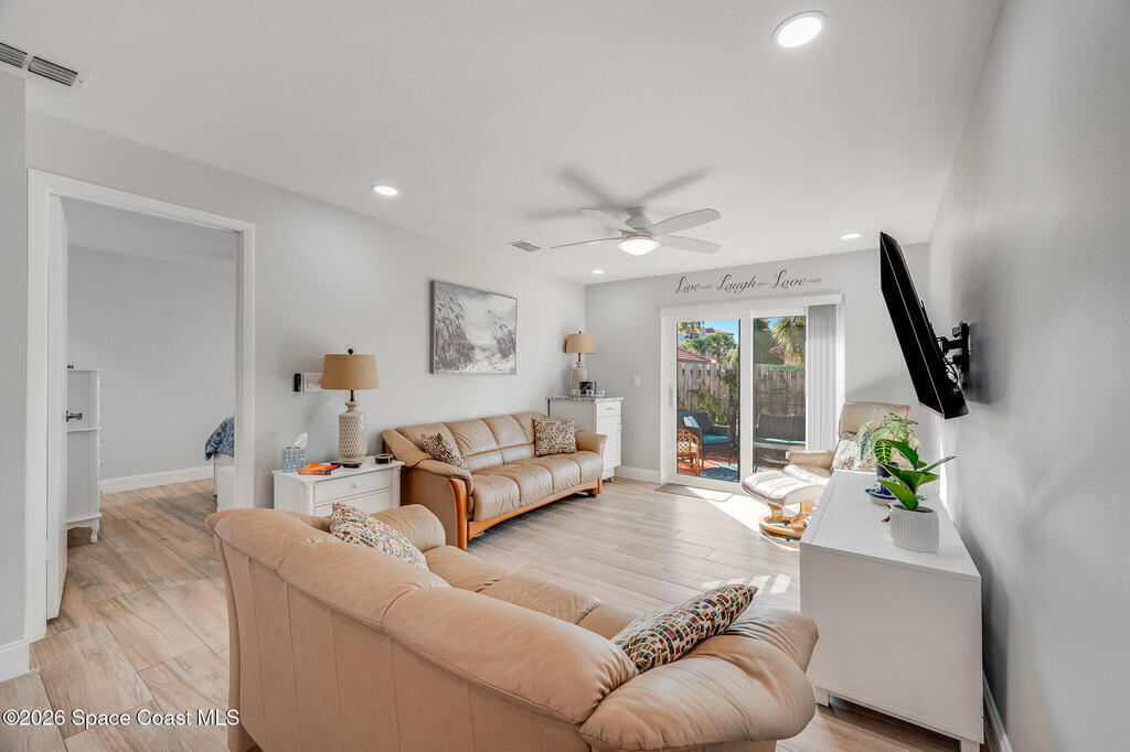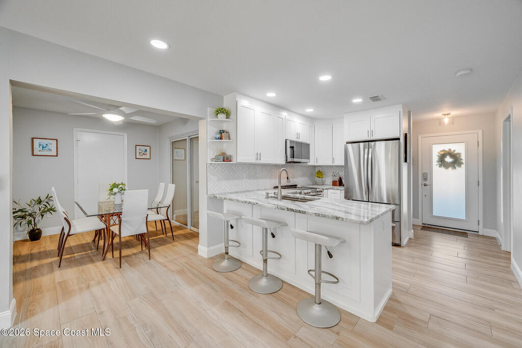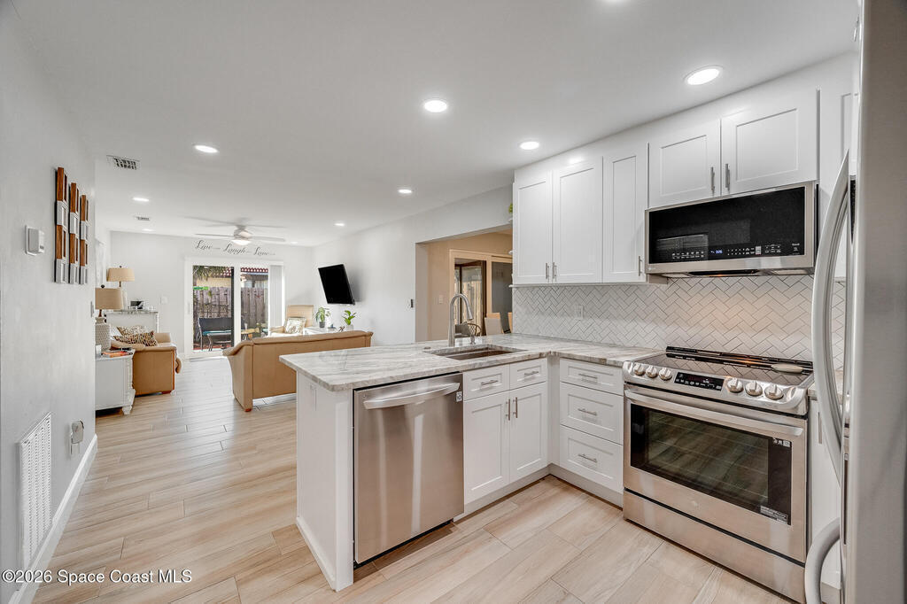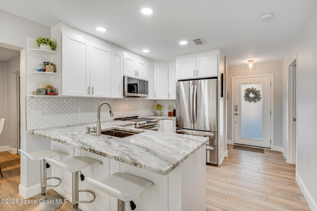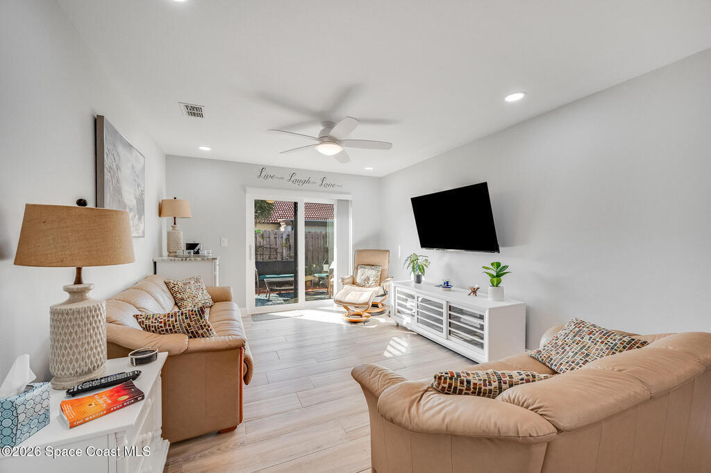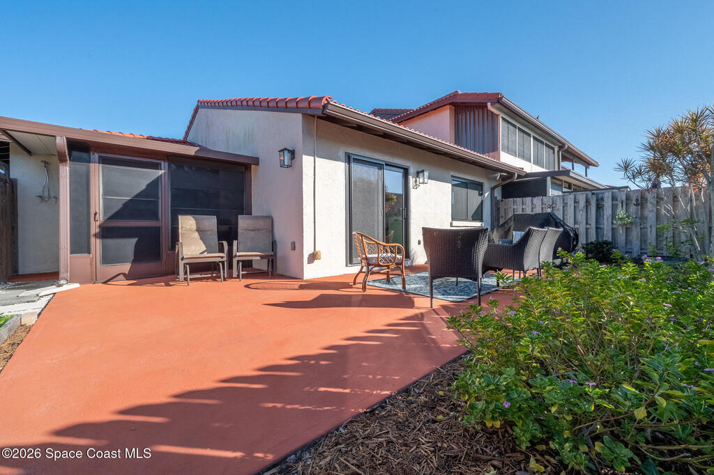 Located in a highly sought-after community, this beautifully remodeled one-story corner unit offers the rare convenience of a one-car garage and exceptional natural light throughout. No detail has been overlooked, with a new roof, hurricane-impact windows and doors, and all-new appliances providing peace of mind and modern comfort. The home is truly move-in ready and showcases quality finishes at every turn. Outdoor living is a highlight, featuring a private lanai, cement patio ideal for entertaining or gardening, and an outdoor shower perfect for coastal living. With low HOA fees and outstanding amenities including private beach access, a clubhouse, two pools, tennis courts, and more, this is a rare opportunity to own a stunning home in an unbeatable location. Don't miss it.