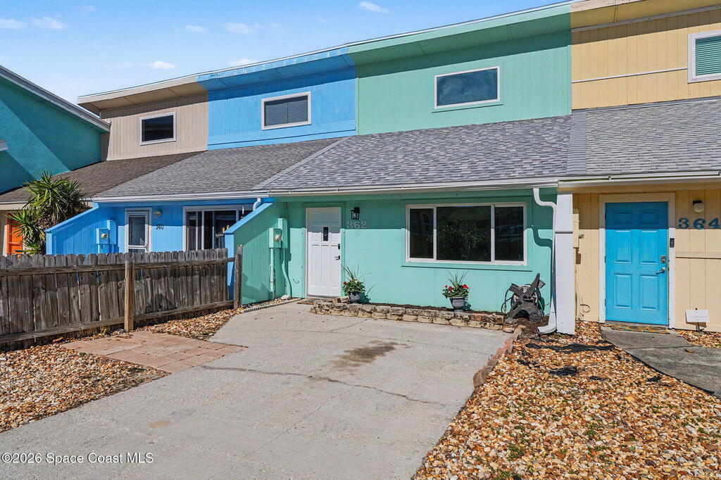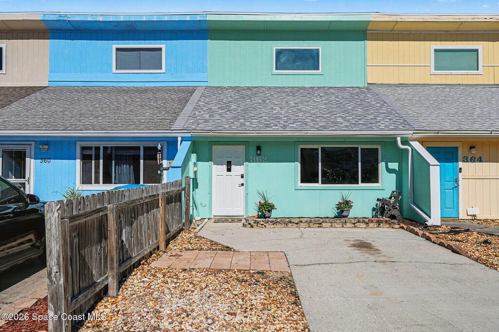 Enjoy coastal living across the street from the ocean in this super clean, move-in ready townhome with no HOA and short-term rentals allowed. Located directly across the street from the beach, this light-filled residence features vaulted ceilings, abundant natural light, and a functional layout with 2 bedrooms and 2.5 bathrooms. Impact windows and doors (2014/2015, plus a hurricane screen at the front door, provide added peace of mind. A new roof in 2025 enhances long-term value. The washer and dryer convey for added convenience. An anchored storage shed on a concrete pad offers space for beach toys, bikes, and gear. Ideal as a primary residence, second home, or income-producing beach retreat, this townhome delivers flexibility, durability, and an unbeatable ocean-side location.