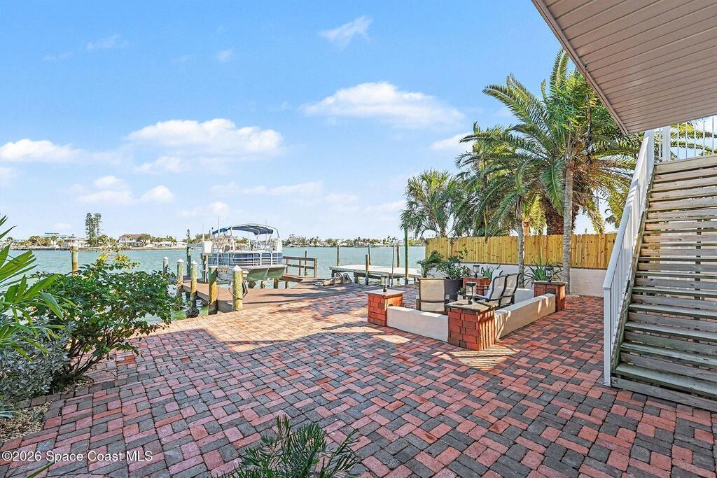 Coastal luxury living with sweeping views of the Gulf. This elevated waterfront 3 bed/3.5 bath home has TWO en-suites, an ELEVATOR, and a 3-car garage. The open-concept main level features a chef's kitchen, living and dining areas, all framed by breathtaking water views and abundant natural light. Private 3rd floor primary suite has its own balcony, two walk-in closets, and a spa-like bath with jetted tub and walk-in shower. 2nd en-suite offers Gulf views and a private balcony. Additional highlights: 2 wood-burning fireplaces, luxury vinyl flooring, and surround sound. Enjoy effortless waterfront living with a brick paver yard, mature palms, private dock, and 10,000-lb BOAT LIFT with quick Gulf access. Watch dolphins, fish from your dock, and enjoy Madeira Beach fireworks from home. Updates include a 2023 roof and water heater, HVAC, fresh interior paint, dishwasher and refrigerator(2025). Just steps to the beach, minutes to John's Pass, shopping, and dining. A boater's paradise!