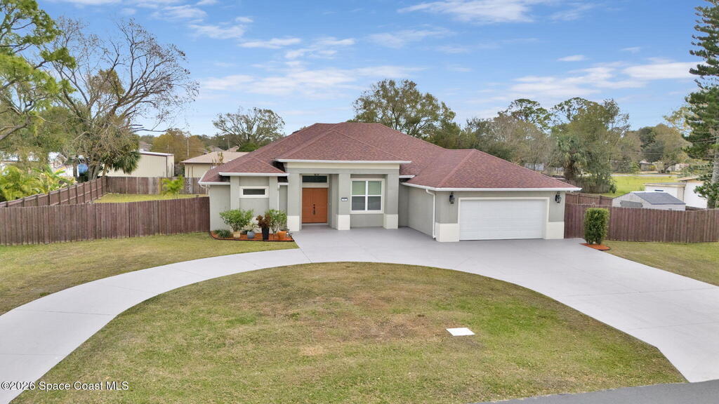 This custom-built home is a true unicorn, situated on a fully fenced 0.4-acre lot with no HOA on city water and sewer. Thoughtfully designed in 2020, the home features numerous practical upgrades that enhance both comfort and everyday living. An oversized semicircular driveway provides ample parking and leads to a two-car garage with extra 6 foot extension and fully equipped with a utility sink, pull-down attic stairs for extra storage, a smart garage door opener, exterior 50A generator hookup, dual 150-amp electrical panels and hooks for 4 teen/adult bikes. The home is pre-wired for pool equipment, 220v pre-wire for an exterior shed, and roughed-in for up to a 100A car charger in the garage. The roof line pointing to the south was carefully designed to maximize the quantity of solar panels of a future installation. A double front entry door welcomes you into a bright interior featuring soaring 10-foot ceilings and an open-concept, split 3-bedroom, 2-bath floor plan.