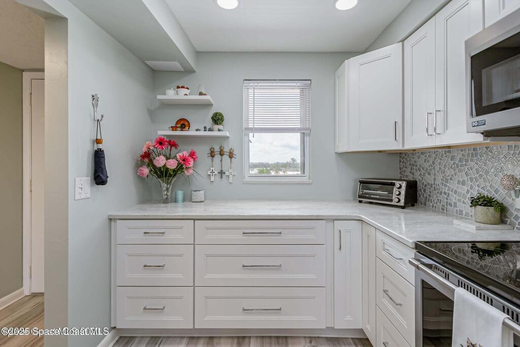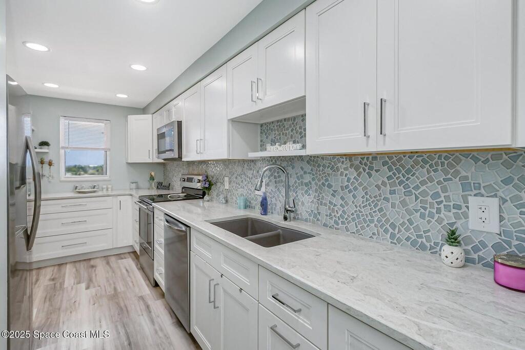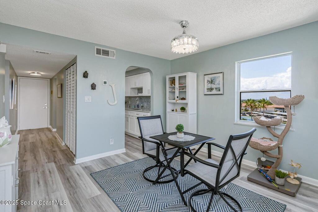 Come and view this elegant, classy coastal condo, true 2/2 condo ( not 2-1.5) 1100 sq ft. BRIGHT AND AIRY located on the corner/END, views all around, bright and sunny with sunrises, sunsets, this is the only 2/2 CROSS BREEZES AND unobstructed views , ocean views, shutters on all windows, gently used home with LVP flooring throughout, wrap around kitchen featuring, 2 lazy Susan's, custom lighting ', 36'' pot drawer, trash/ recycle built-in, LED lighting, sea glass backsplash, inside, laundry, storage on balcony ,the all new...don't miss the NICEST condo Amenities incl, solar heated pool, shuffle board pickle ball, EZ stroll to deeded beach access. tennis courts, car wash area, ADDITONAL PHOTOS COMING SOON