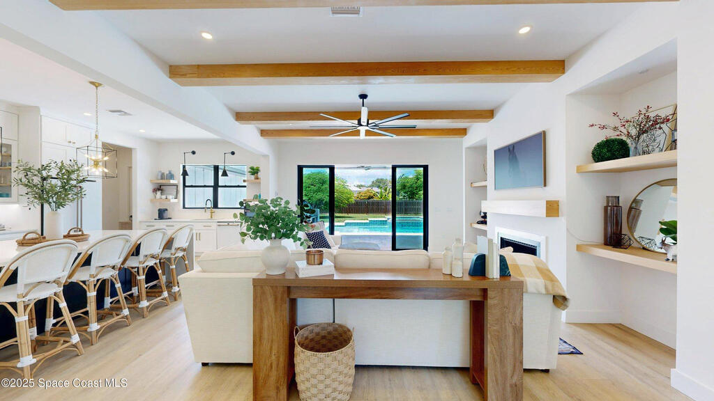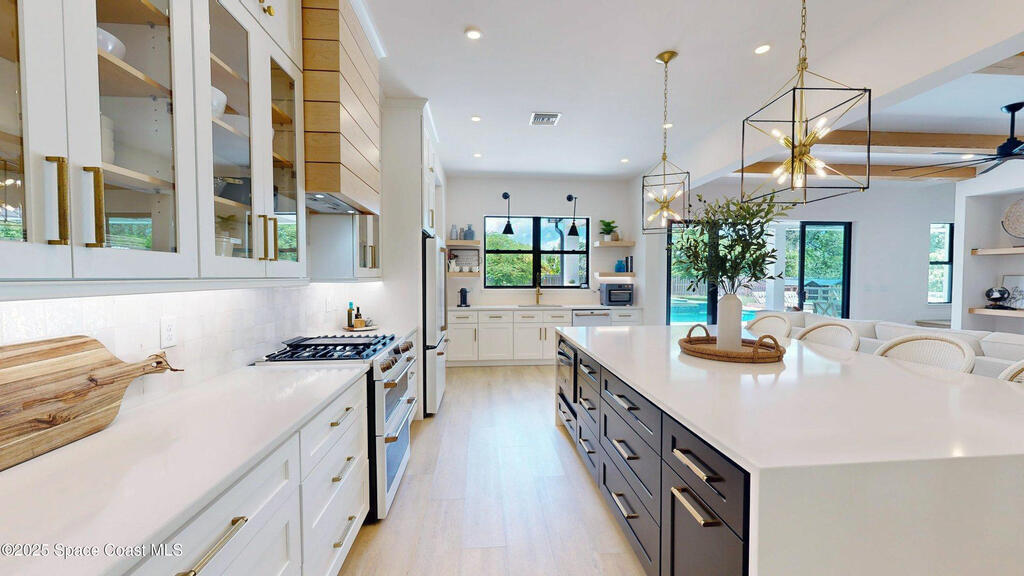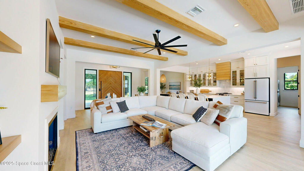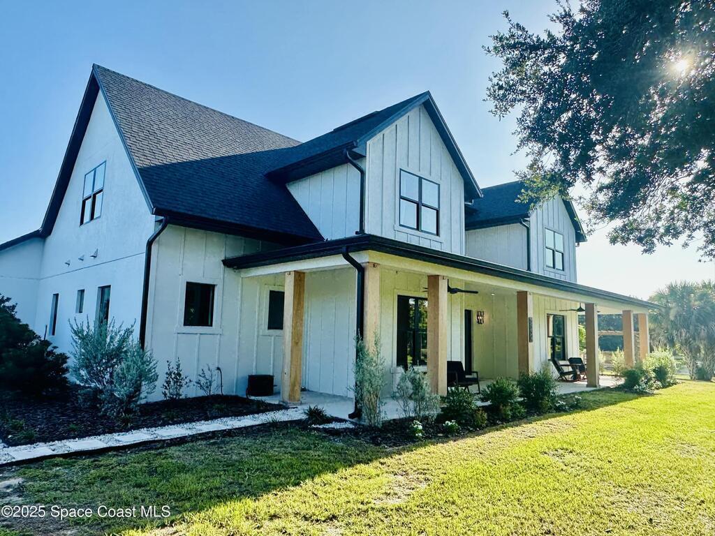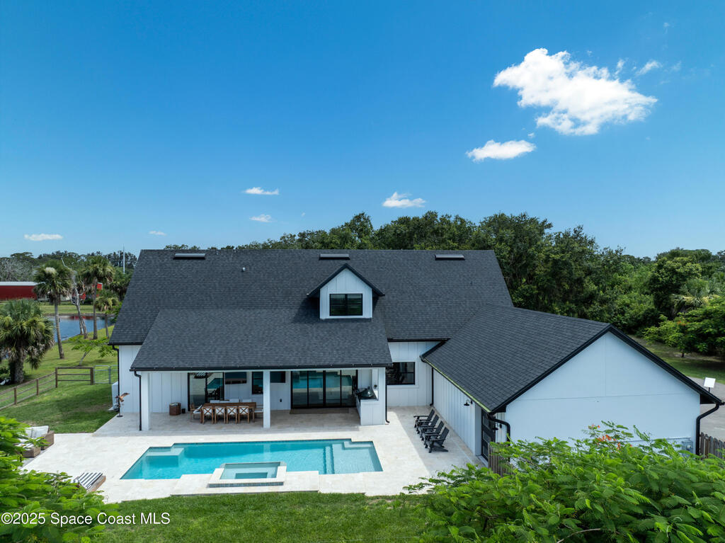*Modern Farmhouse on 7 Private Acres with Lake & Pool*Rare opportunity to own a custom-built modern farmhouse on nearly 7 secluded, dry acres in the heart of Merritt Island. This 6-bed, 3-bath home features nearly 3,800 sq ft of stylish, functional living space--including an office, gym, and chef's kitchen with quartz waterfall island, GE Cafe appliances, and custom cabinetry. Enjoy a private 1.3-acre lake, heated pool & spa, outdoor kitchen, impact windows, propane fireplace, and a 1/4-mile private driveway. Zoned for top-rated schools and just minutes to beaches, shopping, and the Space Center. Room for horses, barn, or simply to relax in total serenity. Truly one-of-a-kind--schedule your private tour today! Updated exterior photos coming soon. Seller recently completed a major front elevation improvement and landscape project.