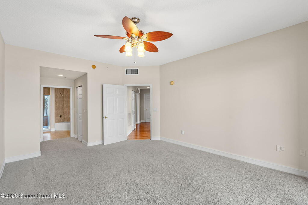 Steps from the marina and Historic Cocoa Village, at nearly 3,000 square feet, this CORNER UNIT with a WRAP-AROUND BALCONY in Whitley Bay offers unobstructed Indian River views, space, and value. It's priced more than $100,000 below the only other recently closed unit with the same floor plan--and that sale was one floor lower. The open layout is expansive and functional, with Indian River views throughout. Fresh interior paint, quality finishes, and a well-designed kitchen with stainless appliances, ample cabinetry, and new countertops make the space both comfortable and practical.The primary suite is generously sized and privately positioned, featuring dual vanities, a soaking tub, a separate shower, river views, and balcony access. Two additional bedroom suites each include their own full baths and walk-in closets, one with a river view and balcony.Enjoy resort-style community amenities with this secured building including a pool, gym, clubhouse and private garage.