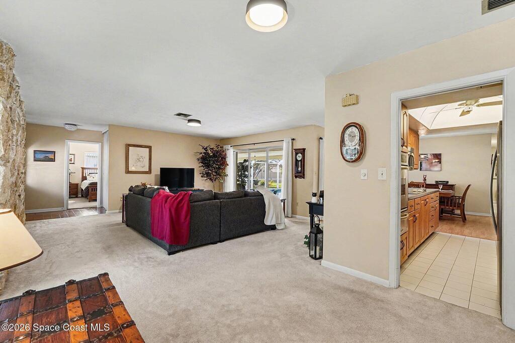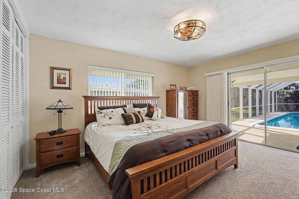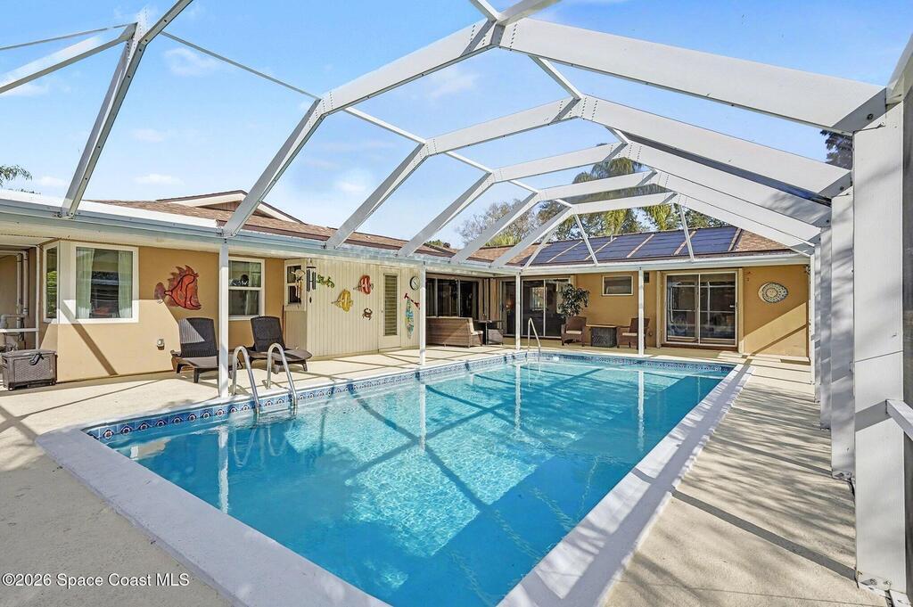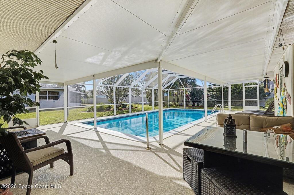 Picture easy Florida living in this well-cared-for Port Malabar Country Club home, where space, comfort, and location come together. Spend your days enjoying the screened in-ground pool, heated by solar panels (2023) for year-round swimming, and your evenings relaxing in a quiet, established neighborhood. Major upgrades are already done, including a new roof (2023), new water heater (2025), new pool pump (2024), and irrigation pump (2022). Inside, the split-bedroom layout offers privacy, with the owner's suite set apart from the guest bedrooms. A Jack-and-Jill-style bathroom adds everyday convenience with access from both a bedroom and the hallway. Most windows are impact-rated, and the 2-car garage features a hurricane-rated door. Ideally located 25 minutes from the beach, close to shopping and dining, 15 minutes to MLB, and about 70 minutes to MCO--this home is ready for your next chapter.