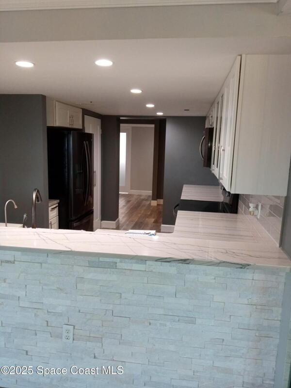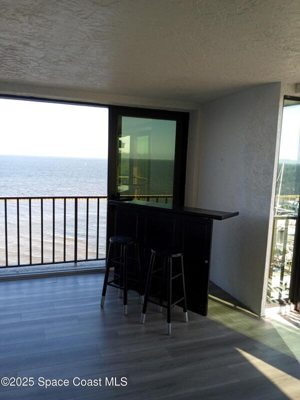 This is a MUST SEE UPDATED TOP FLOOR end unit LUXURY PENTHOUSE. The PANORAMIC view of the space coast on the Indian River is the perfect location for watching Rocket Launches and watching Dolphins play. Updated flooring throughout. Complete kitchen remodel. Kinetico Water Softner. Updated light fixures throughout unit. Balcony has Luxury Vinyl. 3 sets of White Jeld Wen Energy Efficent Exterior Sliding Doors. Motorized blinds on exterior sliding doors. This Condo is a must see!!! PGT Impact Sliding Glass Doors enclosing balcony creating additional living space.
