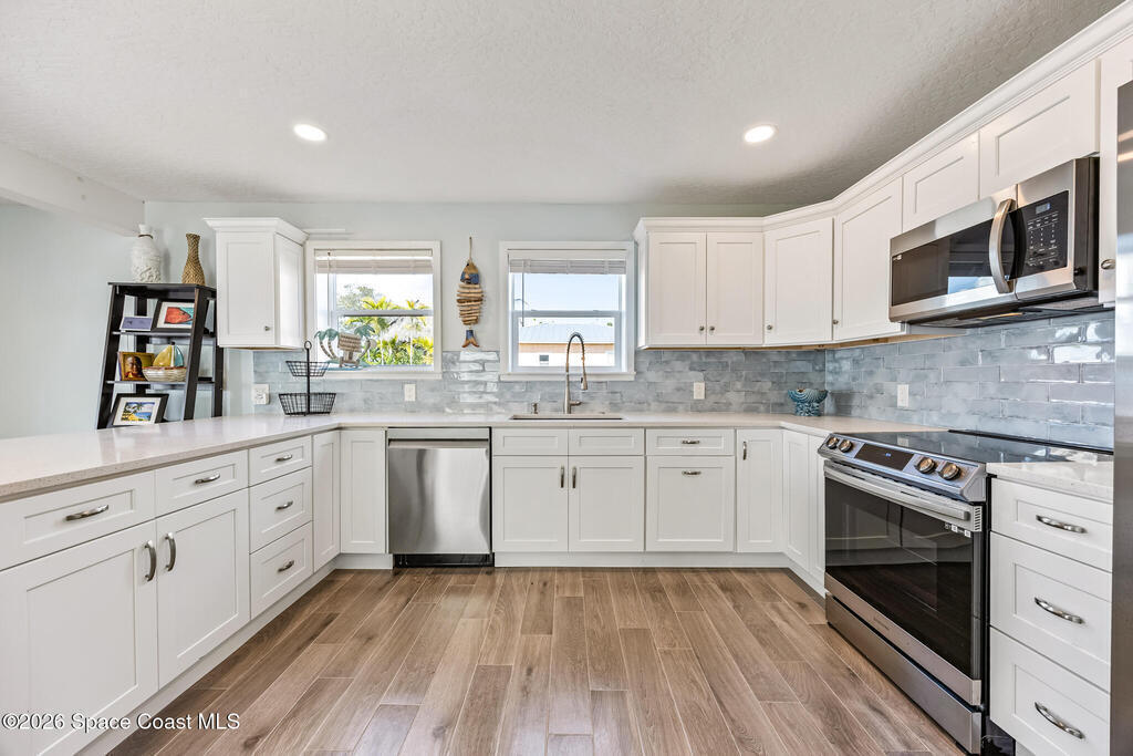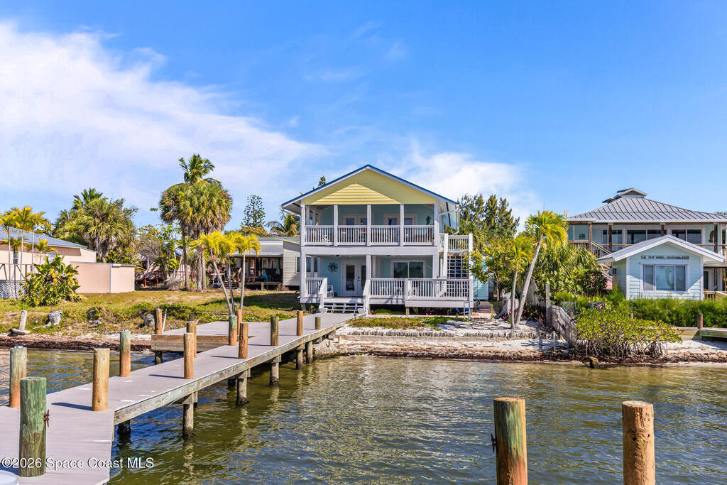 Welcome to this beautifully remodeled riverfront home on VIP Island (Grant Farm Island) in Grant, set on the Indian River. Nearly everything has been updated inside and out--including a brand-new dock with low-maintenance composite decking.Soak in sunset views from the oversized porch, then head down to the dock for boating, fishing, or just unwinding by the water. The layout is a true split plan with flexible living space on both levels.Downstairs features a full second living area with a kitchenette, dining space, bathroom, and two bedrooms--perfect for guests or multi-generational living. Upstairs is the main living space with a gorgeous kitchen, a family room lined with sliding glass doors for big river views, and the primary suite. Step out from the lower deck straight to your private dock and enjoy waterfront living at its best.