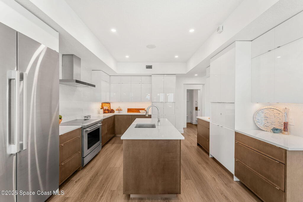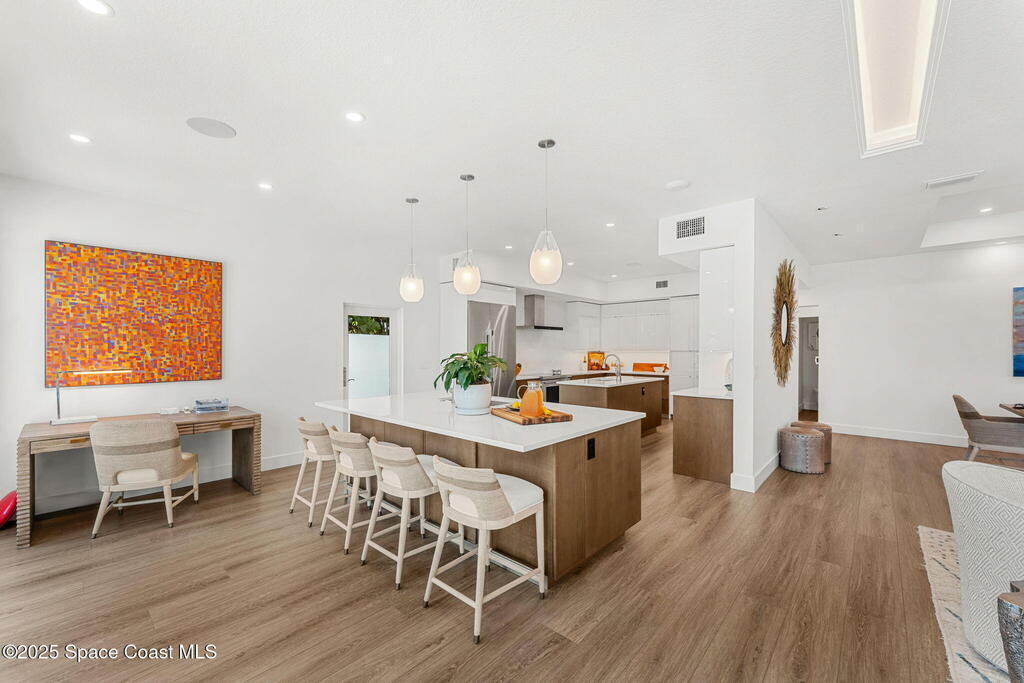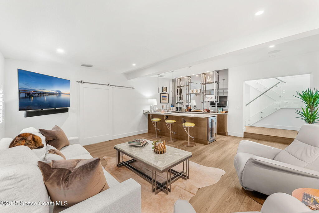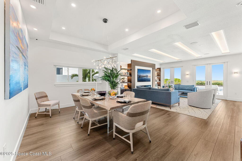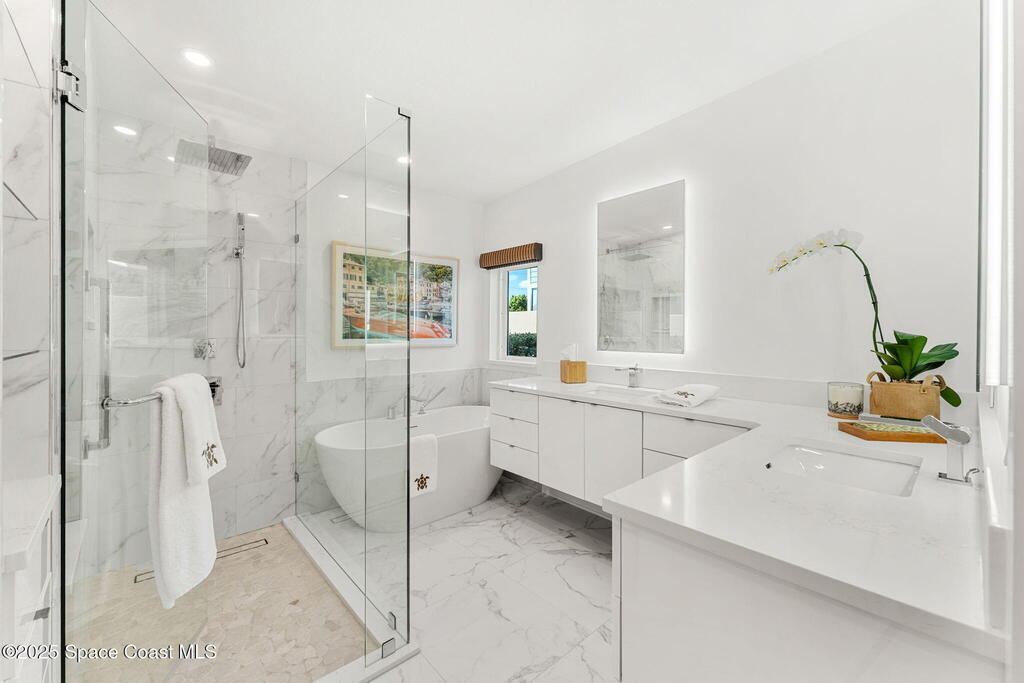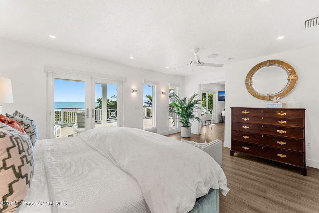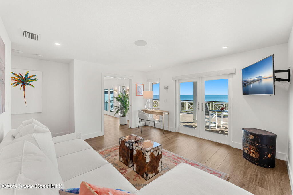 Welcome to TurtleGate, a fully renovated and gated coastal retreat blending modern luxury with low-maintenance oceanfront living. Crafted by renowned builders, this estate home's 2023 renovation features block & frame construction, a metal roof, and reinforced concrete walls for exceptional strength. Inside, enjoy an open-concept layout with luxury flooring, designer lighting, raised ceilings and custom features. The chef's kitchen boasts a Wolf range, Dacor fridge, Cove dishwashers, dual islands, Calacatta quartz and coffee bar. The living room opens to the ocean with built-in walnut bookcases and fireplace. Just off the 2-story glass enclosed staircase is the den with a 10' quartzite bar, smoked glass shelves and wine cooler. Two primary suites--one on each level--offer spa-like baths & views. The 1,100 sq. ft. AC garage shines with a finished floor, custom cabinets and 30' of butcher block countertops. TurtleGate enjoys a prime location with the privacy of its own residential beach.