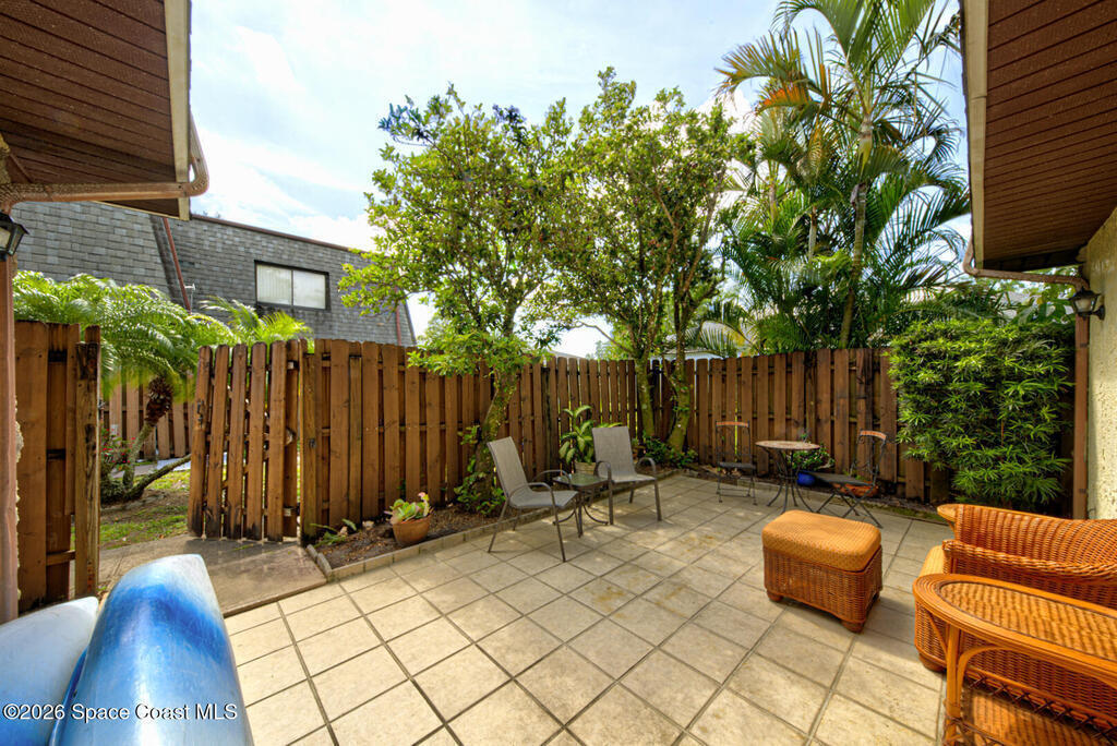 Well Maintained, Spaciously Designed 2 Bedroom, 1 full & 1/2 Bathroom, 2 Story Town home located in Titusville. Many upgrades all in 2025 with new lighting fixtures inside and outside, new ceiling fans, new faucet, new window treatments, 2 new entry doors, updated bathrooms with new toilets and new walk-in shower, new HVAC system, new Tankless Hot Water Heater, and Professional painted. Also new carpet on stairs and second floor (bathrooms are both tile flooring and also downstairs has tile flooring throughout). There is more, washer and dryer hookups in the unit and a large fenced in (6ft privacy fence) courtyard with mature tropical landscaping. Great for outdoor entertaining or just your own little oasis. Low HOA fees and ample parking. This place is worth taking a look at.