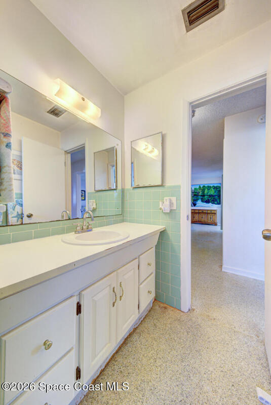 Waterfront Cocoa Beach canal home just 1 block from the beach! This 3BR/2BA home with a 2-car garage and RV/boat parking sits on one of the widest canals in Cocoa Beach, offering canal navigation to the Banana River and direct access to the Thousand Islands. Perfect for boating and enjoying the ultimate Florida lifestyle. Take in breathtaking sunrises and sunsets, watch dolphins swim by, or fish right from your backyard. The home needs work but has great bones and endless potential. Updates include a 2018 composite tile roof, 2001 main electrical panel, all copper wiring, HVAC 2017, and water heater replaced in 2007. Additional improvements include a kitchen drain line re-piped and front hose bibb replaced in 2025. Terrazzo flooring adds classic Florida charm throughout. Rare opportunity to own a canal-front home near the beach at a great value. Bring your vision and make it your dream coastal retreat. Close to downtown Cocoa Beach, dining, and just 45 minutes to the airport.