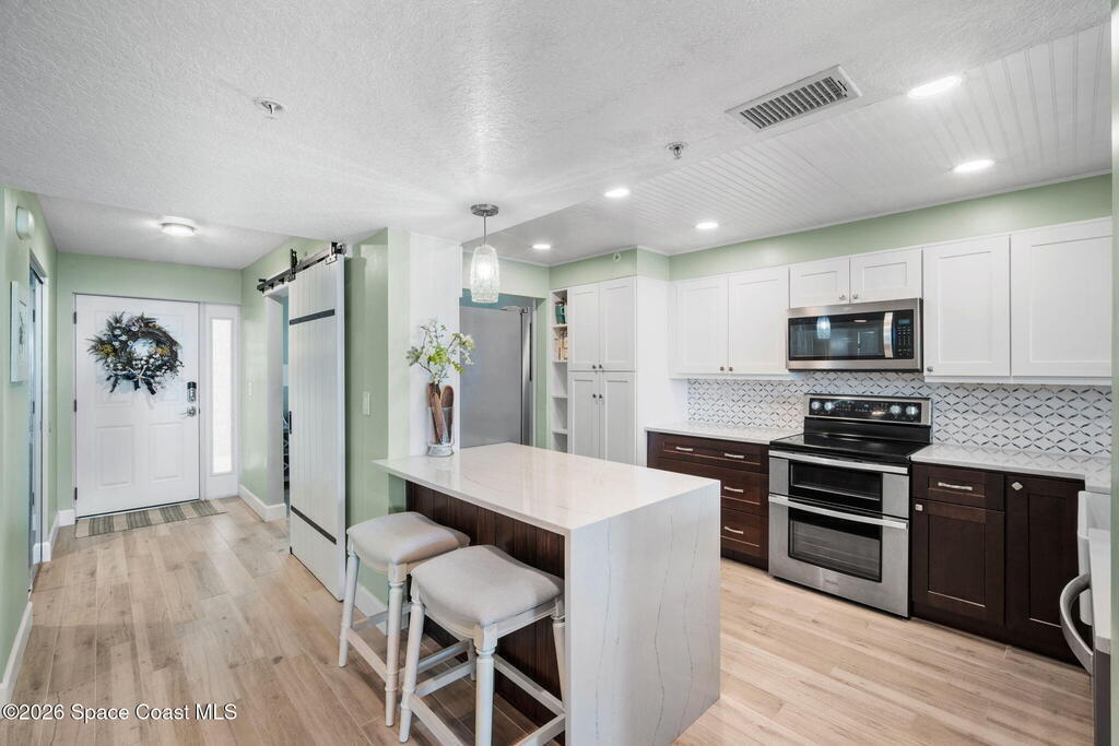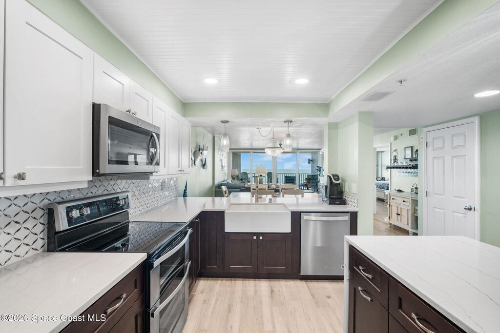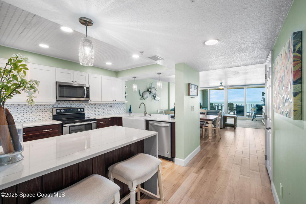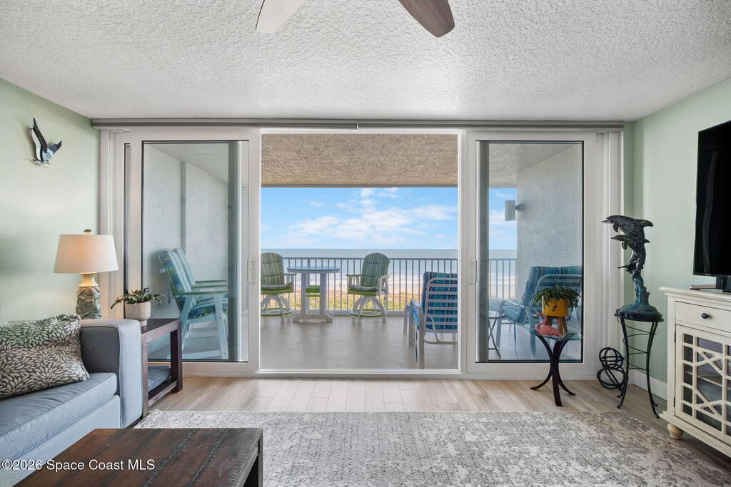 Welcome to Majestic Seas--one of Cocoa Beach's most sought-after oceanfront condominiums- and an unbeatable location. This beautifully updated residence has been fully renovated throughout! Stunning kitchen w/ quartz countertops, new cabinetry, & all-new appliances, blending style and function for everyday living or entertaining. Incredible direct ocean views, breathtaking sunrises & exciting rocket launches right from your large, private balcony! A versatile flex space with modern barn doors offers the perfect solution for a home office or third bedroom when guests arrive. Located on iconic Ocean Beach Boulevard, you're just steps from everything - the Cocoa Beach Pier, restaurants, bars, shopping, and Publix--all within easy walking distance. This is a well-maintained, financially strong building, offering peace of mind and resort-style amenities including: heated pool, beach access, fitness center, clubhouse, Private entry deeded garage and storage. AC one year, furniture negotiable