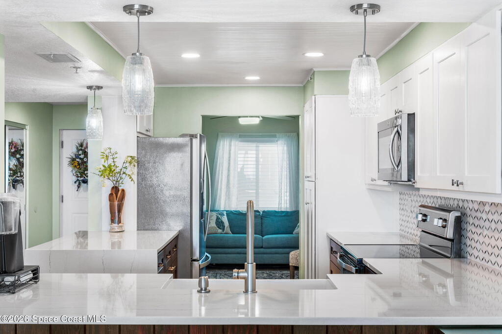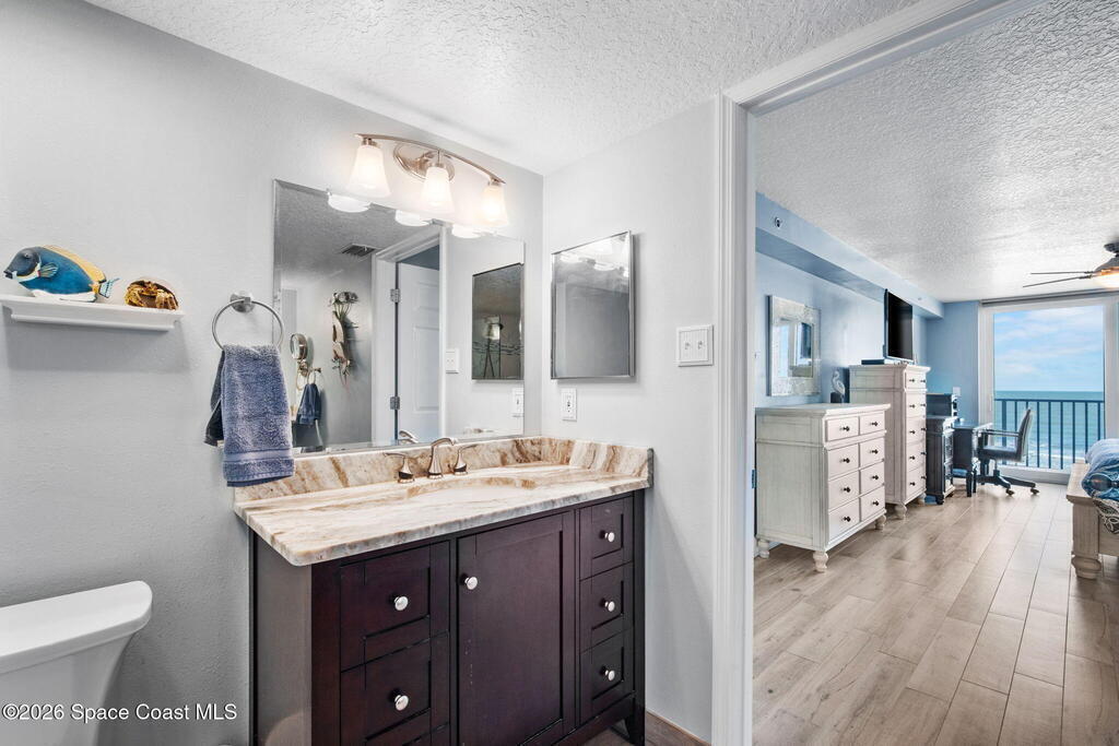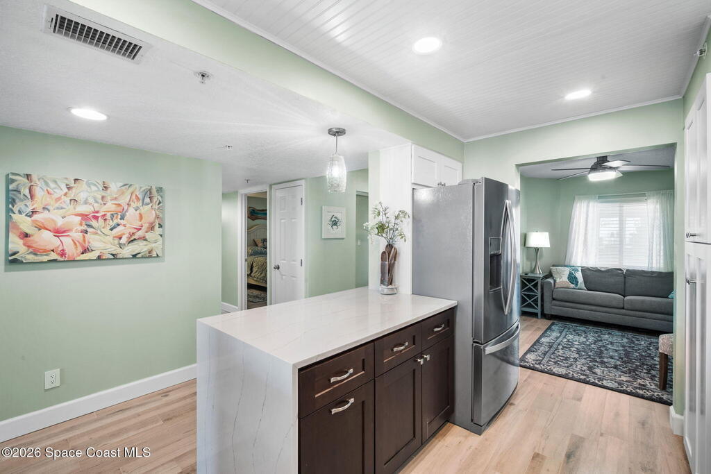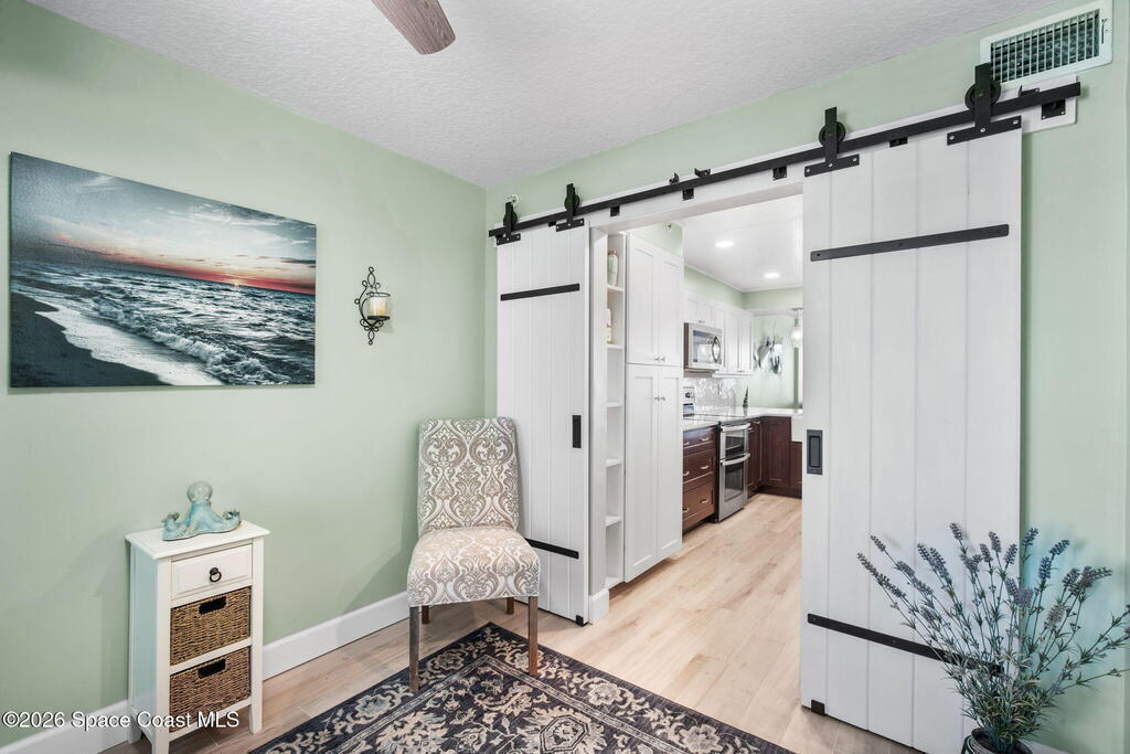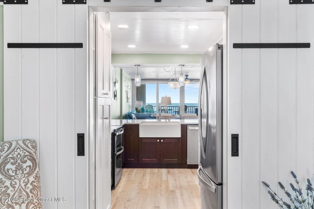 Welcome to Majestic Seas--one of Cocoa Beach's most sought-after oceanfront condominiums- and an unbeatable location. This beautifully updated residence has been fully renovated throughout! Stunning kitchen w/ quartz countertops, new cabinetry, & all-new appliances, blending style and function for everyday living or entertaining. Incredible direct ocean views, breathtaking sunrises & exciting rocket launches right from your large, private balcony! A versatile flex space with modern barn doors offers the perfect solution for a home office or third bedroom when guests arrive. Located on iconic Ocean Beach Boulevard, you're just steps from everything - the Cocoa Beach Pier, restaurants, bars, shopping, and Publix--all within easy walking distance. This is a well-maintained, financially strong building, offering peace of mind and resort-style amenities including: heated pool, beach access, fitness center, clubhouse, Private entry deeded garage and storage. AC one year, furniture negotiable