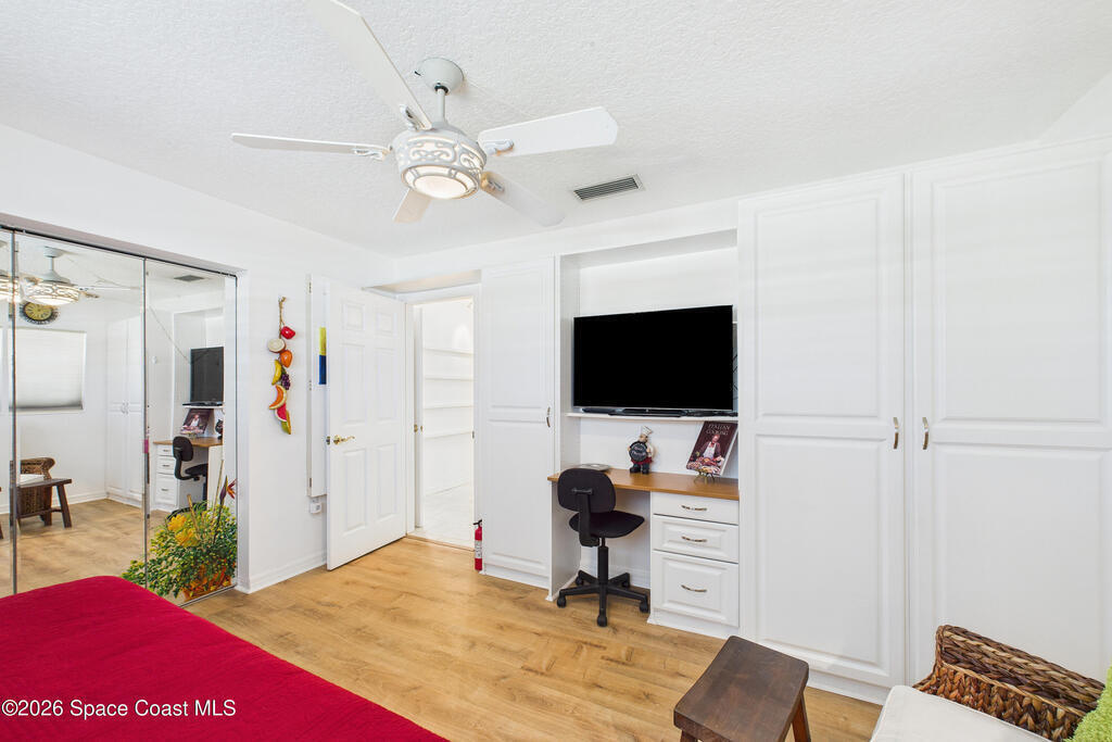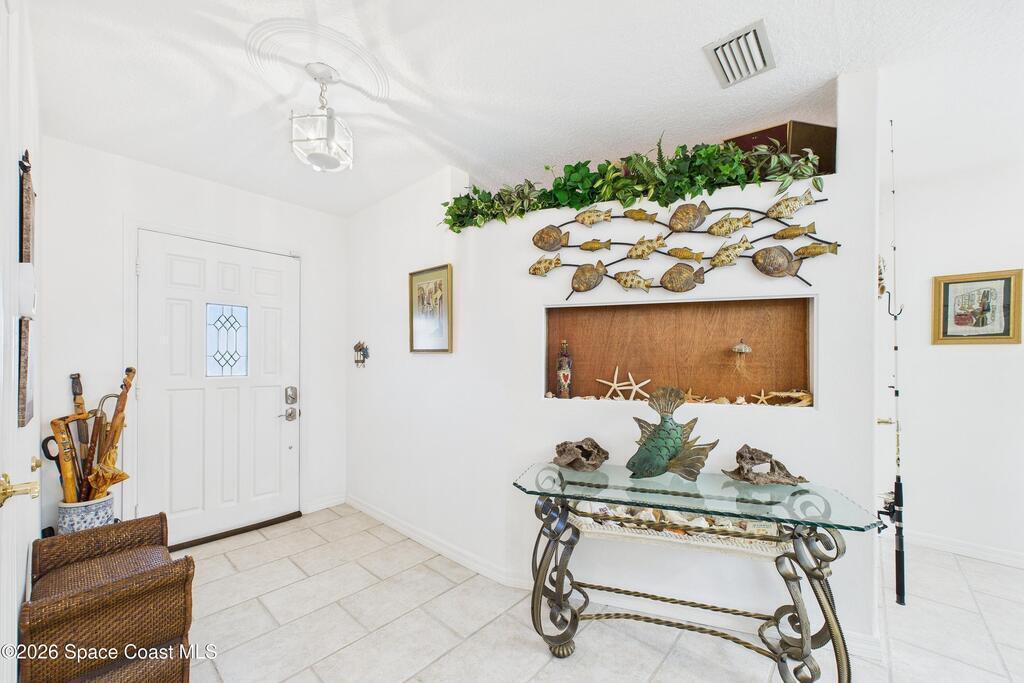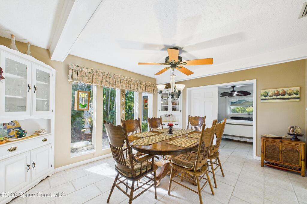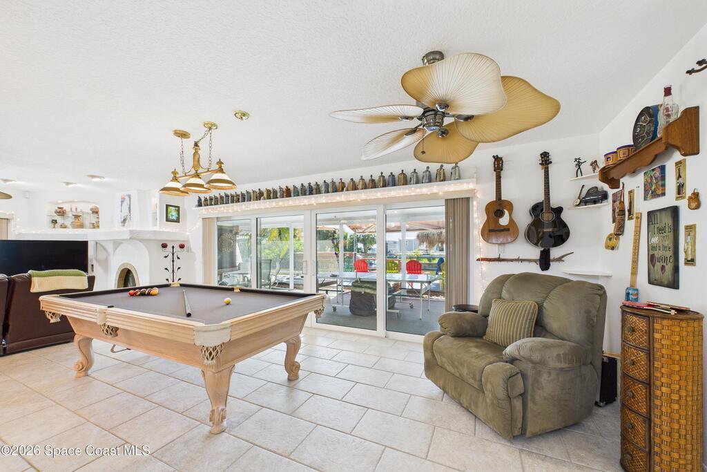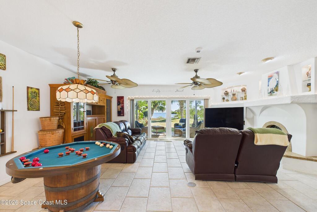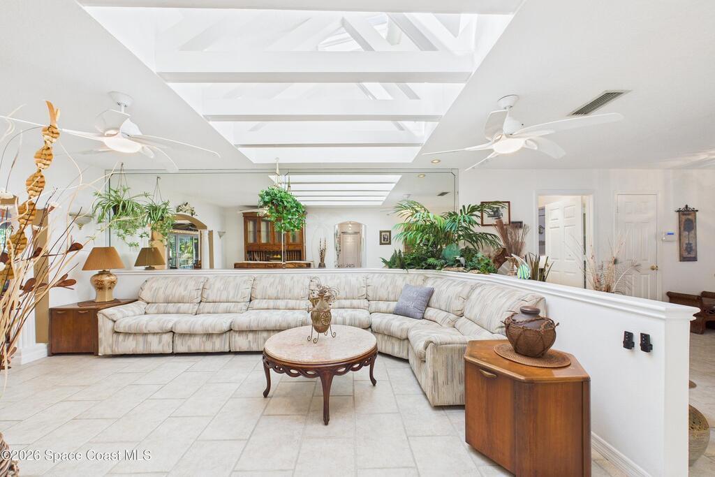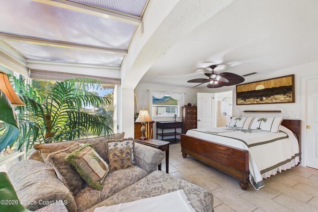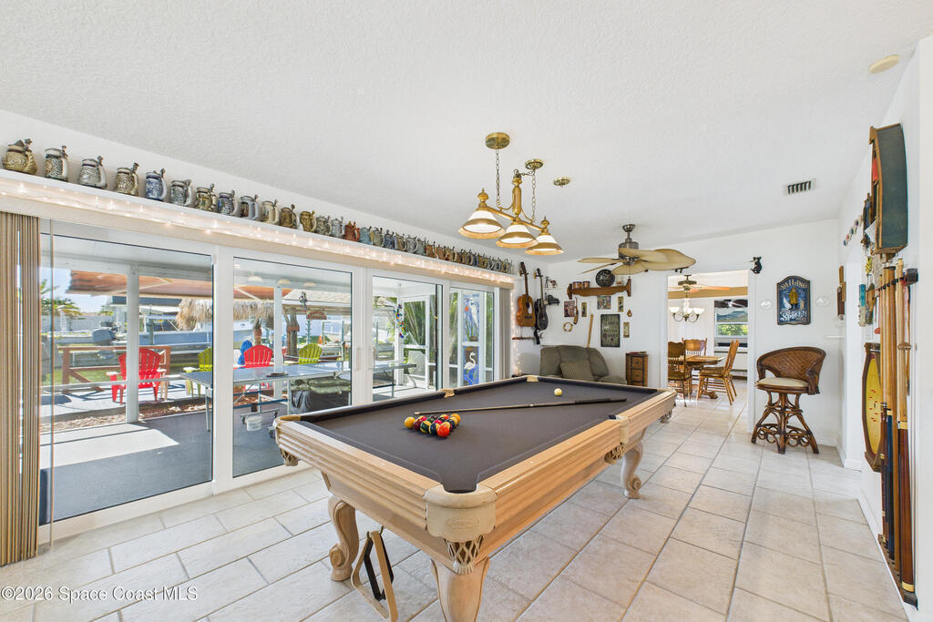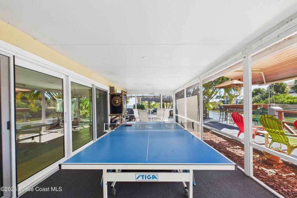 Waterfront living at its finest on an oversized lot with 224 feet of direct river and deep-water canal frontage offer breathtaking River views. This 3-bedroom, 2-bath home offers two additional bonus rooms, currently used as an art studio and home gym, providing flex space for work, creativity, guests or open it all up. Enjoy daily waterfront beauty with the ability to watch rocket launches and cruise ships from your own backyard, with nearby Port Canaveral. The primary features a full window solarium sitting area, perfect for taking in canal scenery. Boaters will appreciate two boat lifts with ample dock space. The property also offers Accordion shutters and impact sliders for added storm protection and peace of mind. extra parking for boats, RVs, or trailers, complete with RV water and electrical hookups for easy plug-and-play convenience. This is a rare opportunity to own a versatile, well-positioned waterfront home with unmatched views, storage, and lifestyle amenities.