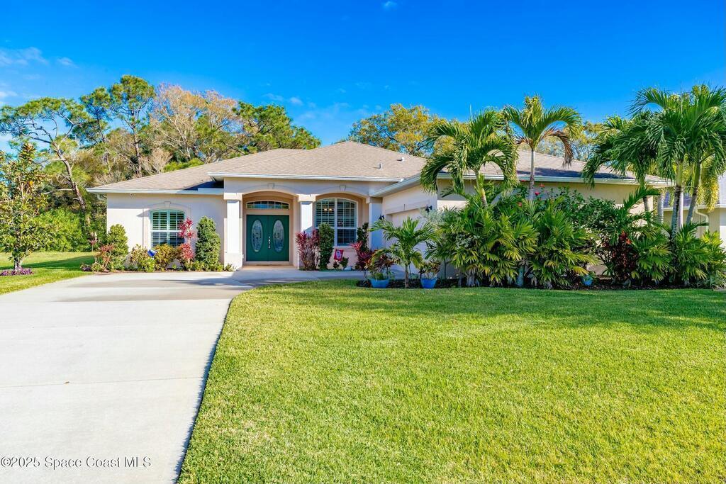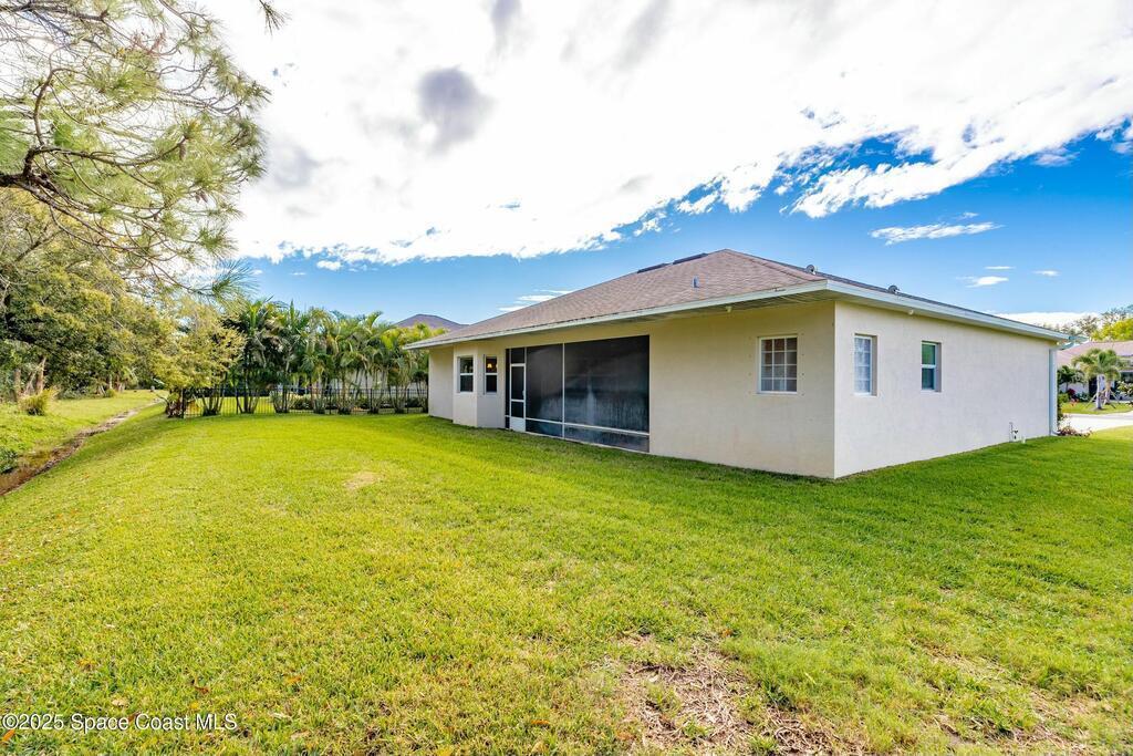 Impeccably crafted custom home offering 2,151 sq ft of refined living on a pristine .28-acre lot. This 3BR/2BA/2CG residence with a den (or 4th BR) showcases soaring ceilings, crown molding & a sophisticated split plan. The gourmet kitchen gleams with granite, SS appliances & an inviting eat-in bar. Enjoy the tranquil lanai views of a very private, landscaped backyard. The sumptuous primary suite offers dual walk-ins & a spa-inspired bath. Tile & LVP throughout. Low HOA includes lawn care. Room for pool--minutes to beaches, fine dining & boutiques.Adjoining lakefront lot available for purchase.