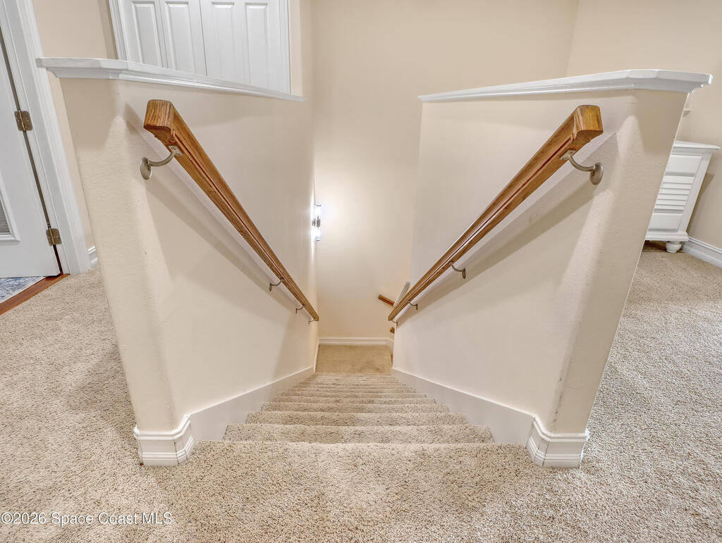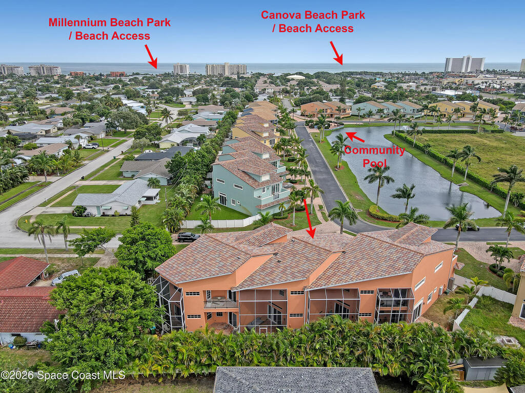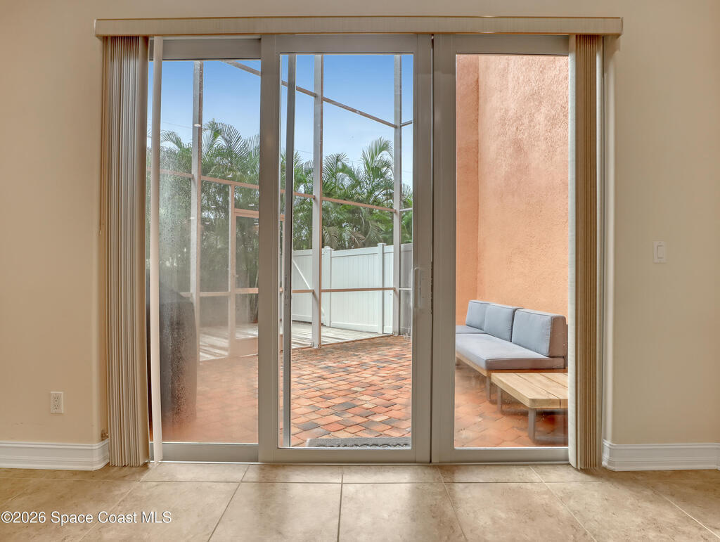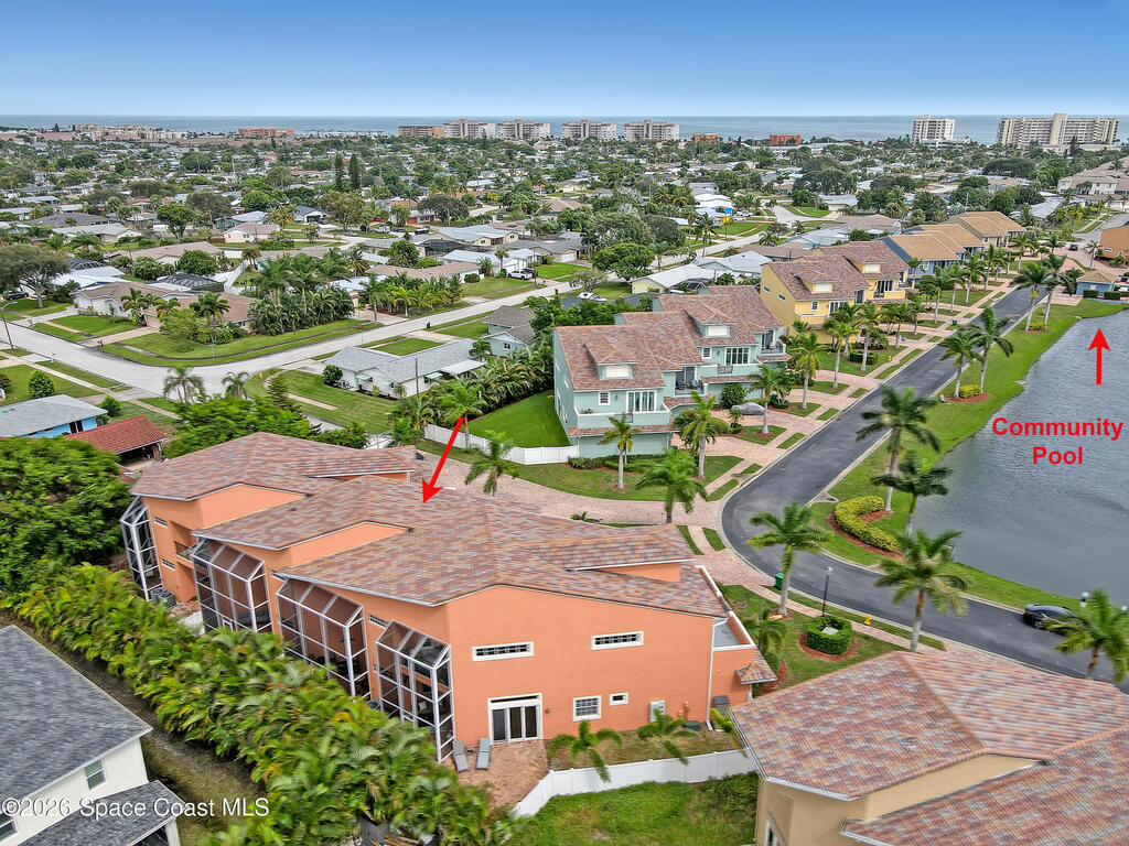 Maintenance free & minutes away from the Ocean. Available for 6 or 12 months. Lawn care & irrigation included. Washer & Dryer. Gated community with a pool. All 3 bedrooms are upstairs. Beautiful kitchen with Stainless Steel Appliances, Granite Counter, Backsplash & soft close Cabinets. 1st floor has tile throughout. Open concept with high ceilings. Large family room, dining room, walk in pantry & a 1/2 bathroom also found on the 1st floor. Enjoy your outdoor deck with tall screen enclosure & fenced in yard. 2nd floor features the Master Bedroom. Generously sized walk in closet. Master Bathroom has 2 vanities with granite, jetted tub & stand alone shower. Master bedroom & bathroom have sliders that lead out onto a balcony. Laundry room is upstairs. Carpet upstairs except for one of the bedrooms. 3 bedrooms in total upstairs & 2 full bathrooms. 2 Car garage with large & wide paved driveway with ample room for parking. Close to Eau Gallie Causeway, A1A , beach, shopping and school.