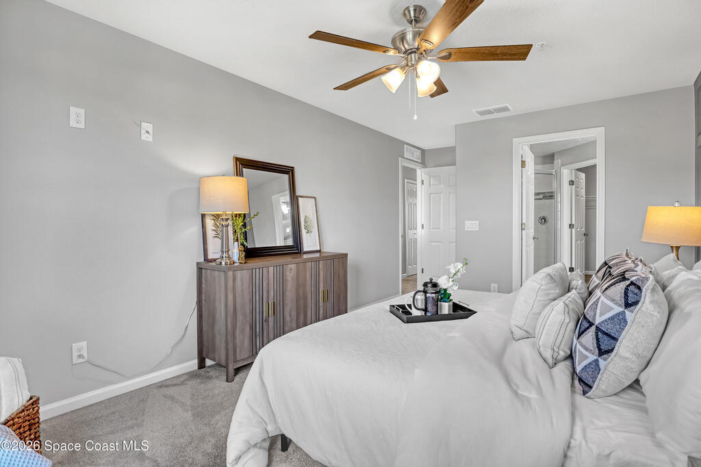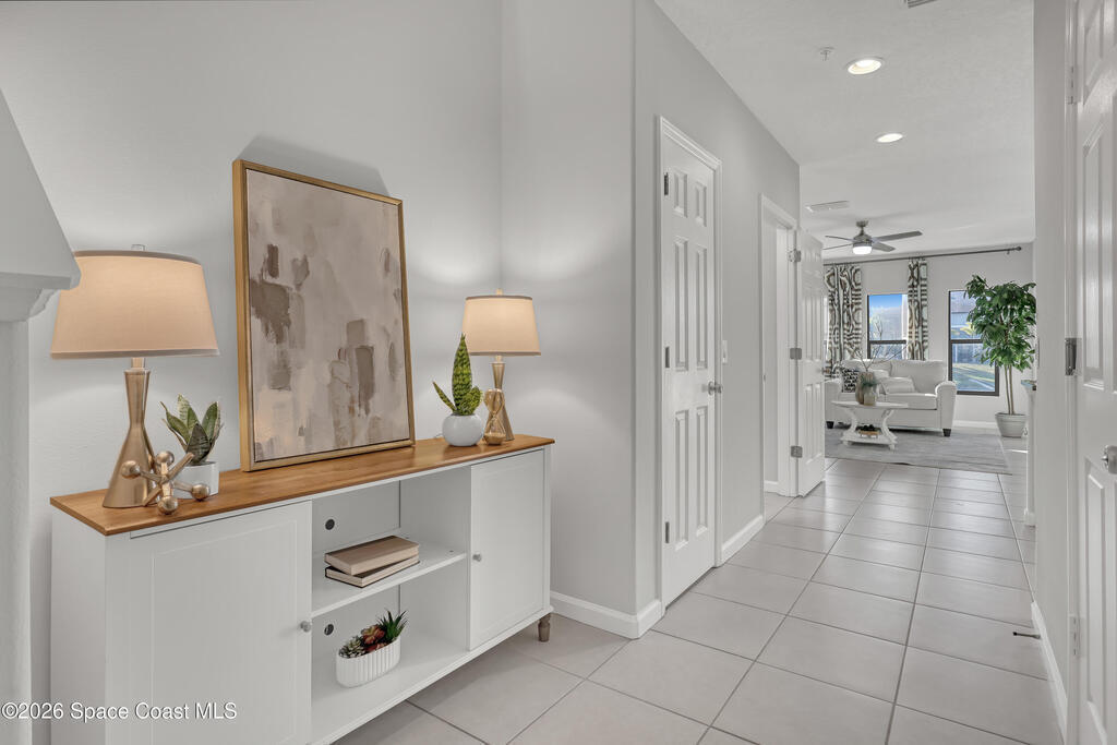 Welcome to your dream condo in Meadow Park! This stunning former model home boasts 3 bedrooms, 2.5 bathrooms, and a 1 car garage, making it the perfect place for you and your family. The community pool provides a relaxing oasis for those hot summer days. Inside, you'll find a freshly painted interior, designer featured walls, tile floors throughout the downstairs.The kitchen boasts granite counters, NEW stainless steel appliances, tile backsplash, under cabinet lights and walk in pantry The lakefront views from the back covered patio are simply breathtaking, offering a peaceful retreat right in your own backyard. The front courtyard patio is the ideal spot for enjoying your morning coffee or evening glass of wine. Located near the desirable Viera area, 15 minutes to beaches, and 45 minutes to Orlando, this condo offers all the perks of a prime location without the hefty price tag. HOA fees include outside maintenance, lawn care and cable and internet