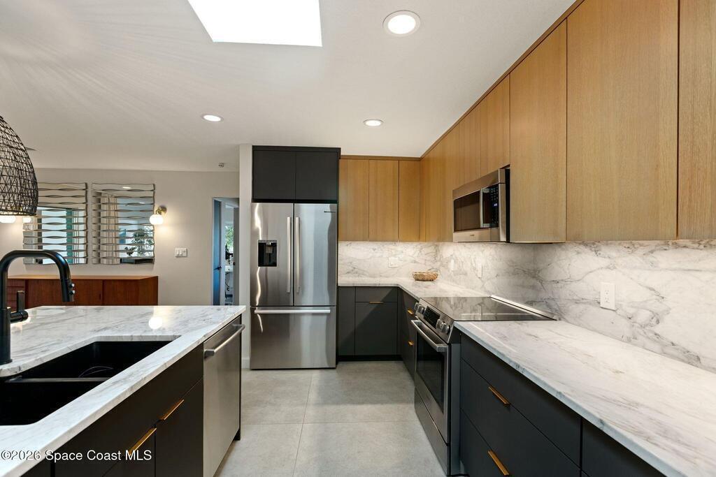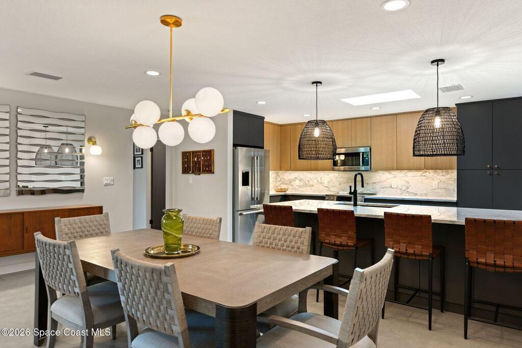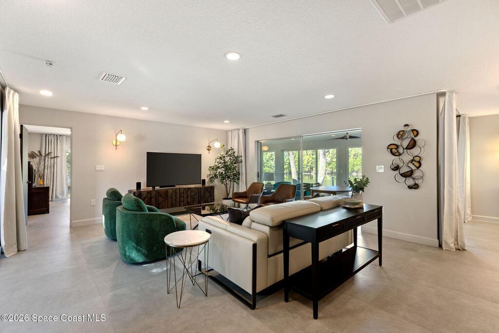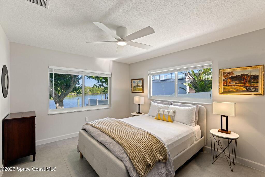 A polished interior paired with one of the most private waterfront lots in Cocoa Beach. This move-in ready home offers over 2,500 sq ft under air, 3,300 sq ft under roof, and clear pride of ownership throughout. Set on over a quarter acre with 140 ft of waterfront views to what feels like your own private island, complete with manatees, dolphins and golden sunsets. A full interior rebuild in 2021 took the home to the studs and returned it as a refined mid-century architectural showpiece. 45+ years remaining on superior vinyl seawall and dock. The backyard is a blank canvas ready for your vision. Located in one of Cocoa Beach's most sought-after neighborhoods with walkability to the beach, shops, and restaurants.See video link here: https://vimeo.com/1160182740