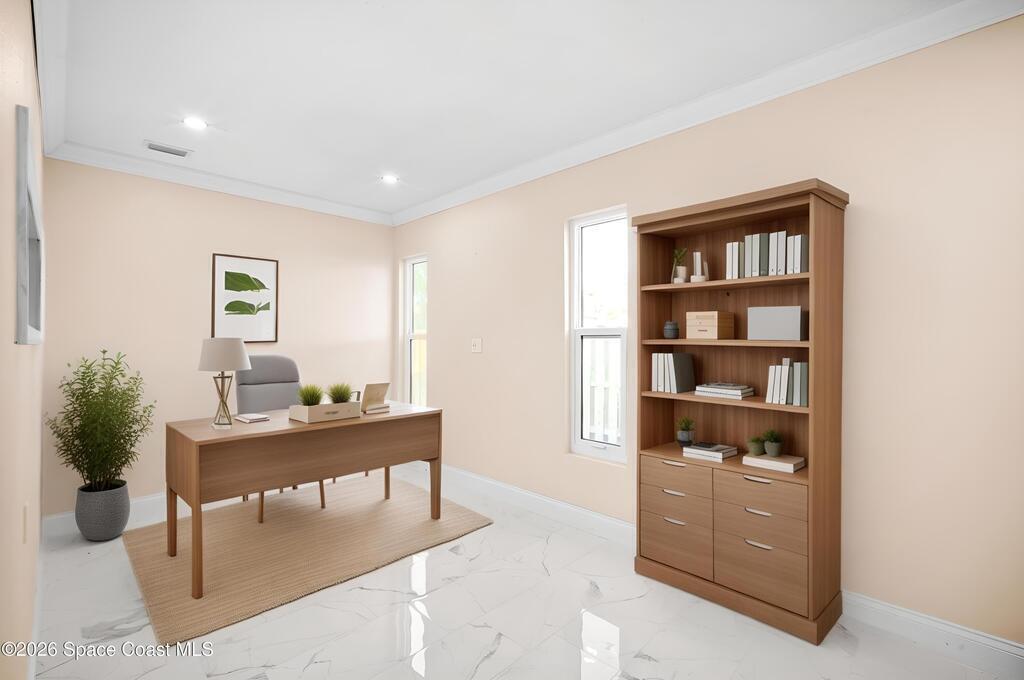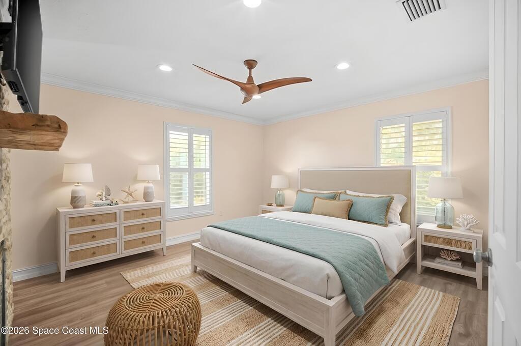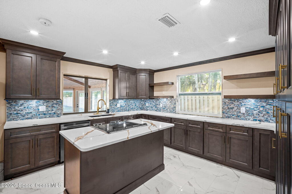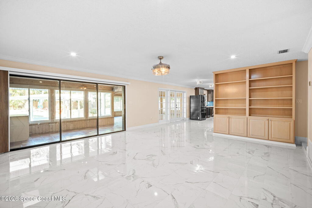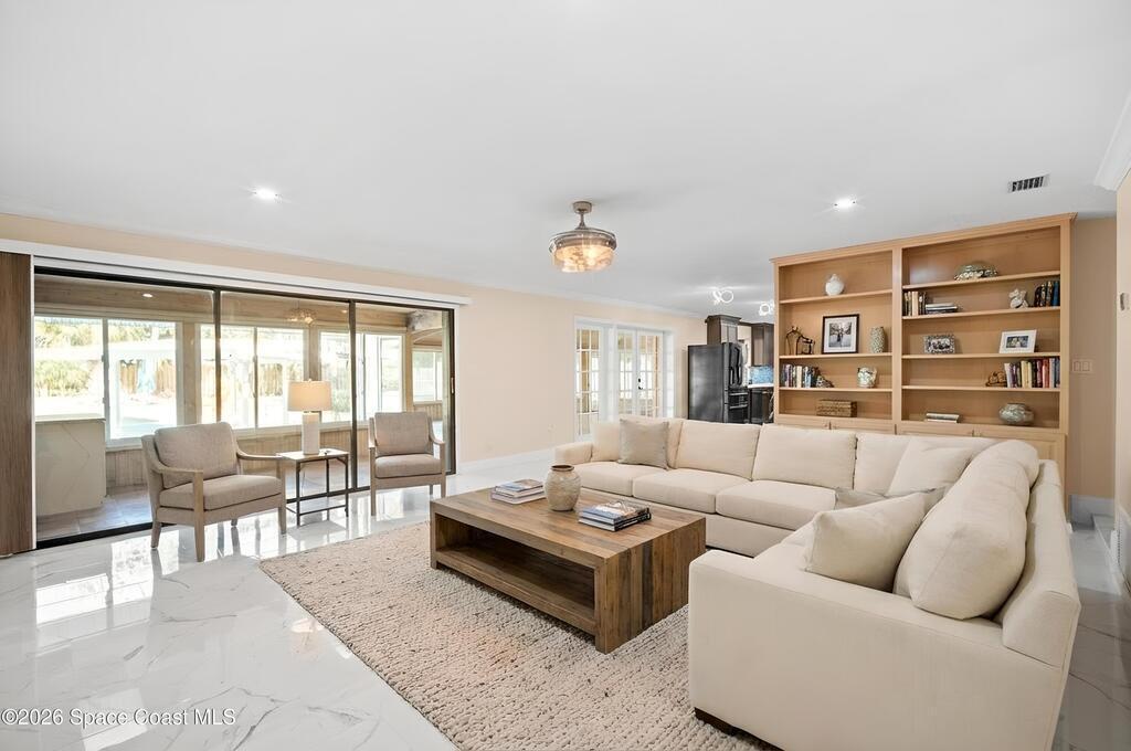 Just off Fifth Avenue in the heart of Indialantic, this large pool home estate, striking coastal residence claims a rare position between the river and the ocean, where convenience, privacy, and beachside lifestyle converge. Spanning over 4,400 square feet, the home presents itself as a modern sanctuary designed for those who expect both sophistication and ease, set just 300 yards from the river and less than half a mile from the Atlantic shoreline. Equal parts entertainer's haven and quiet retreat, it delivers a level of scale, flexibility, and design rarely found this close to the water.Inside, the home is defined by architectural intention and effortless flow. Natural light pours through multiple skylights, highlighting clean lines, curated finishes, and a thoughtfully composed layout that moves seamlessly from one living space to the next.