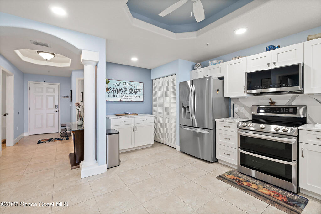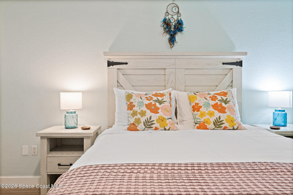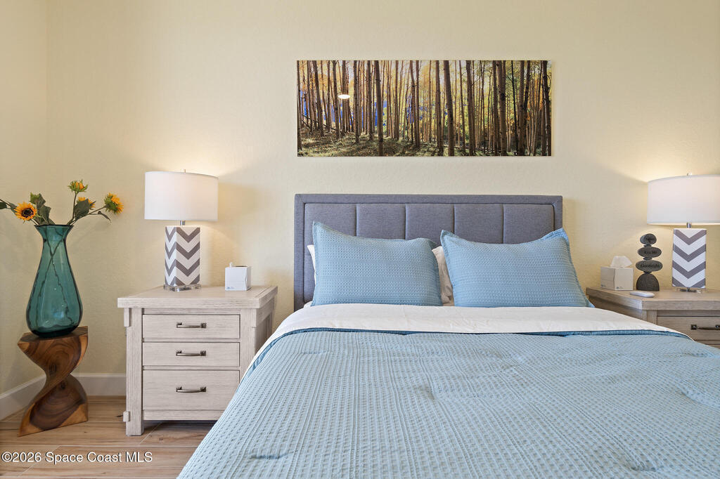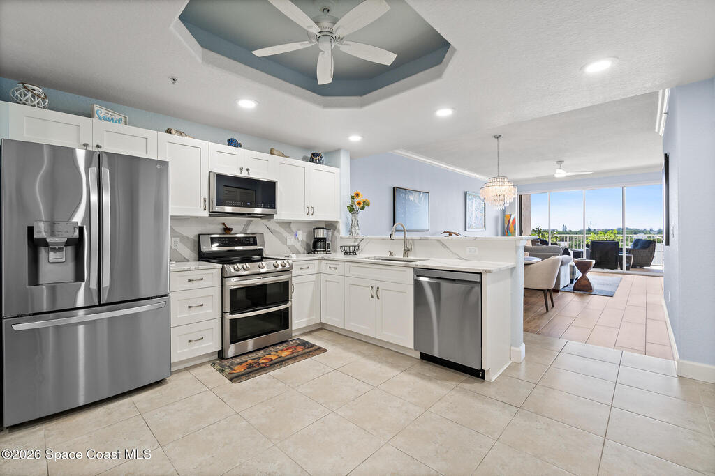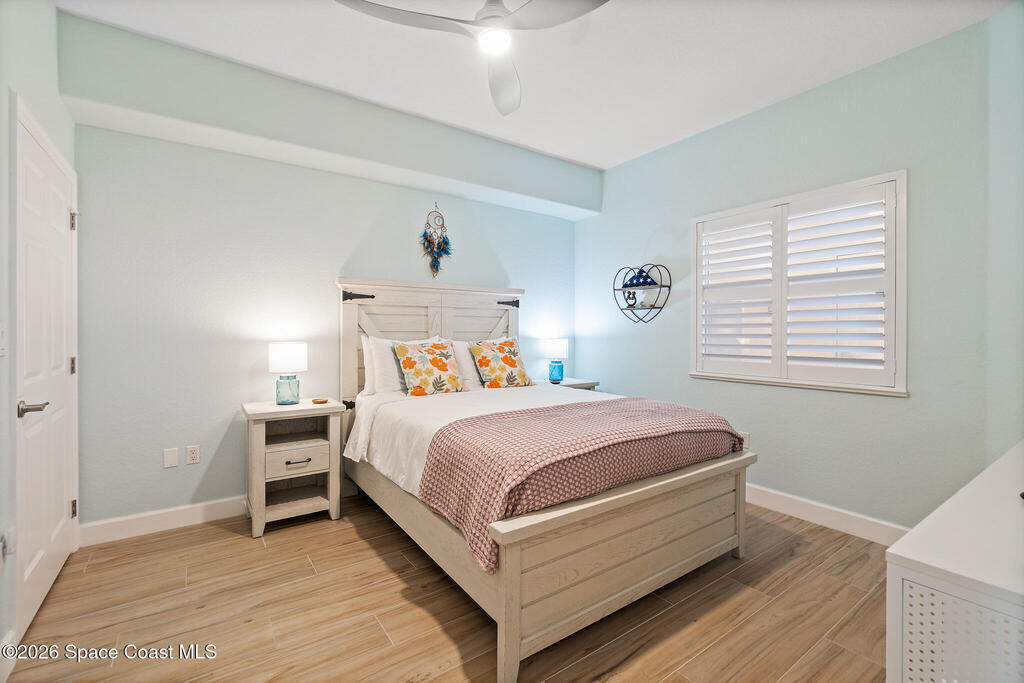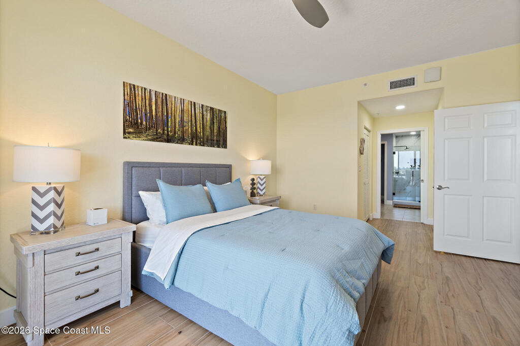 Coastal living meets resort-style convenience in this TOP-FLOOR condo at Mystic Vistas! This beautiful home features an open floor plan with extra-high ceilings, tile flooring throughout the main living areas, and elegant wood-look luxury vinyl plank in the bedrooms. From the living area, step through expansive sliders onto your private 5th-floor west-facing balcony to enjoy gorgeous sunsets views. The kitchen showcases granite countertops, modern appliances, a functional island, and a spacious breakfast bar perfect for casual dining. The primary suite serves as a serene retreat with dual walk-in closets, and spa-inspired ensuite bath with an indulgent soaking tub. A second bedroom offers its own ensuite bathroom, ensuring privacy and convenience for guests. The versatile flex space adapts perfectly as a home office or additional guest room. Thoughtful features include a convenient laundry room, ample storage, and storm shutters for peace of mind. Schedule your showing today!
