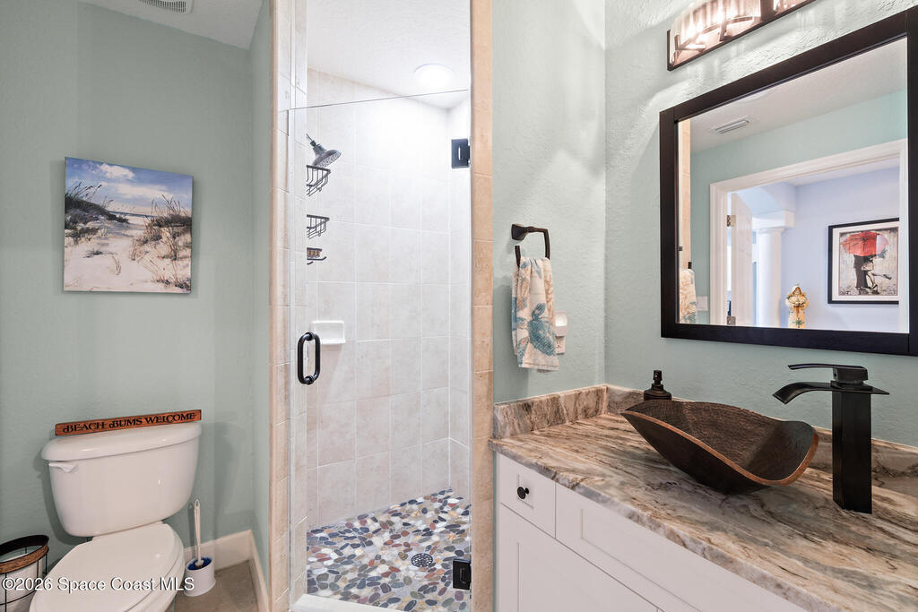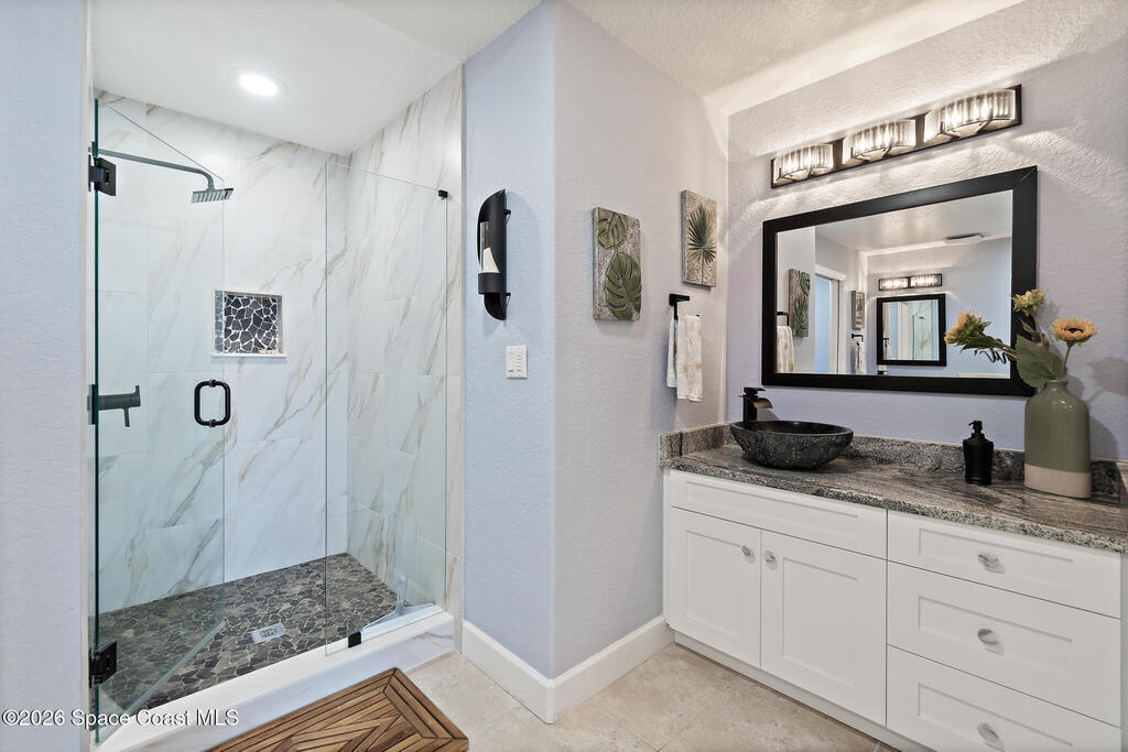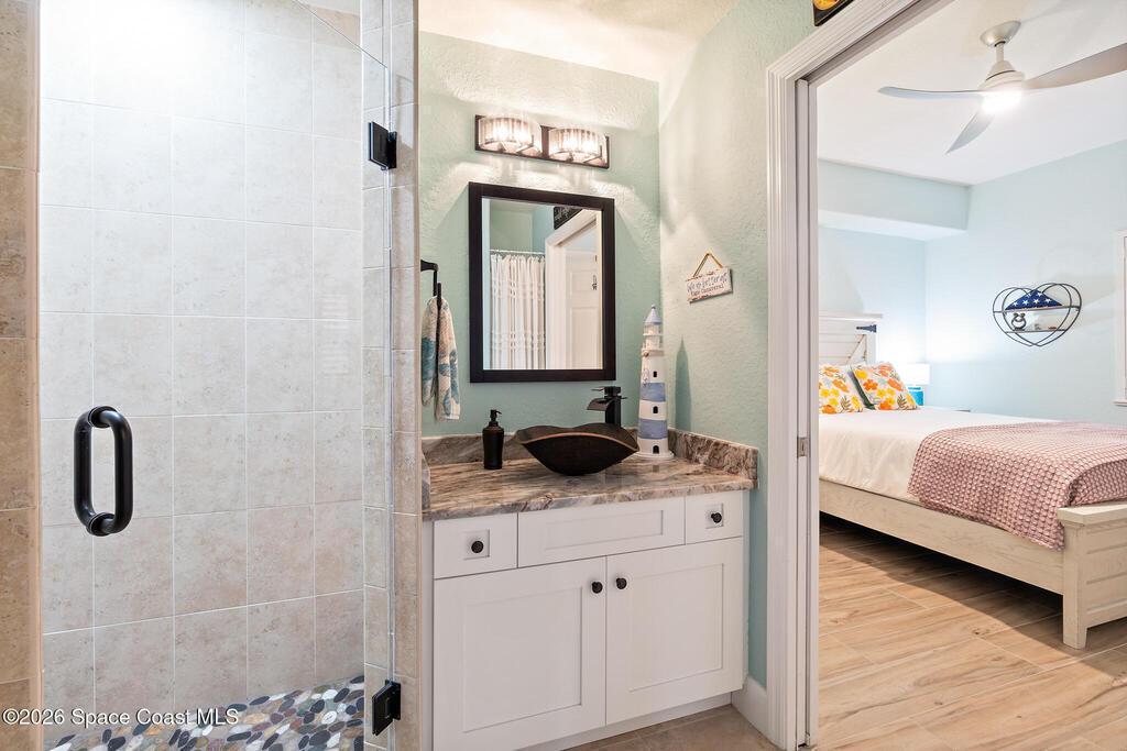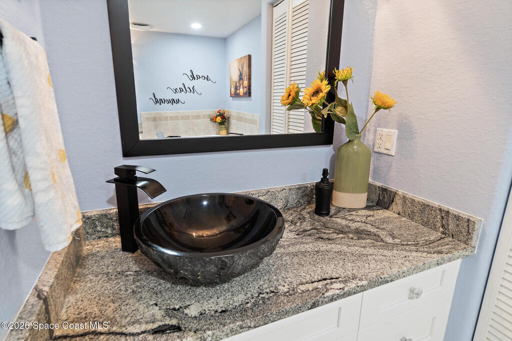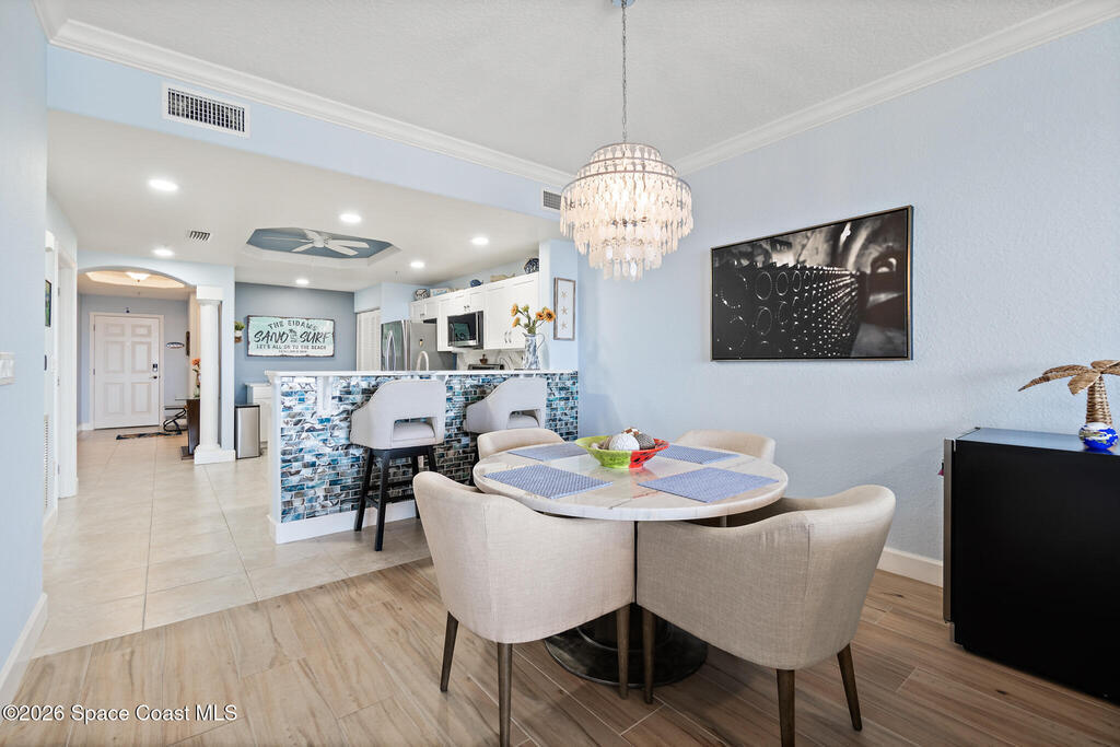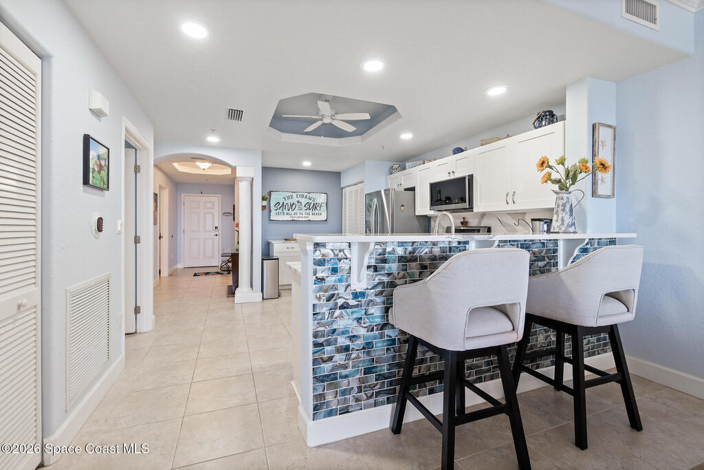Coastal living meets resort-style convenience in this TOP-FLOOR condo at Mystic Vistas! This beautiful home features an open floor plan with extra-high ceilings, tile flooring throughout the main living areas, and elegant wood-look luxury vinyl plank in the bedrooms. From the living area, step through expansive sliders onto your private 5th-floor west-facing balcony to enjoy gorgeous sunsets views. The kitchen showcases granite countertops, modern appliances, a functional island, and a spacious breakfast bar perfect for casual dining. The primary suite serves as a serene retreat with dual walk-in closets, and spa-inspired ensuite bath with an indulgent soaking tub. A second bedroom offers its own ensuite bathroom, ensuring privacy and convenience for guests. The versatile flex space adapts perfectly as a home office or additional guest room. Thoughtful features include a convenient laundry room, ample storage, and storm shutters for peace of mind. Schedule your showing today!