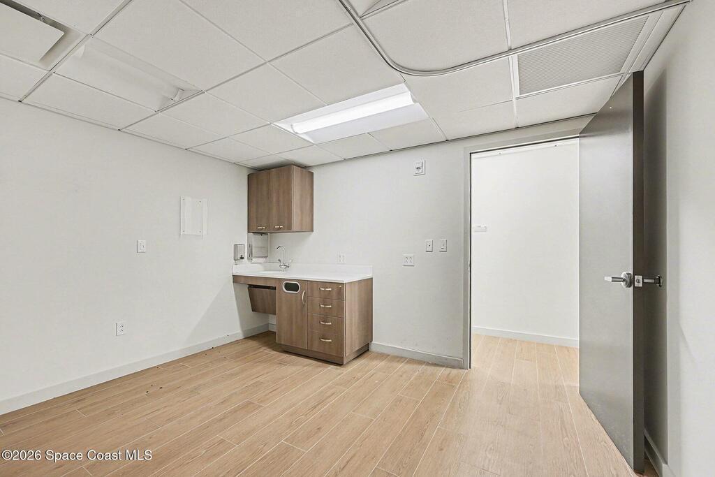 Turnkey medical clinic in Titusville, FL. This 4,804 SF single-story facility sits on 1.18 acres and has been completely gutted and remodeled. The building offers an efficient and flexible clinical layout with 12 total clinical rooms, including 6 physical exam rooms (each with sinks, cabinets, and computer mounts), specialty/procedure rooms, a treatment/observation room, a multipurpose group consult/education room, and a lead-lined X-ray room plus a dedicated dental X-ray closet. The facility includes four restrooms consisting of front men's and women's restrooms along with two interior single-user restrooms, including ADA. Additional features include a modern front reception and lobby with controlled access, lab with sink and counters, bio-hazard room, multiple administrative offices, staff breakroom, storage areas, zoned HVAC, and complete fire and security alarm systems. The property offers 28 parking spaces with covered rear parking and multiple ADA spaces. Medical/ Office Zoning.