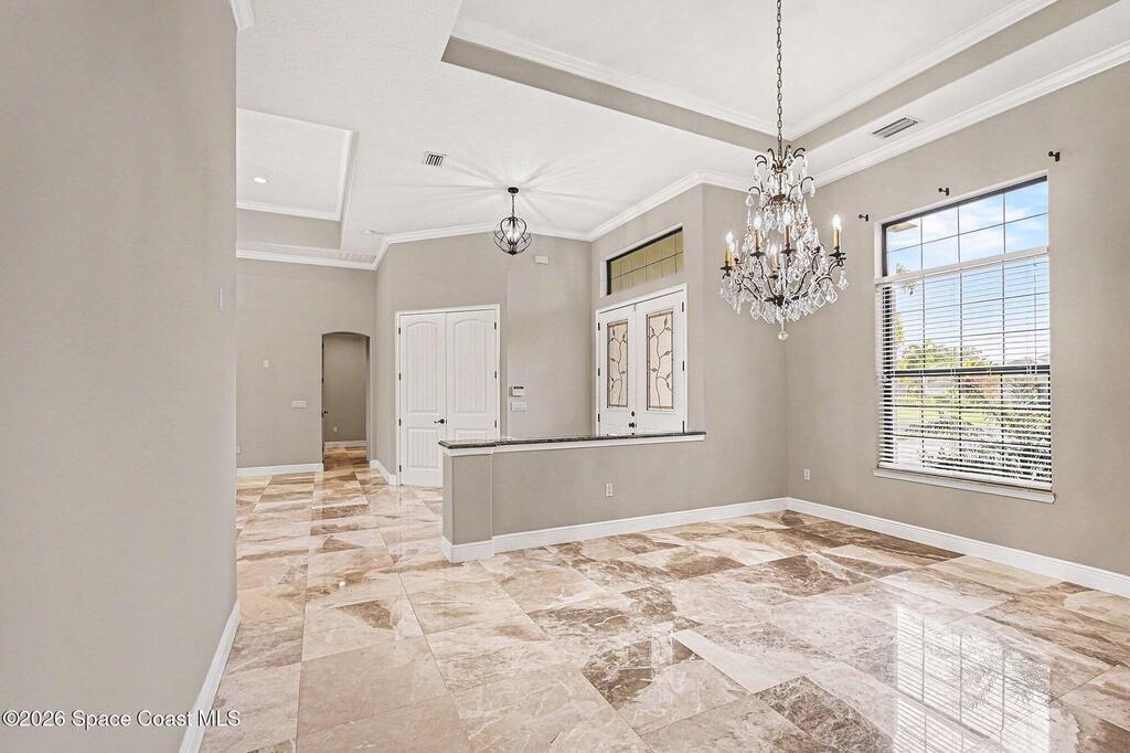 Welcome to this stunning custom-built home, where luxury and comfort meet at every corner. Nestled on .45 acres, this expansive residence spans 3,585 sqft and features five bedrooms, 3.5 bathrooms the paved driveway leads to a three-car garage, providing ample space for everyone.As you step inside, you'll be greeted by exquisite marble flooring and an open floor plan that seamlessly blends the living spaces. The gourmet kitchen is a chef's dream, boasting granite countertops, expansive 42-inch cabinets, a large kitchen island, and a walk-in pantry--perfect for entertaining.The master suite offers a peaceful retreat, complete with a soaking tub, his-and-her sinks, a spacious closet, and elegant tray ceilings.Additionally, the property includes 2024 Water Heater, 3 year HVAC, Foam insulated attic, and PGT hurricane impact windows join a whole home Generac generator plus city gas, ensuring both luxury and peace of mind. resort-style amenities,creating a perfect retreat-like atmosphere