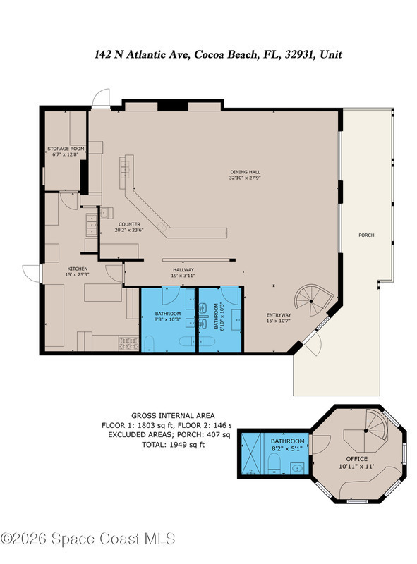 Step into a space where every detail tells a story--and the next chapter BELONGS TO YOU! RARE chance to acquire a well-located restaurant in the heart of Cocoa Beach. Just steps from the areas most popular beaches, dining, and entertainment. This high-visibility location benefits from 20 public pay to park spaces next door, a major advantage in this beachside corridor. The property offers inside and outside dining, creating a casual beach dining, upscale coastal concept, or a high-volume bar and restaurant operation. The walkable location draws consistent foot traffic from tourists and locals alike. Endless potential! 4COP liquor license is separately available. Totally remodeled! Electrical and plumbing replaced 2021.