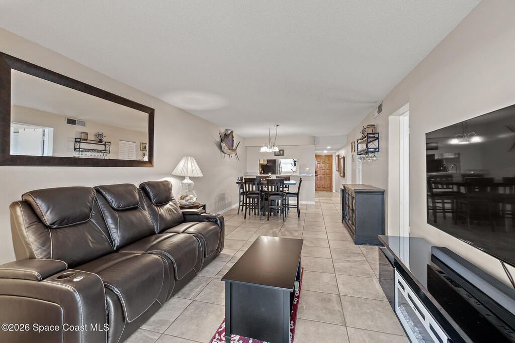 DIRECT OCEANFRONT living awaits in this fully furnished 2-bed, 2-bath condo with breathtaking views! The open-concept living and dining areas feature tile flooring and abundant natural light. Hurricane impact sliders lead from the living room and primary bedroom to your covered east-facing balcony, where you can relax on the 4th floor while enjoying stunning ocean vistas. Storm shutters provide extra peace of mind. The updated kitchen boasts sleek granite counters, new appliances, and an expansive breakfast bar. This oceanfront community offers tennis, pickleball, private beach access, a sparkling community pool, car wash area, renovated clubhouse, and sauna. Cable and internet are included! Centrally located just minutes from Ron Jon Surf Shop, the iconic Cocoa Beach Pier, dining, and entertainment, this coastal gem perfectly combines location, luxury, and lifestyle. Don't miss this rare opportunity to own your slice of paradise!