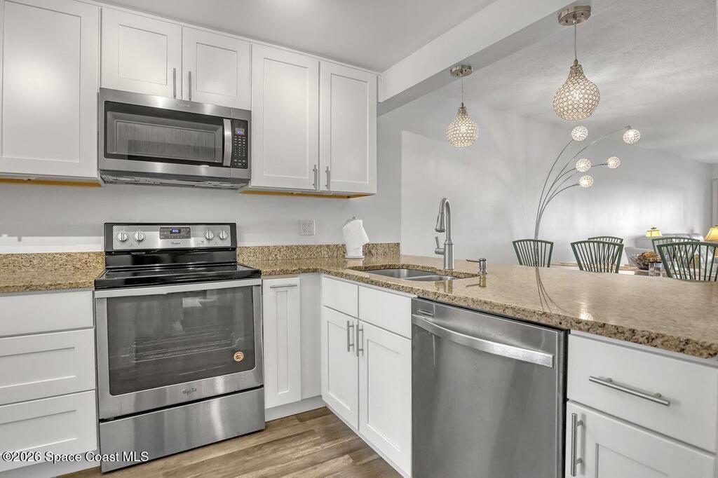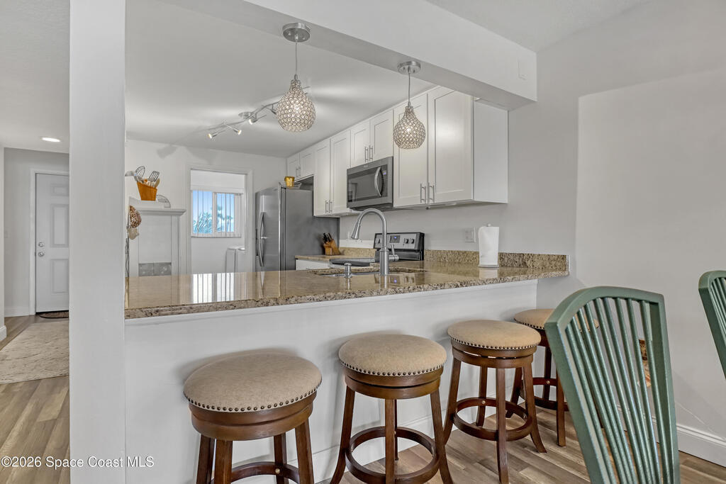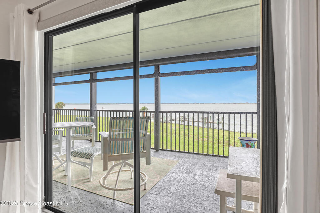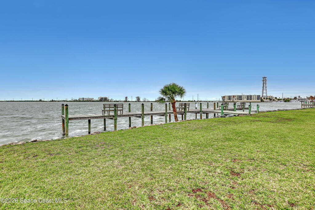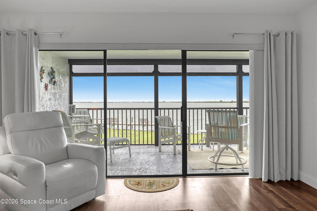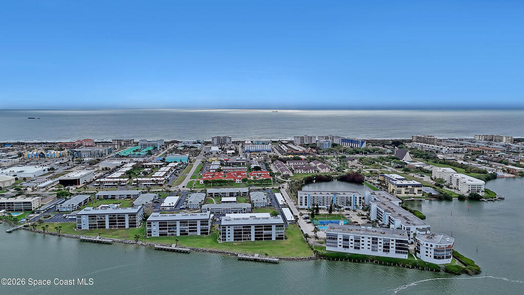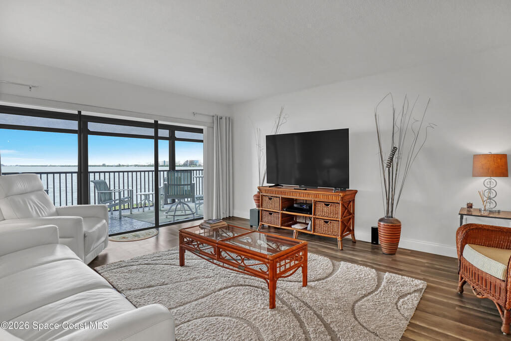 Come on in and sit down to start enjoying the relaxing beach lifestyle in this beautifully furnished 2-bedroom, 2-bath riverfront condo located in the heart of Cocoa Beach. This well-maintained, freshly painted unit showcases true pride of ownership and offers stunning open river views perfect for watching sunsets, moonsets, rocket launches, and the daily activity of dolphins and manatees.The comfortable, quality furnishings create a move-in-ready opportunity, and the large, screened riverfront balcony is the ideal place to relax and take in the view. The balcony includes electric storm screens and an additional storage room. Inside, find a convenient wet bar for entertaining.features include a private garage and access to a friendly community offering 2-pools (1 heated), sauna, clubhouse, 2 large fishing piers, and a walkway adjacent the boat ramp.Just a few blocks to the ocean, shops, dining, attractions and easy commute to major airports. Easy living at its best-come check it out